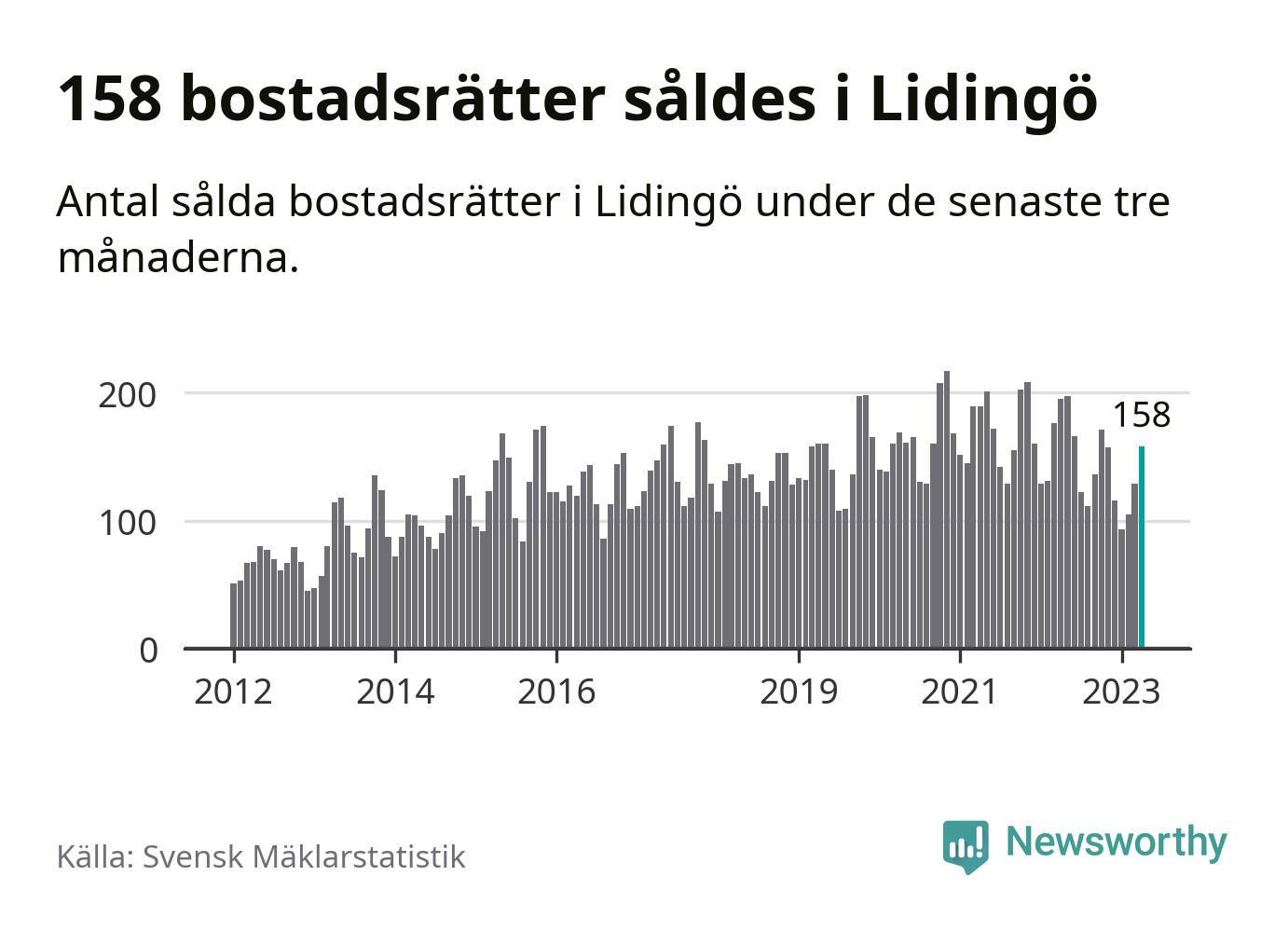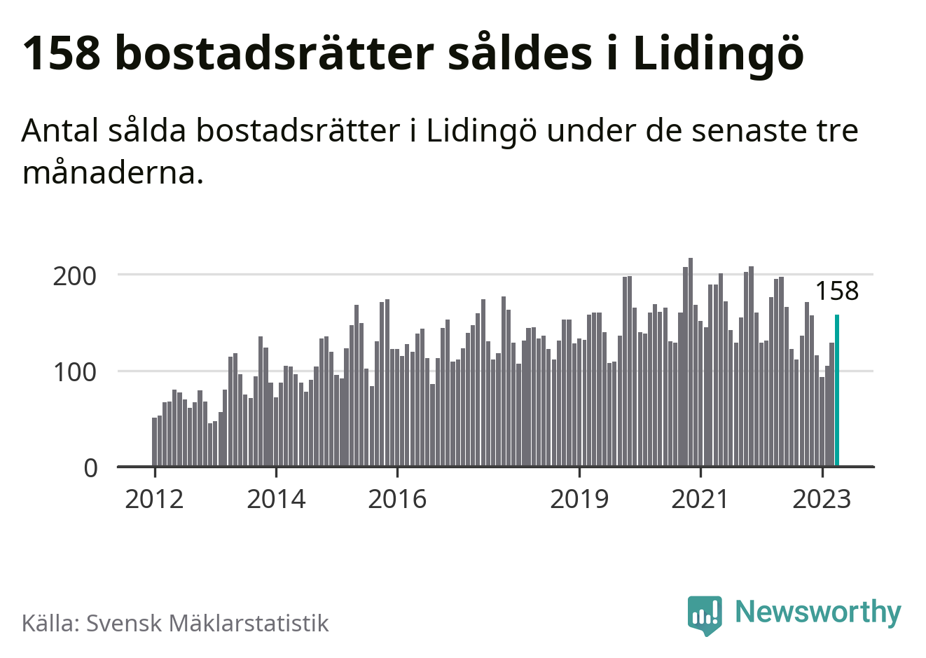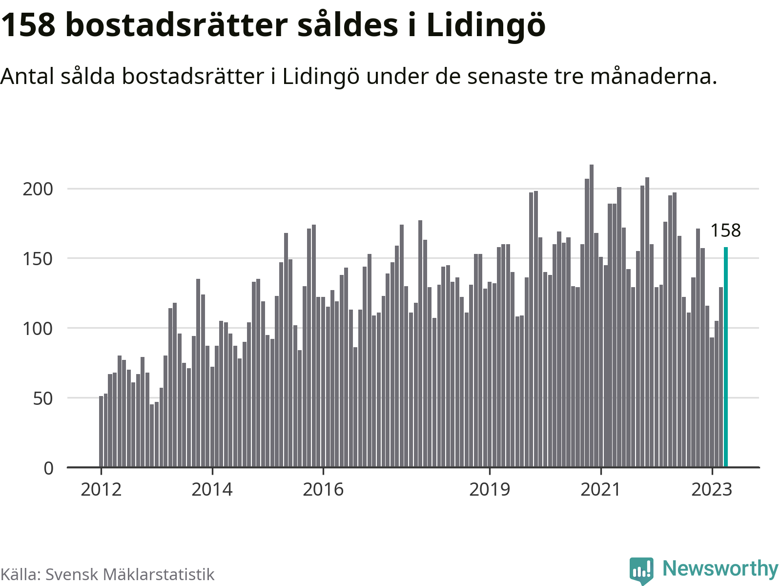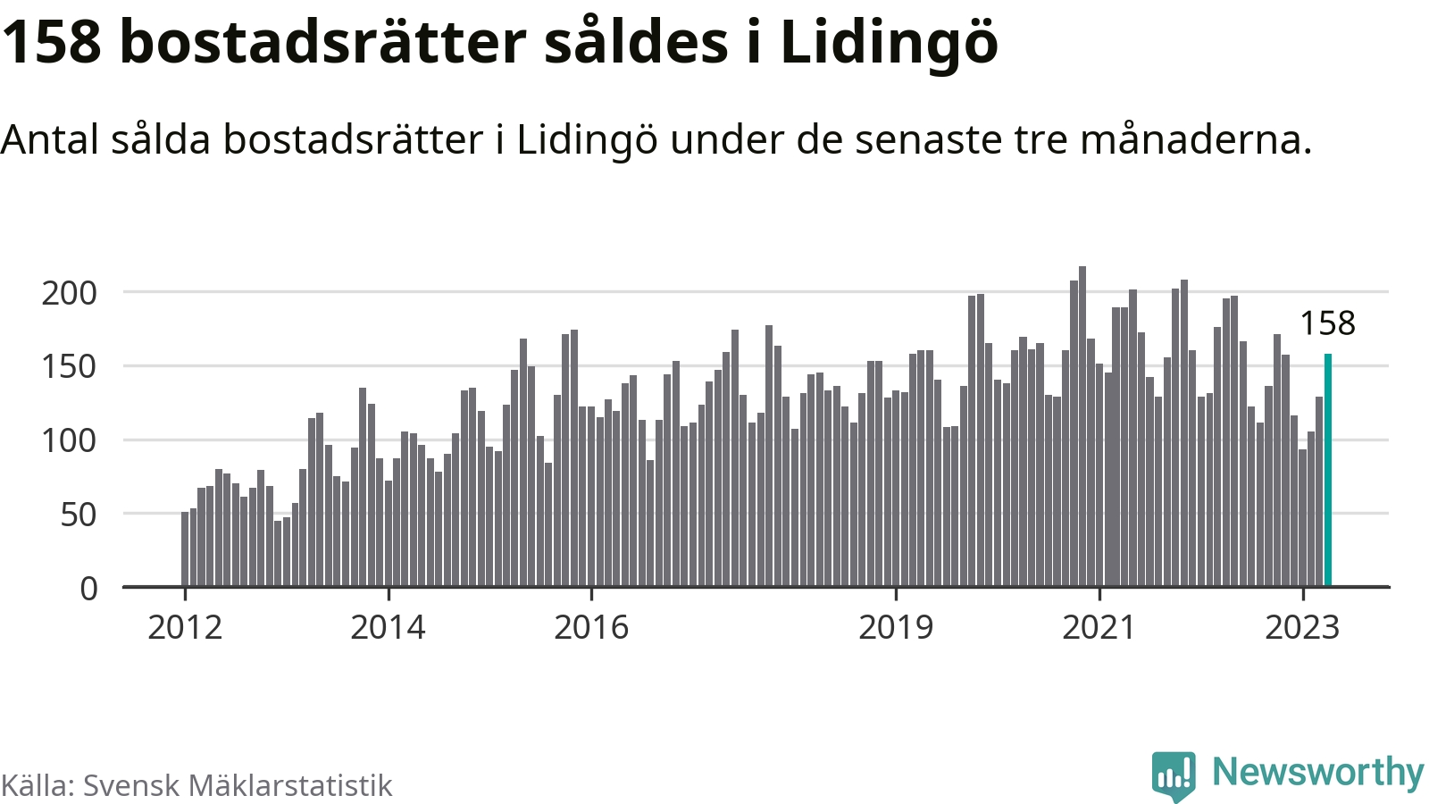 Graf: Antal sålda bostadsrätter i Lidingö kommun