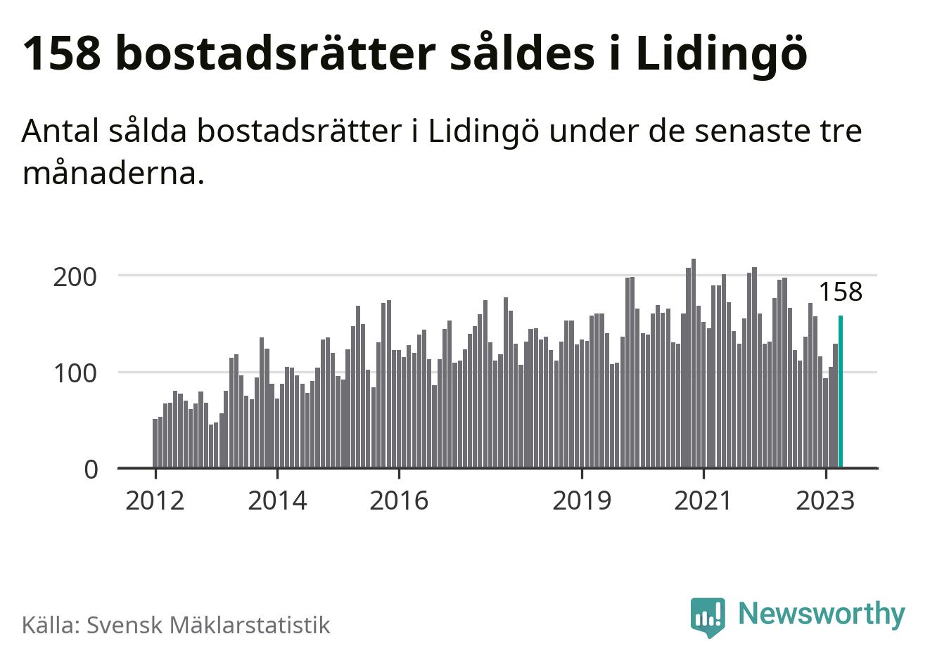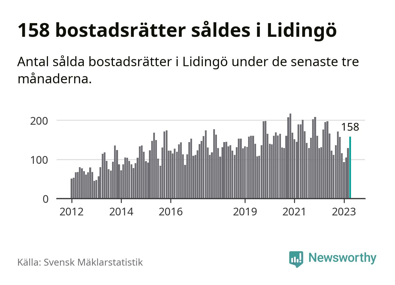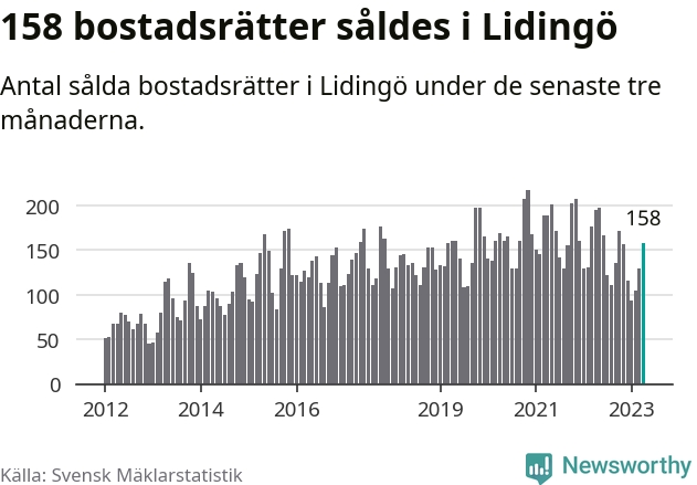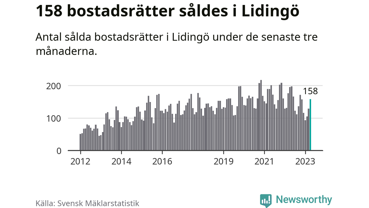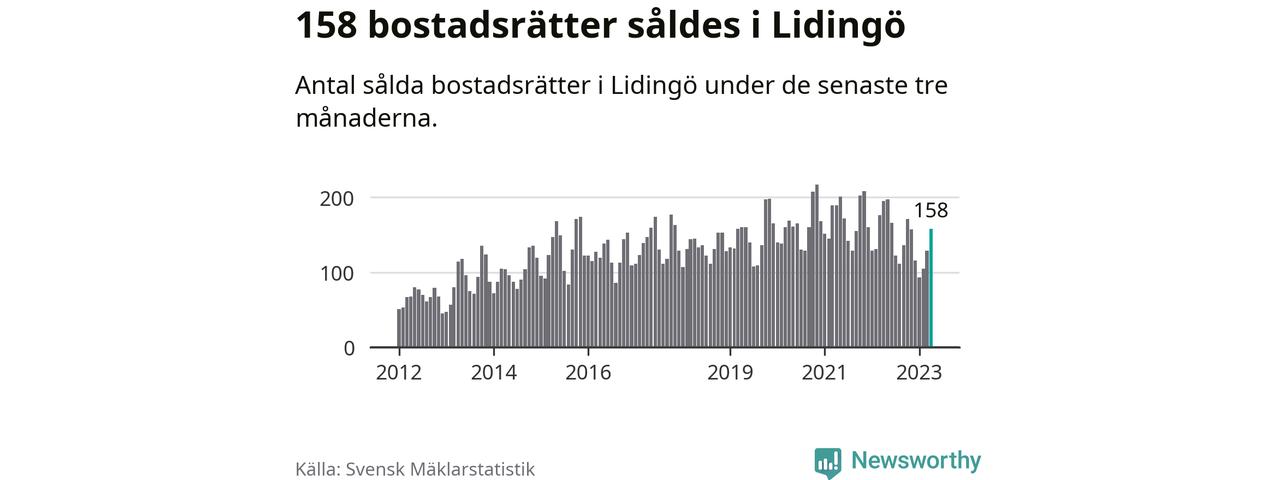 Sammanlagt såldes 158 bostadsrätter i Lidingö kommun mellan februari och april till ett genomsnittligt pris på 4,3 miljoner kronor. I fjol gjordes 195 affärer vid den här tiden på året.
