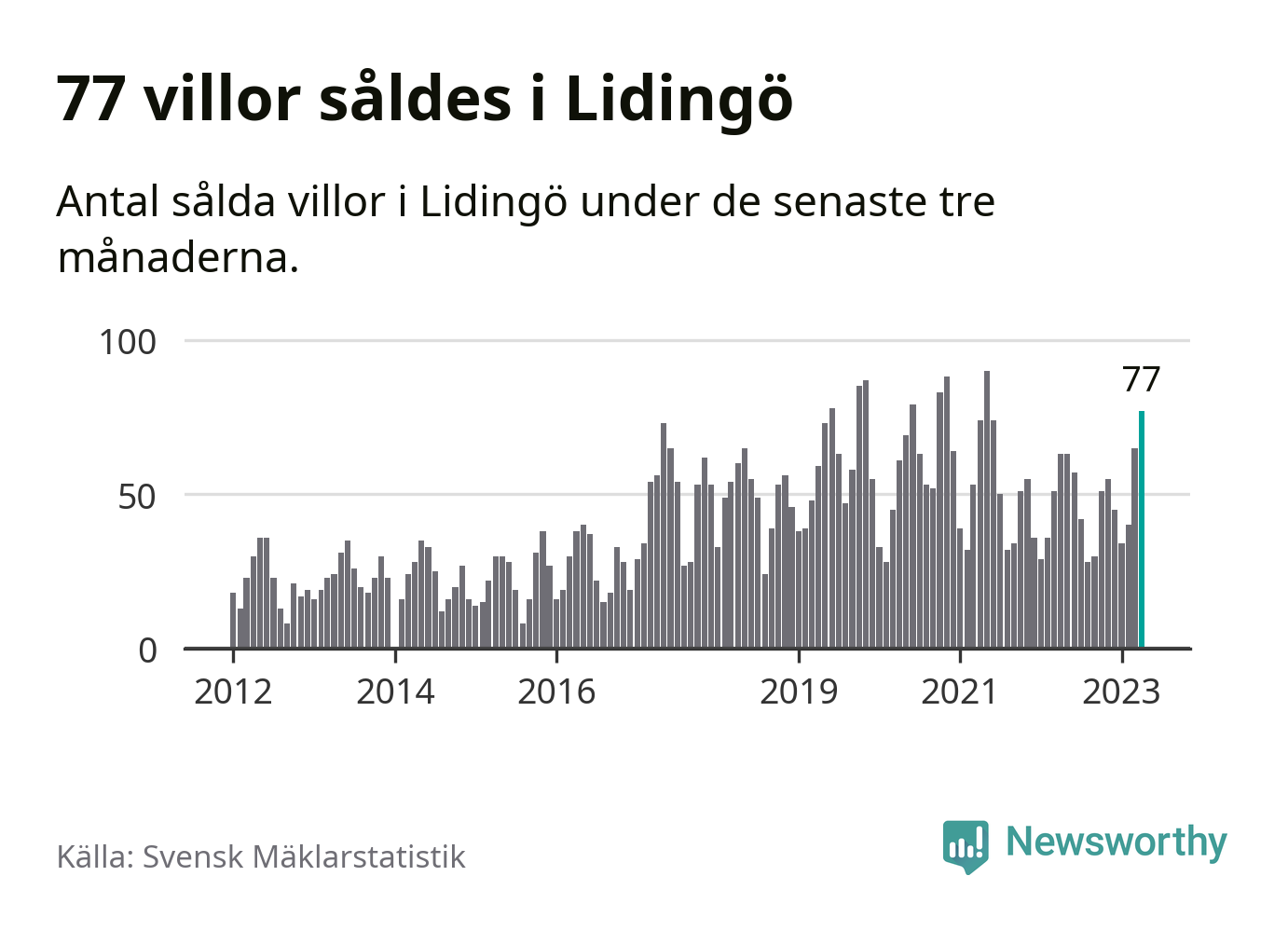 Graf: Antal sålda villor i Lidingö kommun