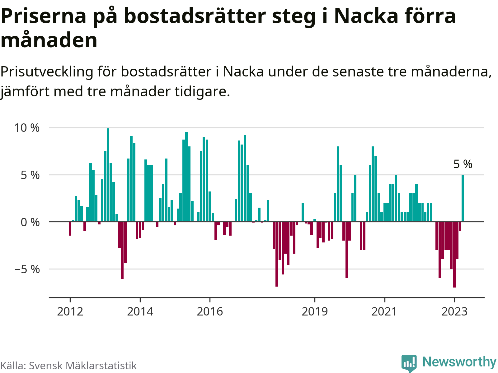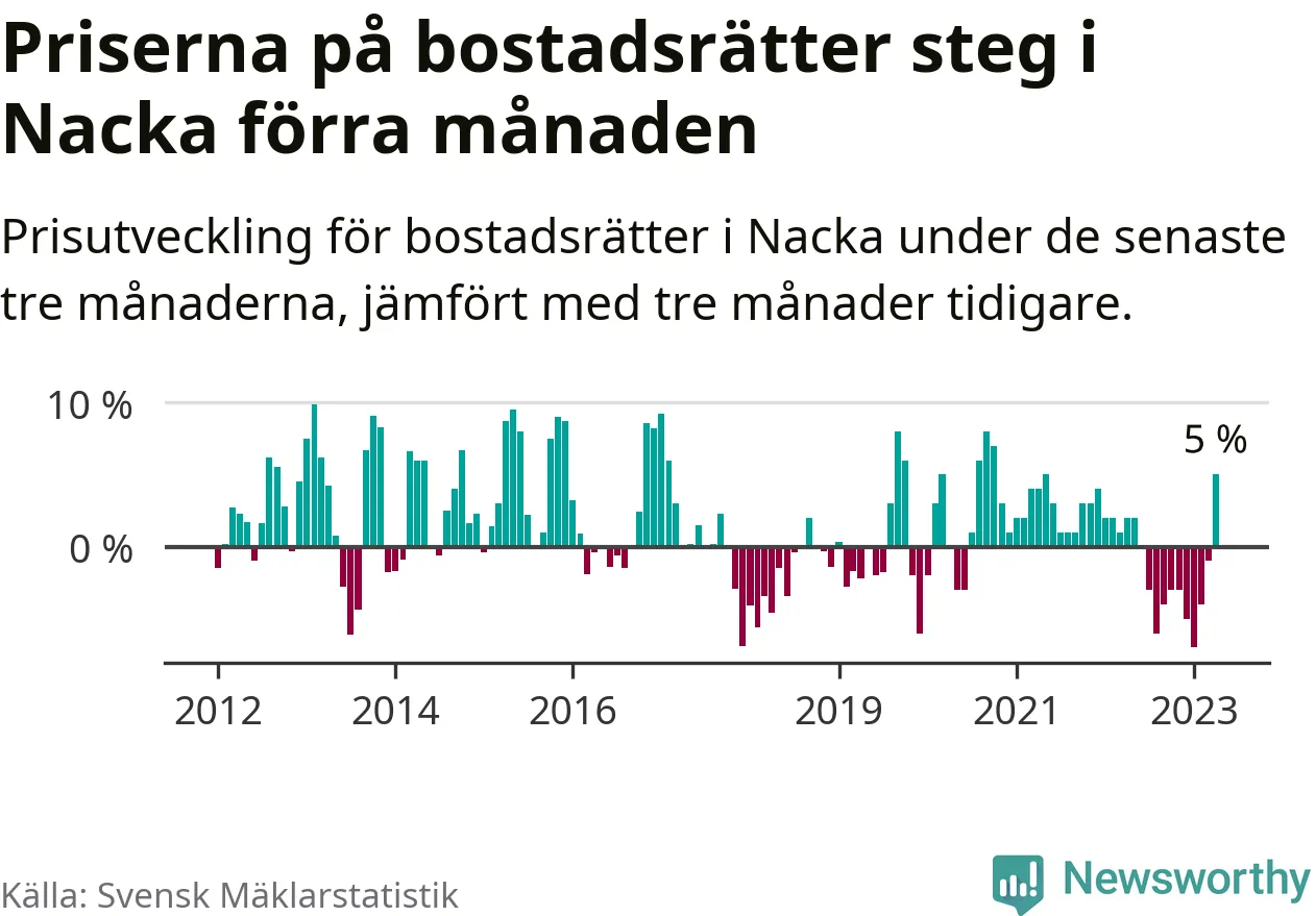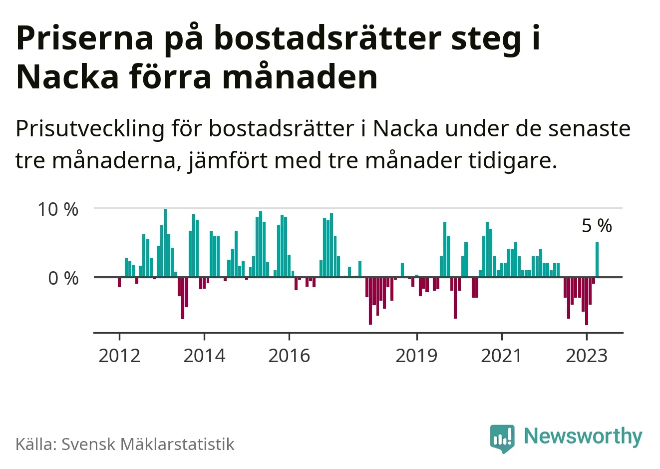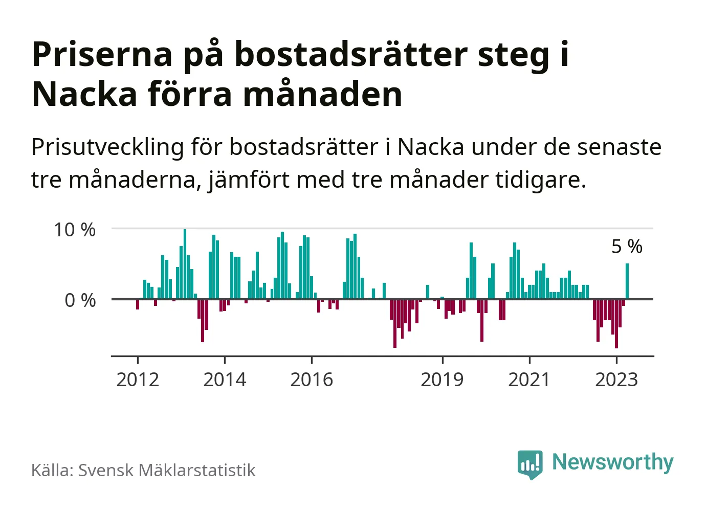 Efter nio månaders nedgång – nu stiger priserna på bostadsrätter i Nacka