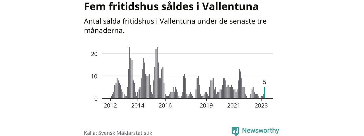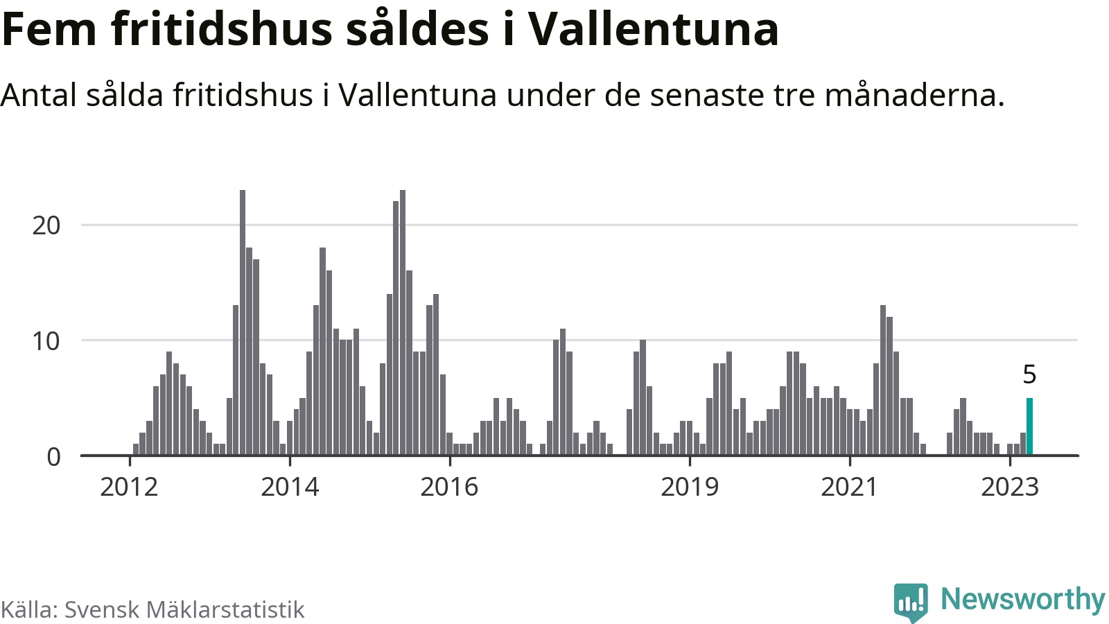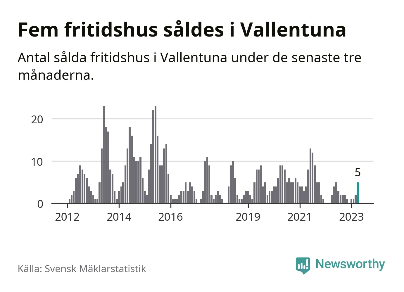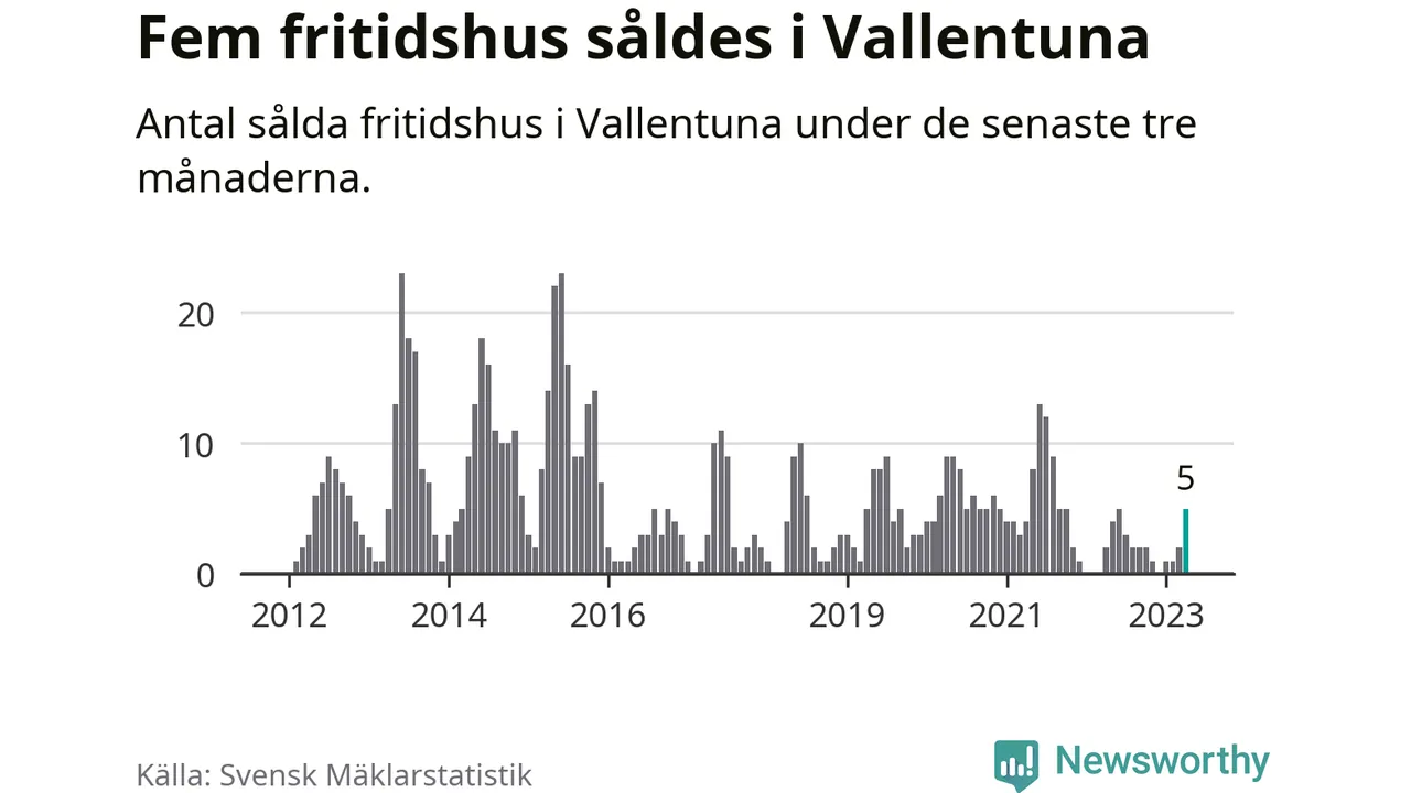 Mellan februari och april gjordes sammanlagt fem affärer med fritidshus i Vallentuna kommun. Det kan jämföras med två vid motsvarande tid i fjol.