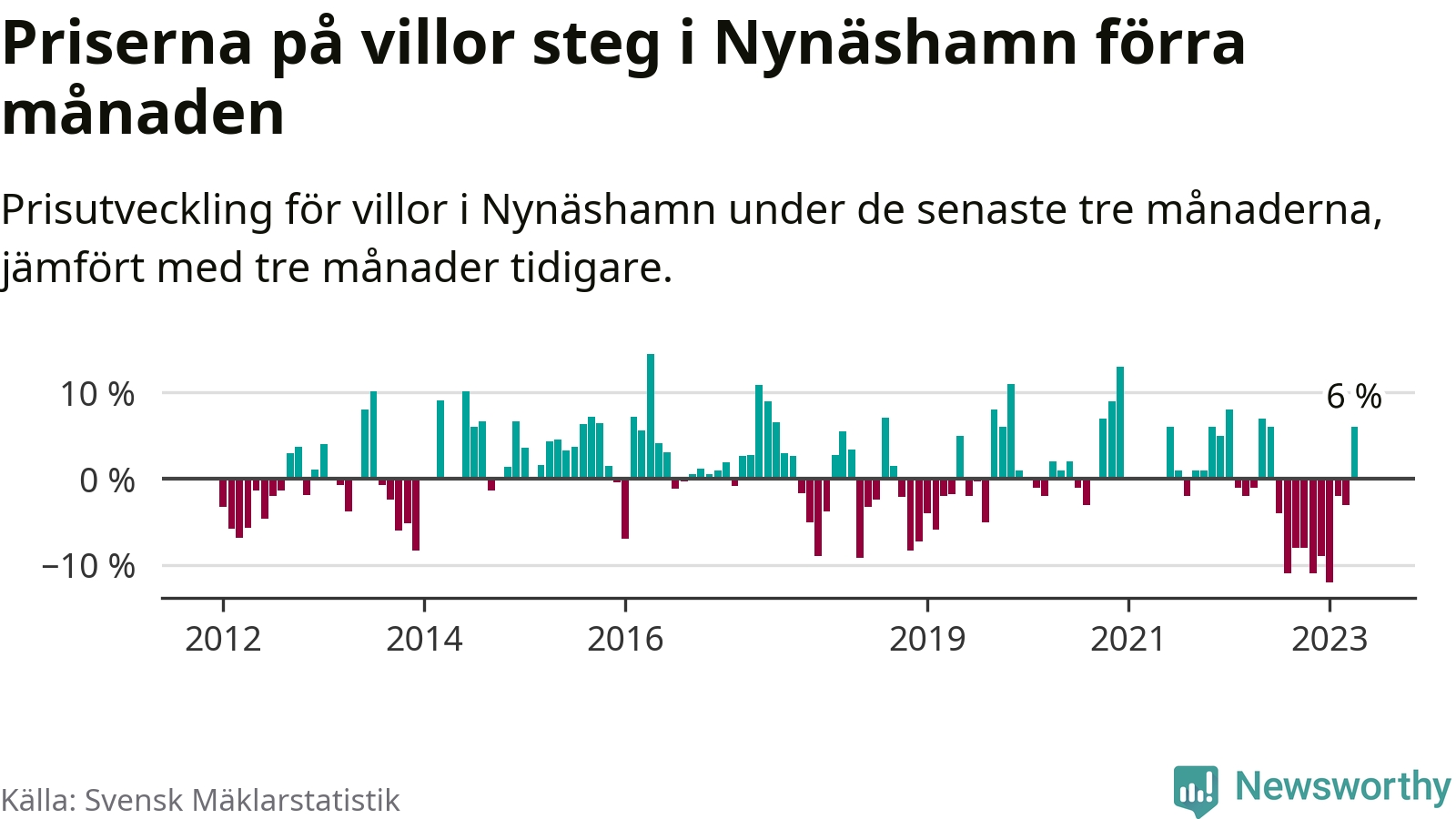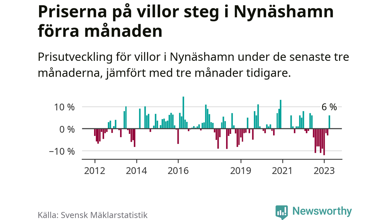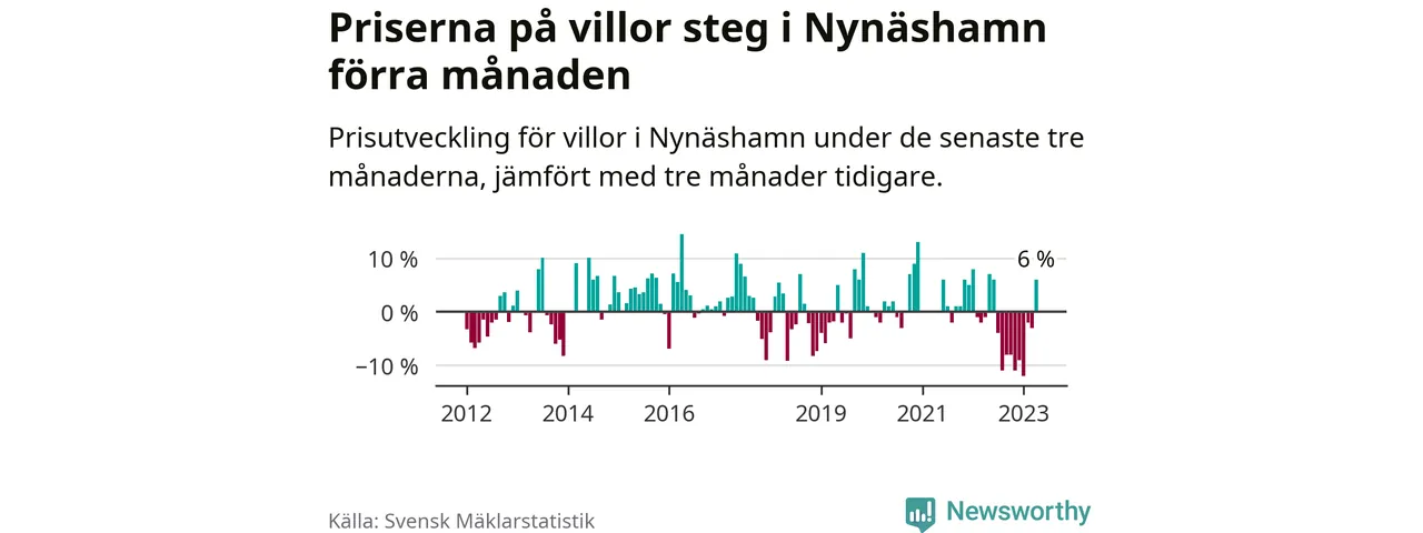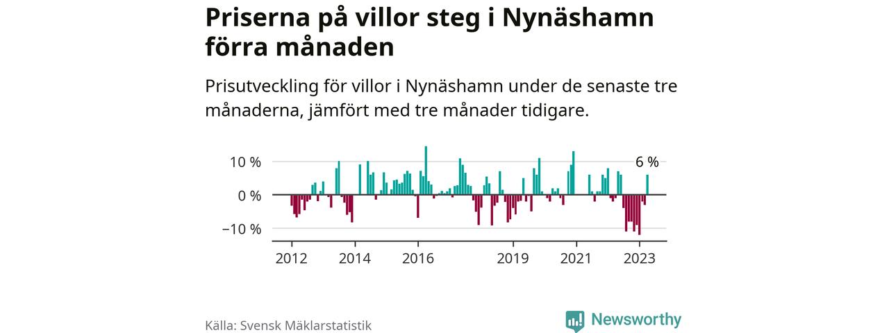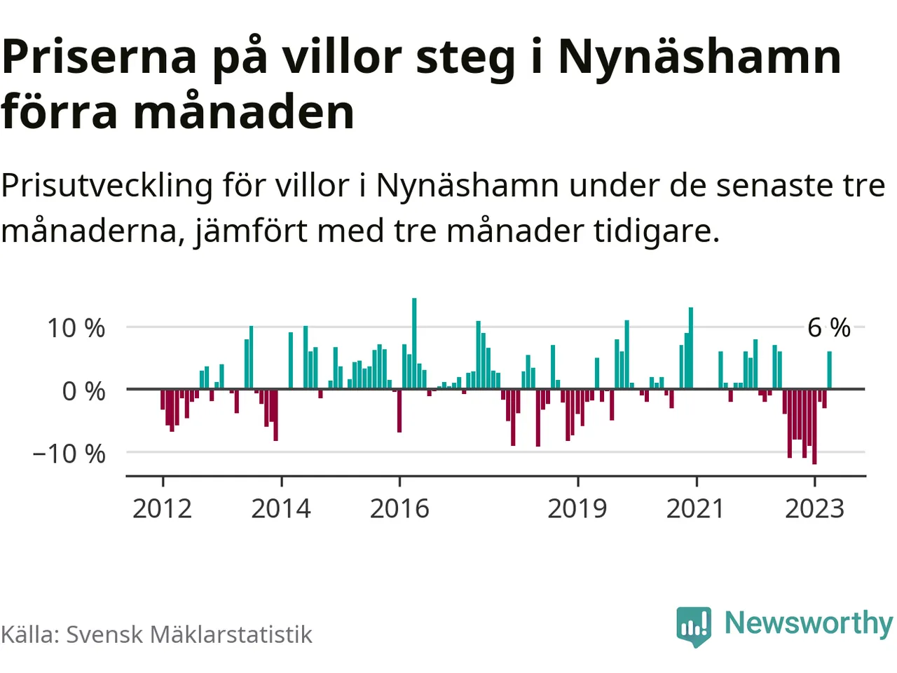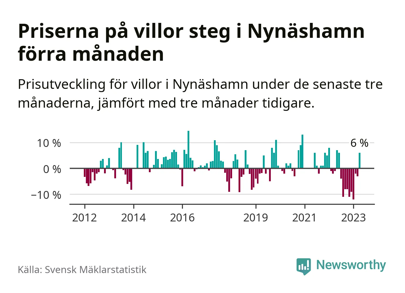 Sedan juni 2022 har villapriserna sjunkit i Nynäshamns kommun, men försäljningarna under de senaste tre månaderna visar på en uppgång med 6 procent.