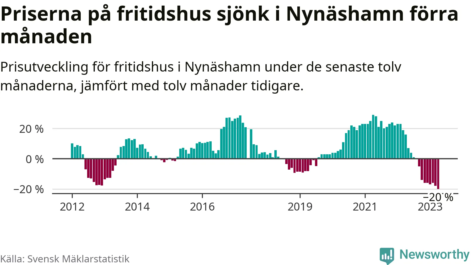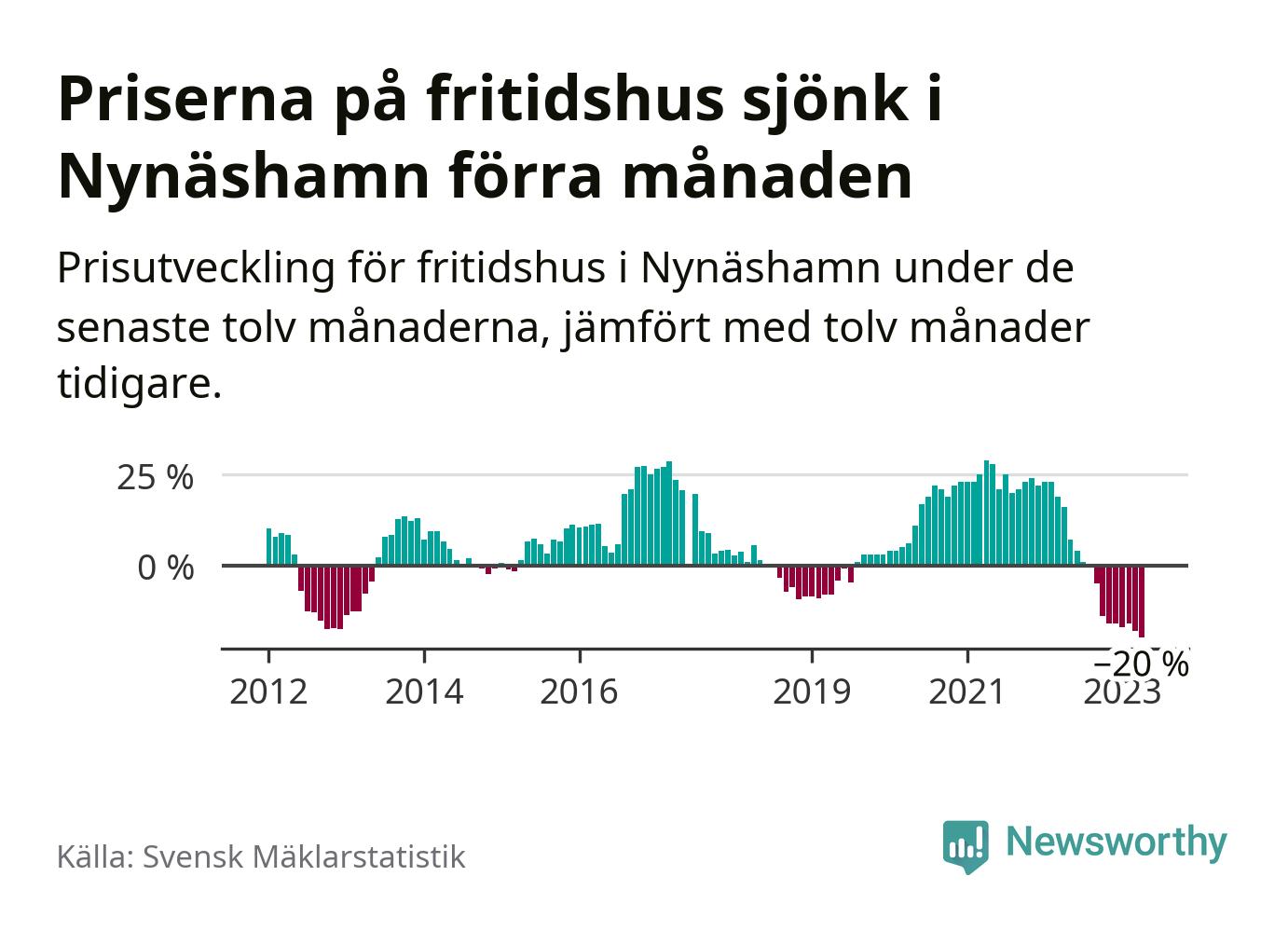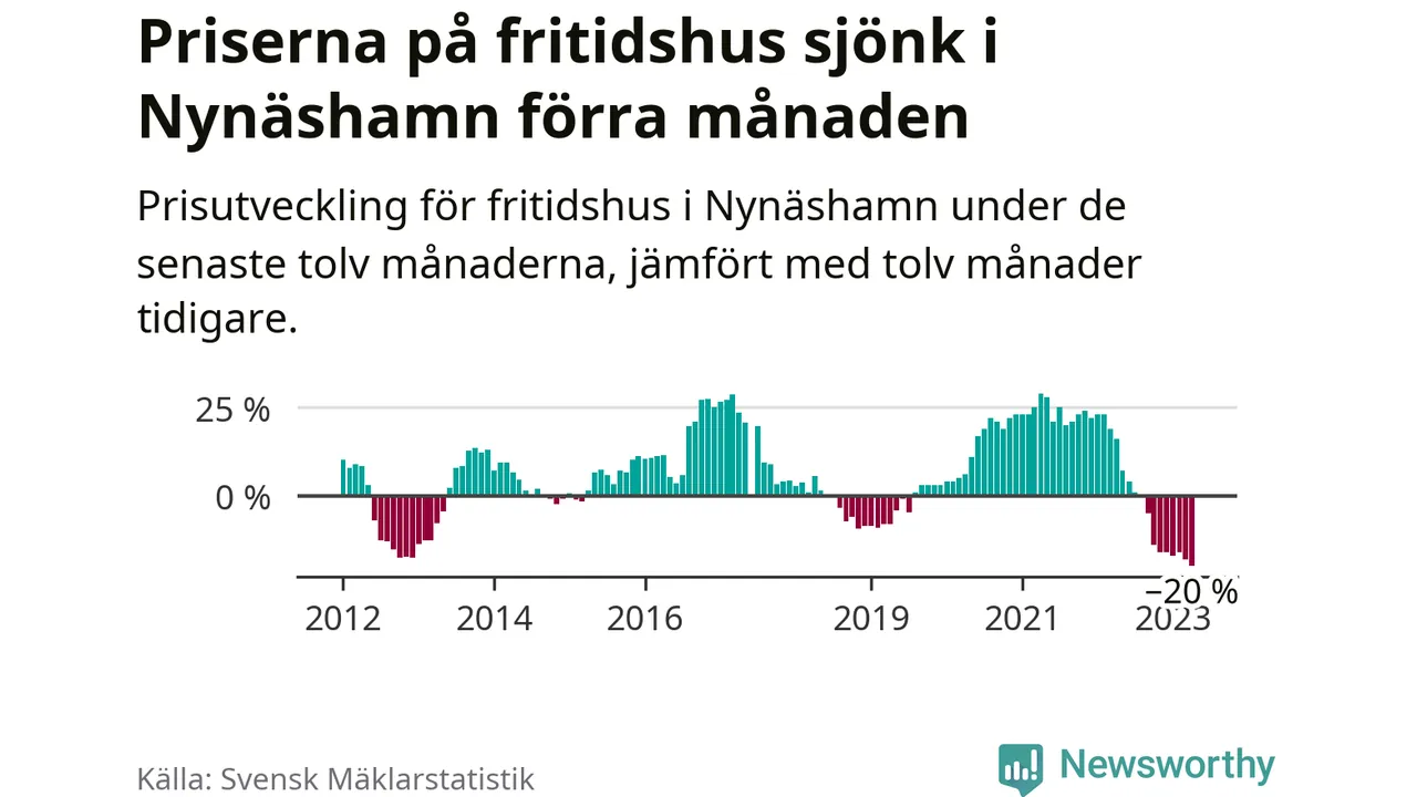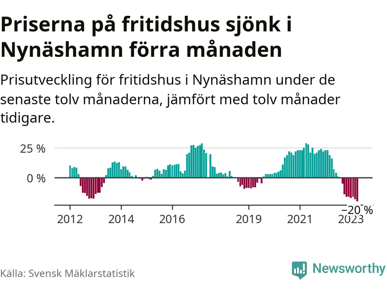 Priserna på fritidshus har gått ner i Nynäshamns kommun. Medelpriset på försäljningarna under de senaste tolv månaderna visar på en nedgång med 20 procent.