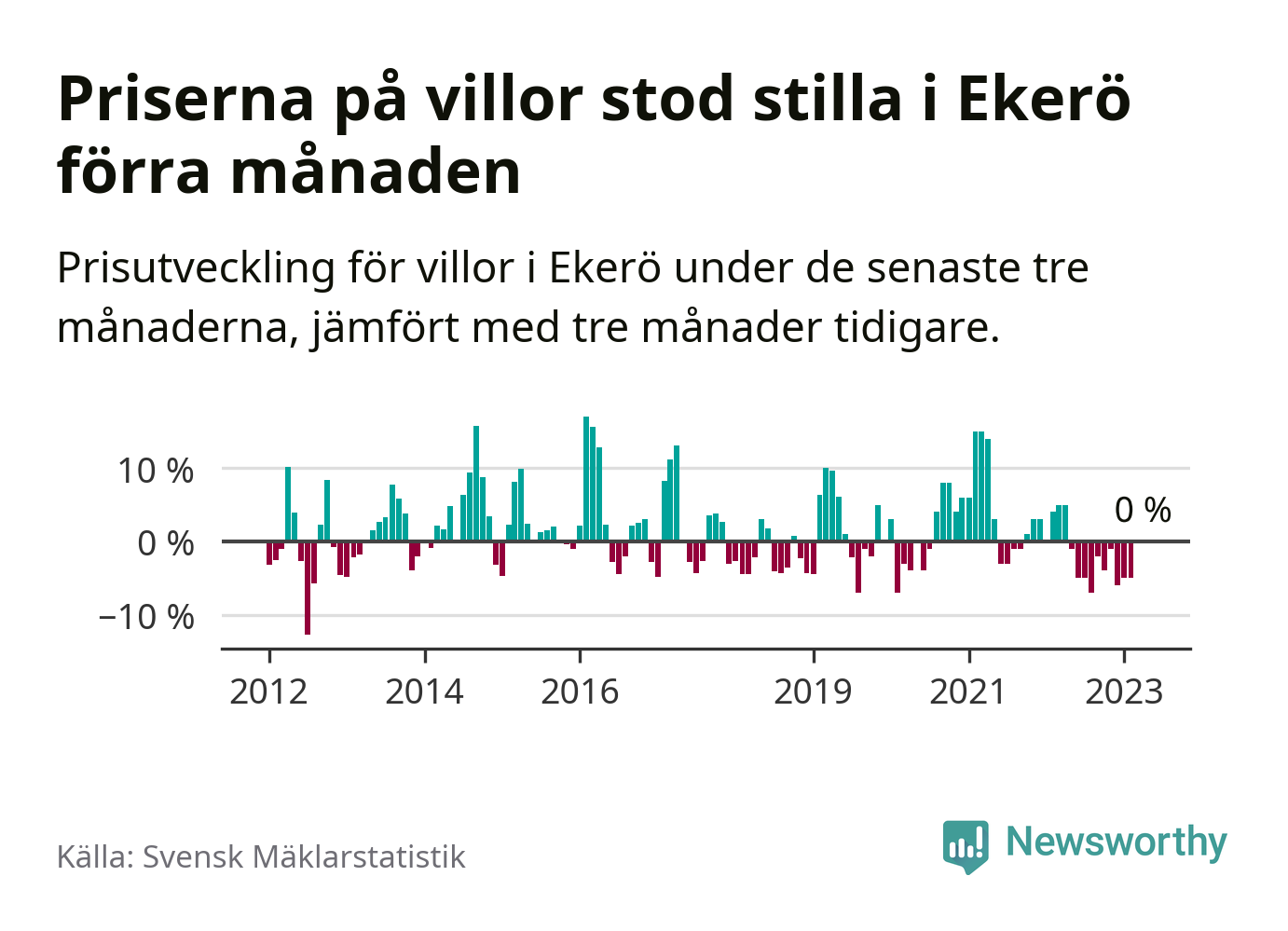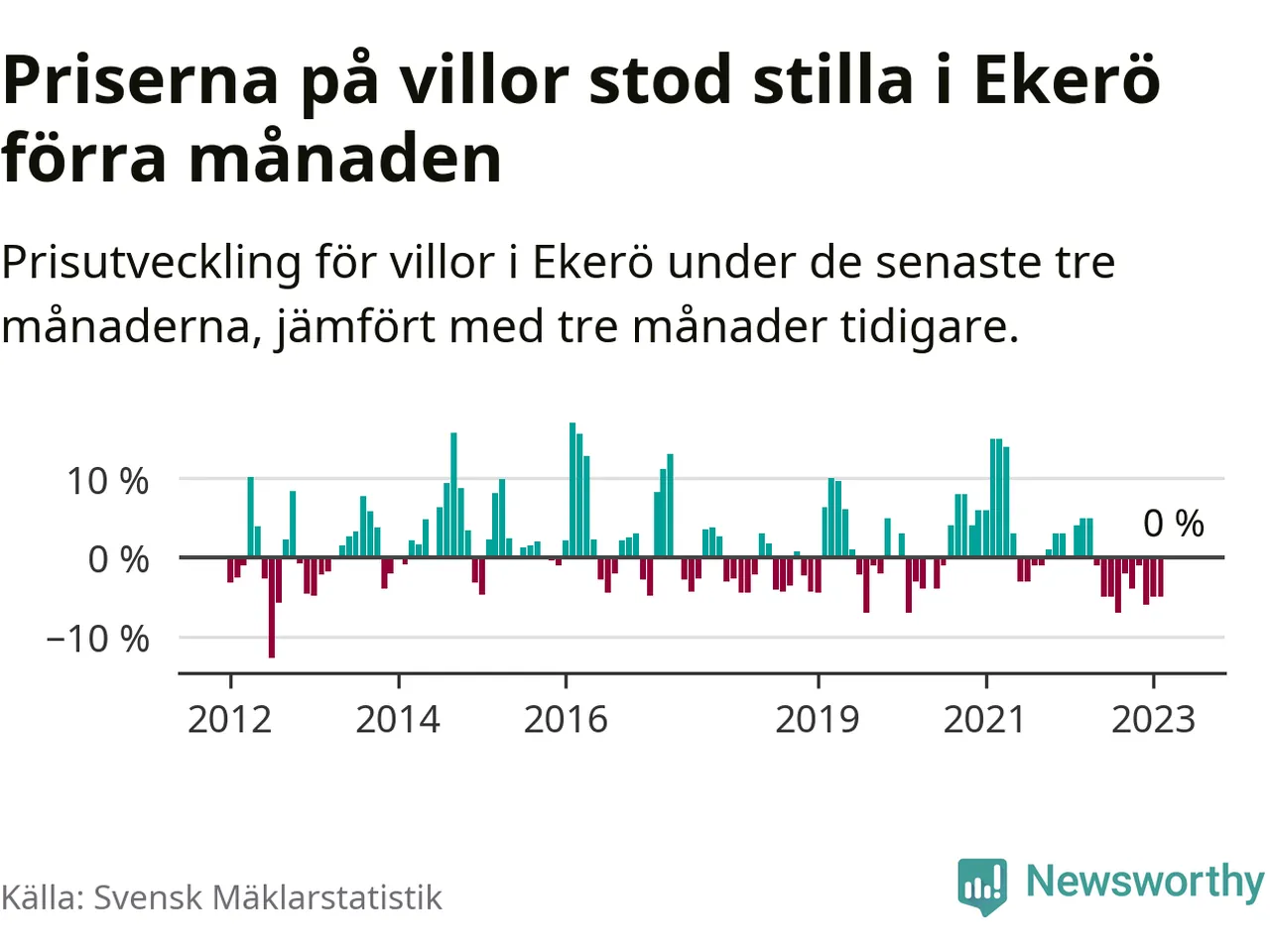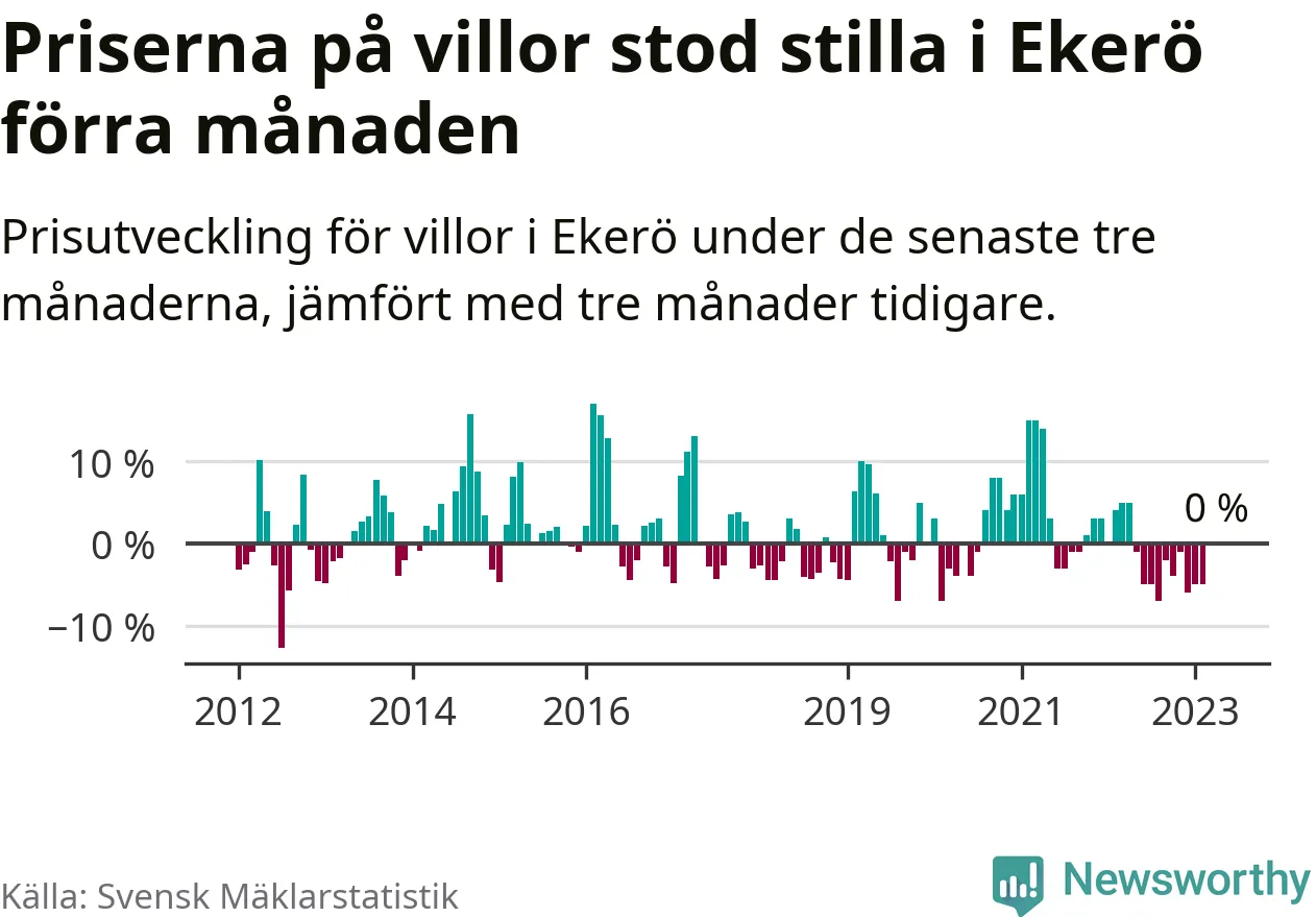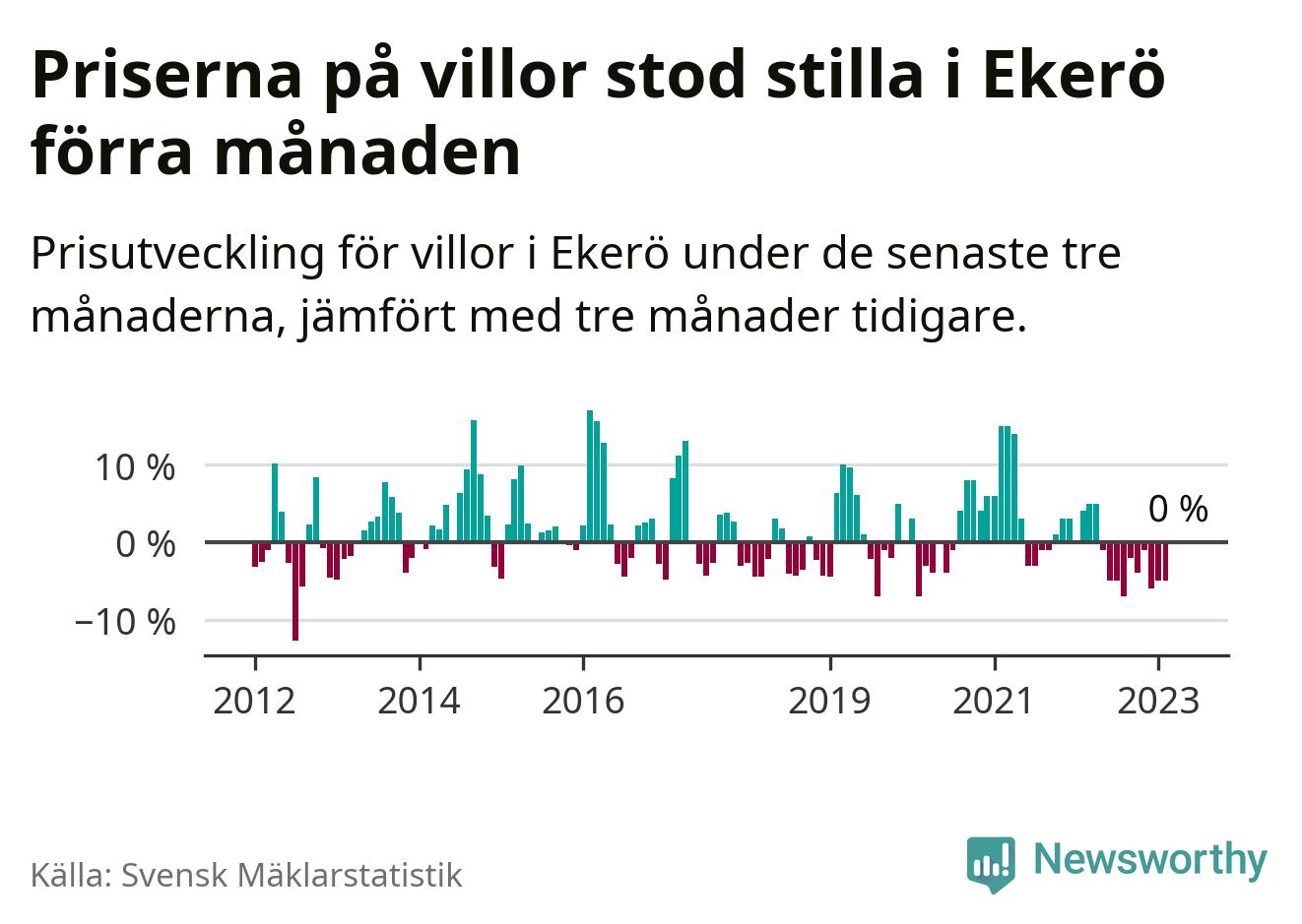 Under februari till april såldes det 16 färre villor i Ekerö än snittet för det senaste året.
