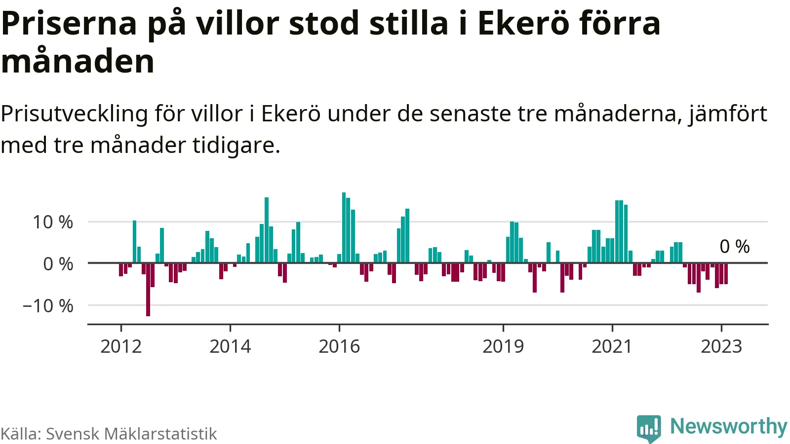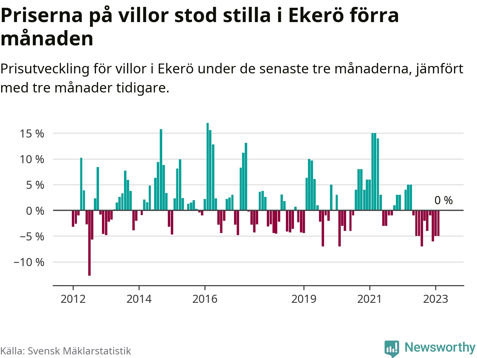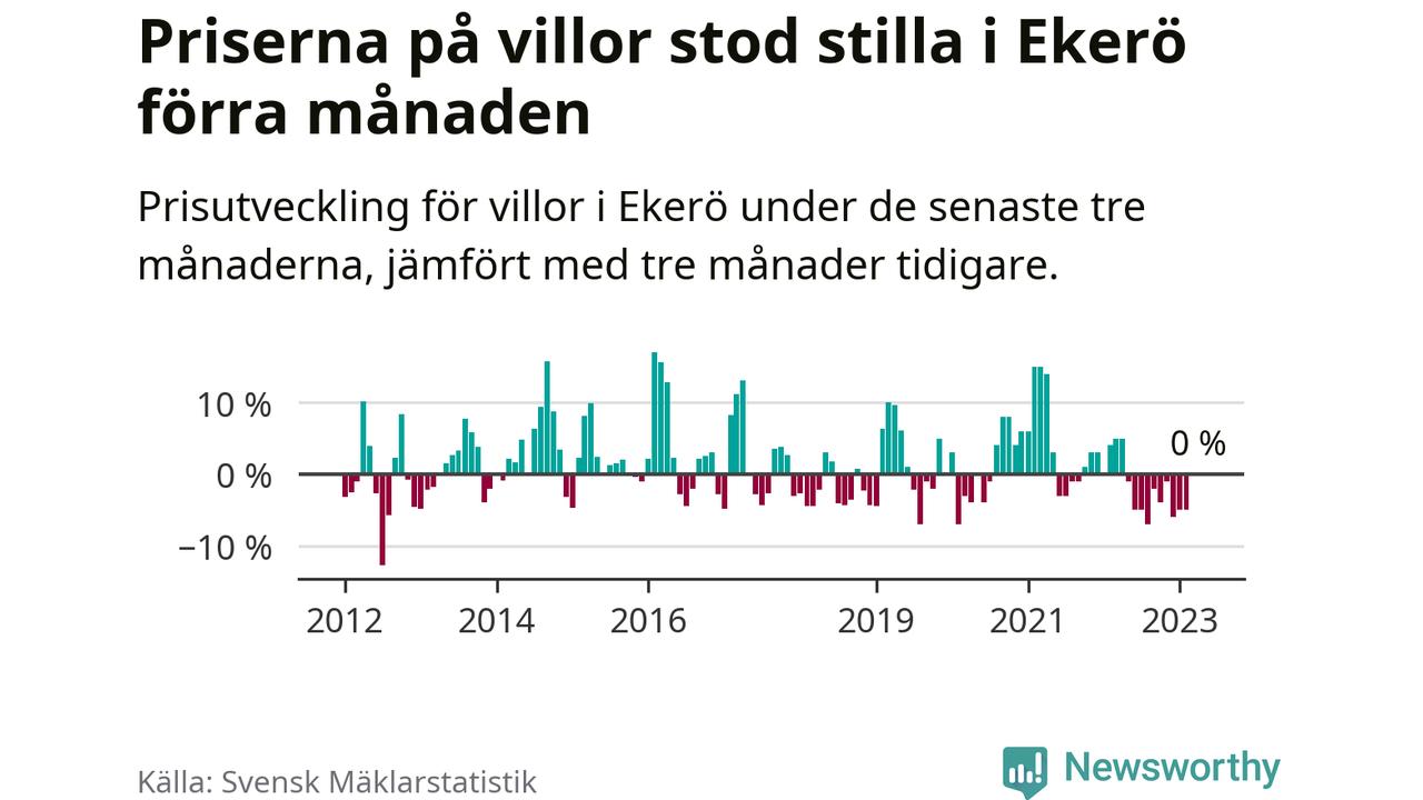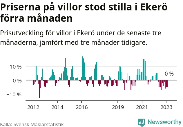 Under februari till april såldes det 16 färre villor i Ekerö än snittet för det senaste året.