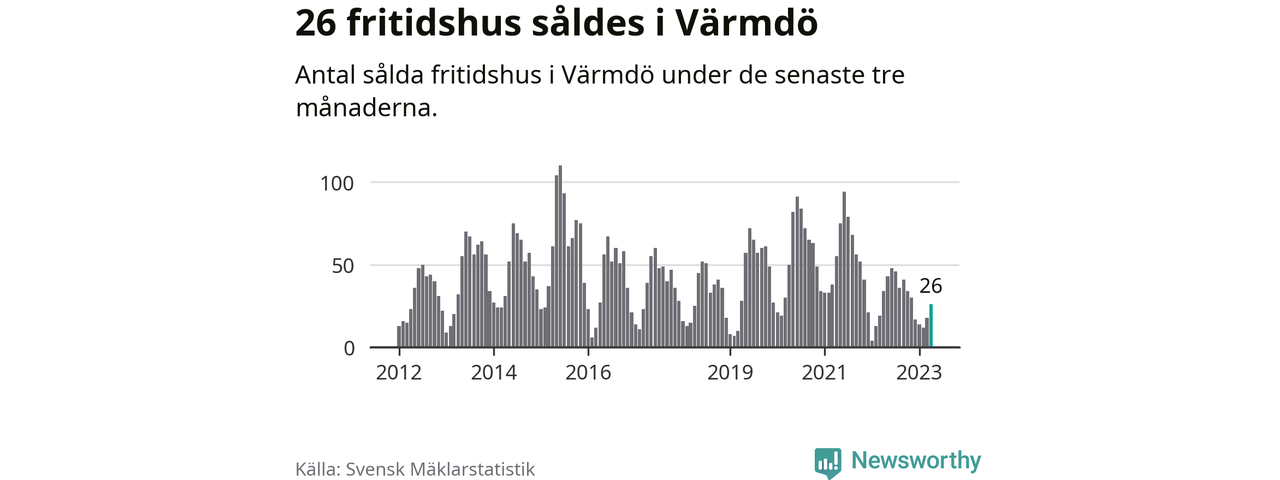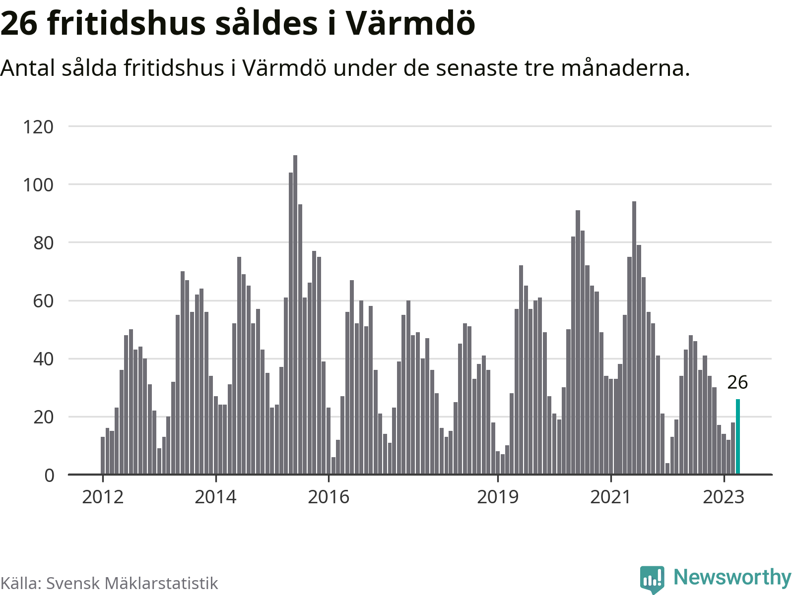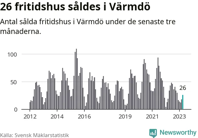 Graf: Antal sålda fritidshus i Värmdö kommun