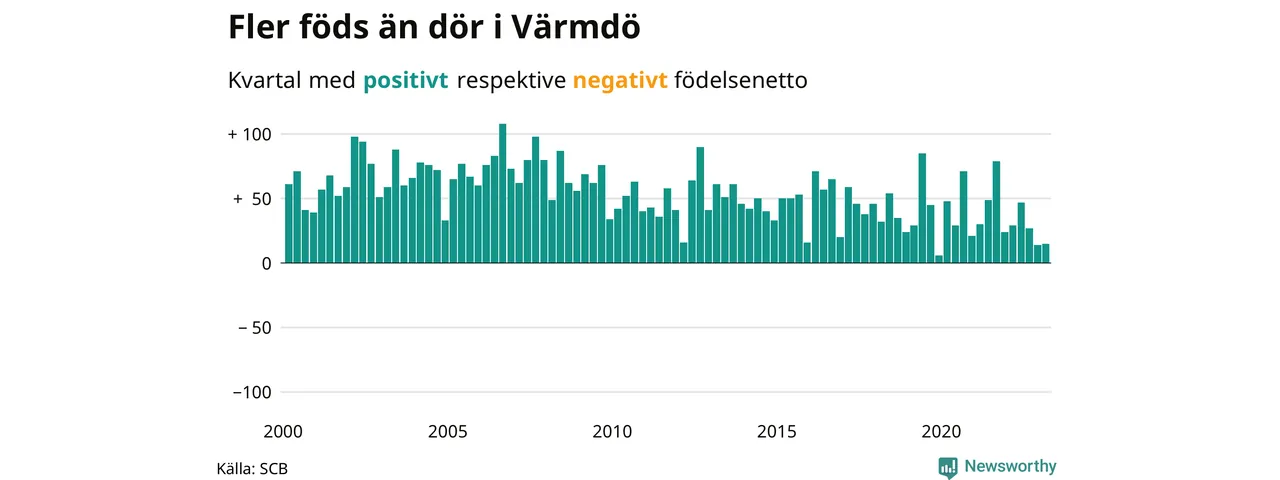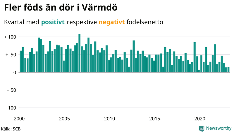 Det föddes 92 barn i Värmdö under första kvartalet, medan 77 personer avled. Det innebär att Värmdö hade ett positivt födelsenetto, vilket kommunen alltid brukar ha.