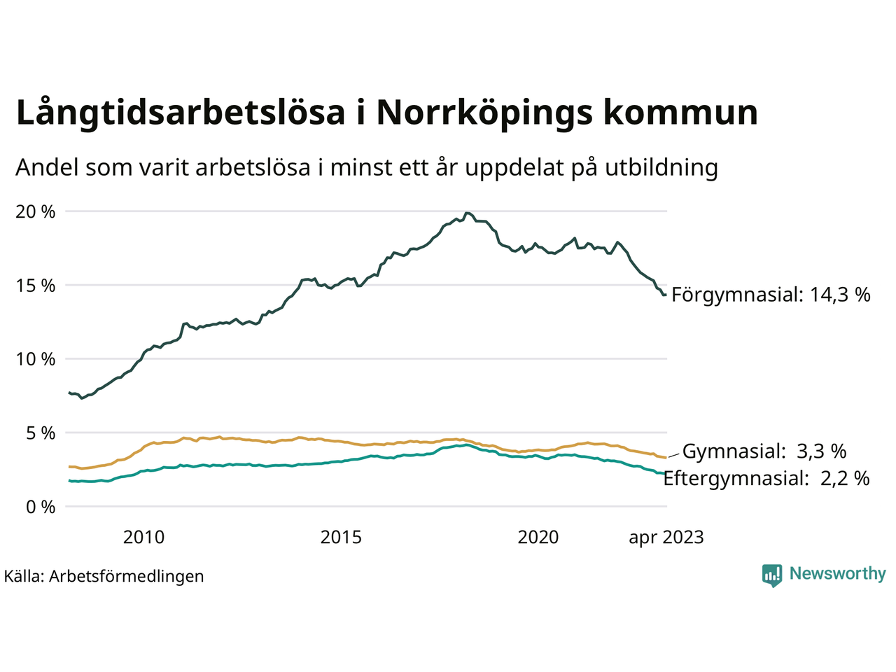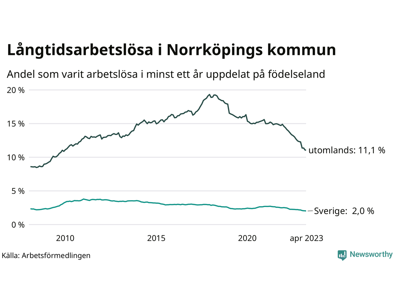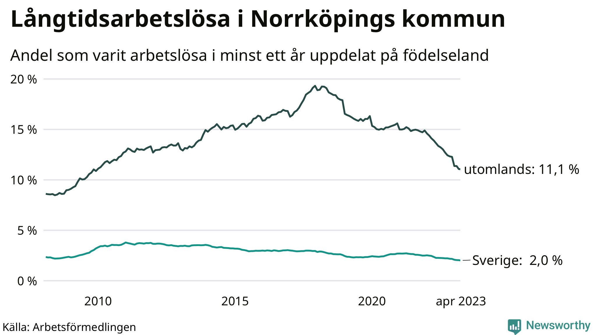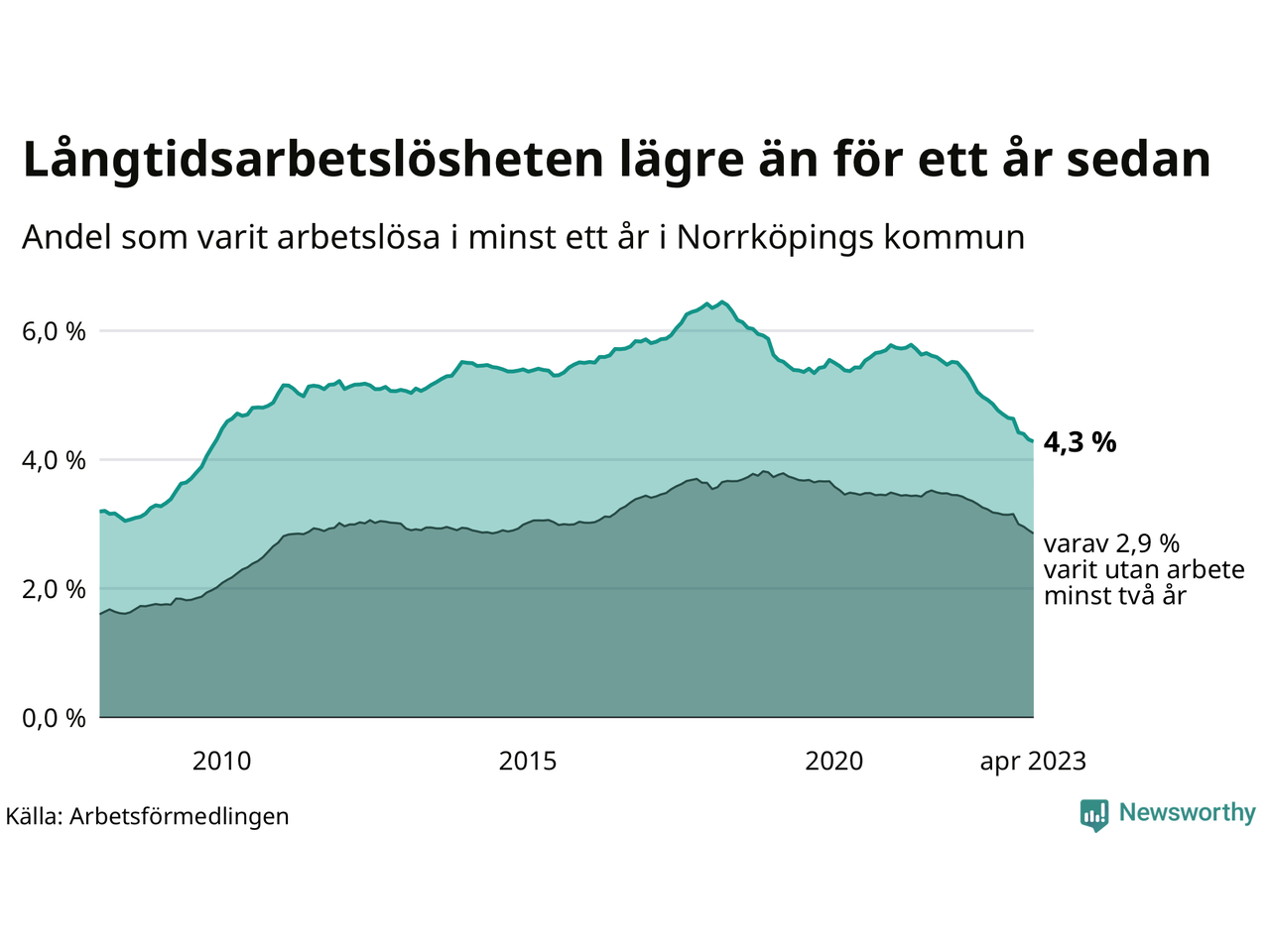 Långtidsarbetslöshet i Norrköping i april 2023