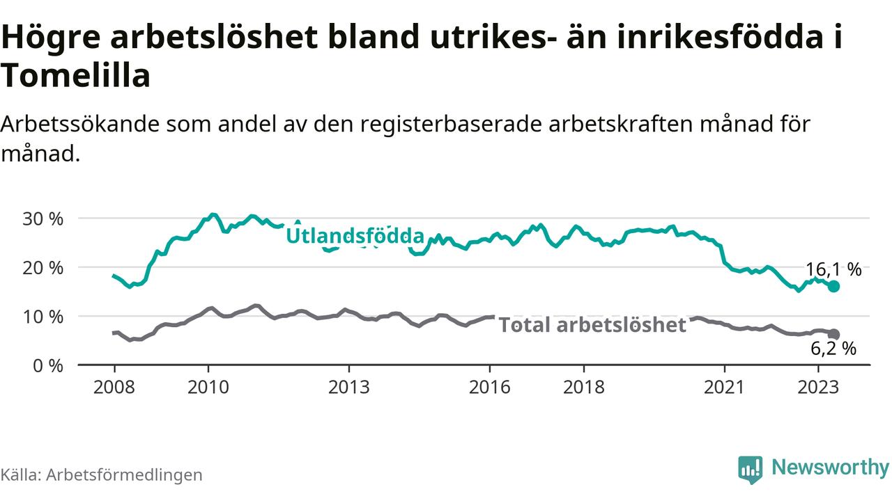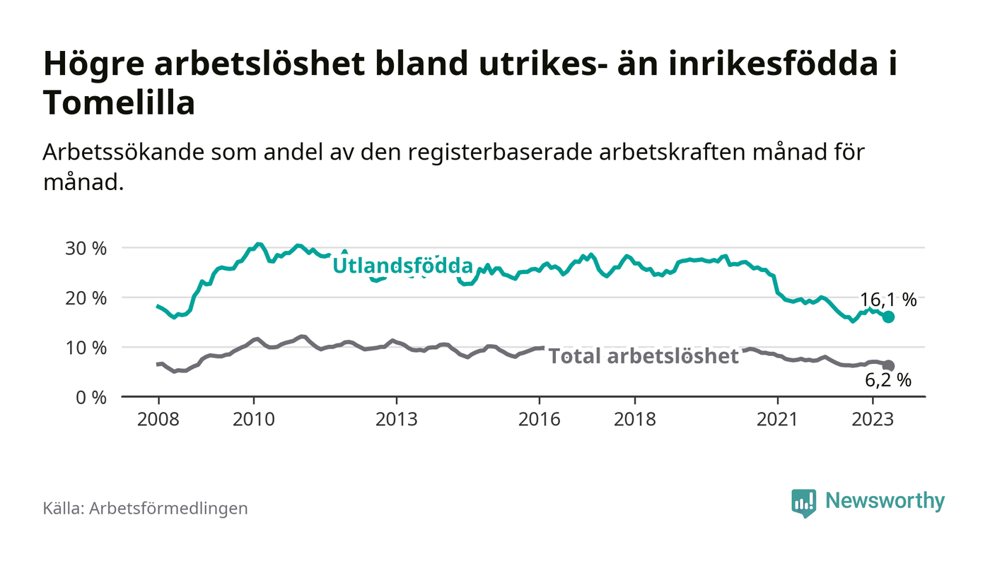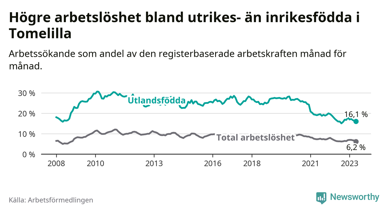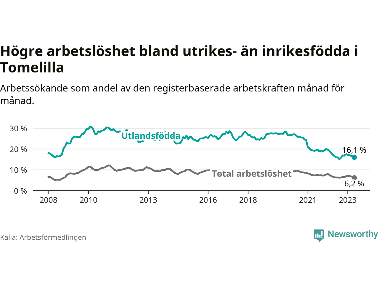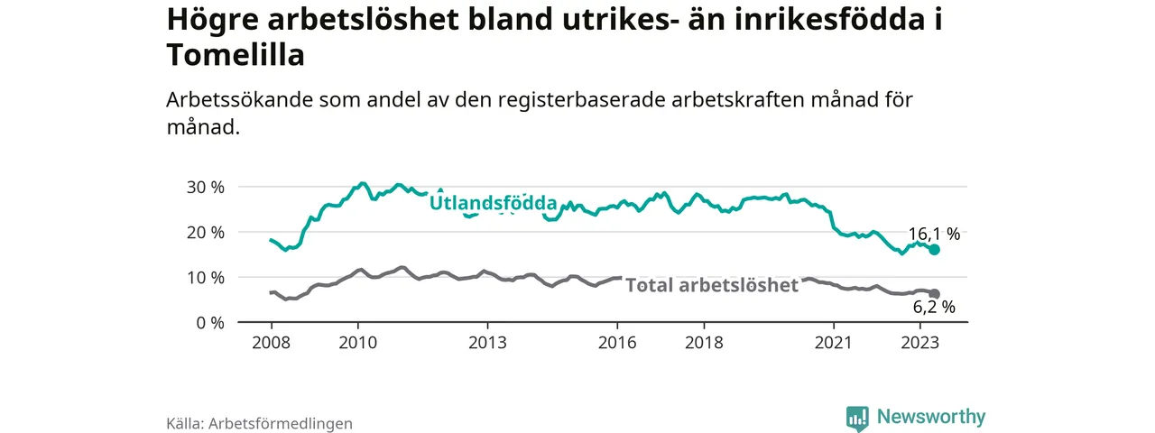 Läs mer om arbetslösheten bland utlandsfödda längre ner i den här texten.