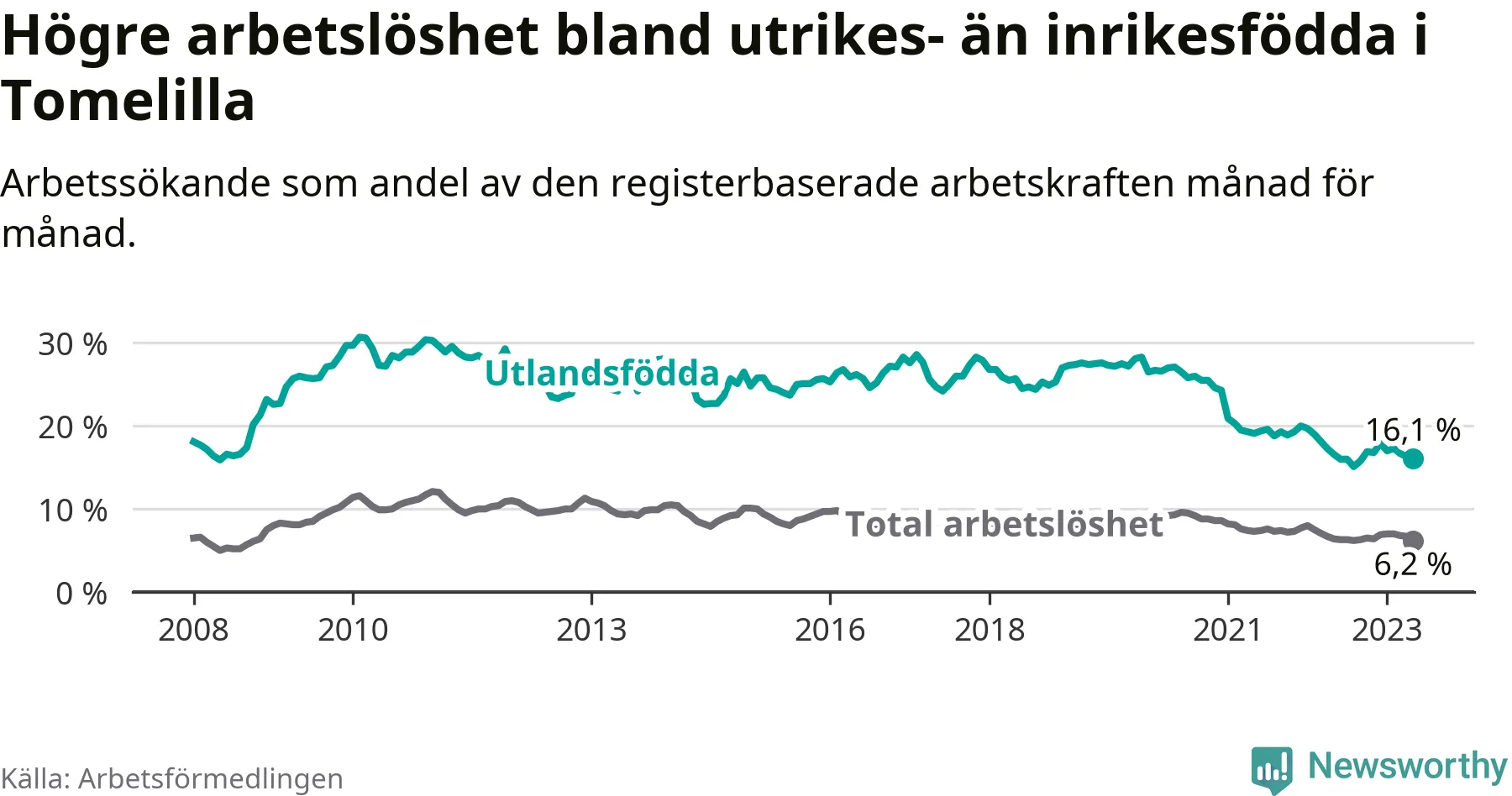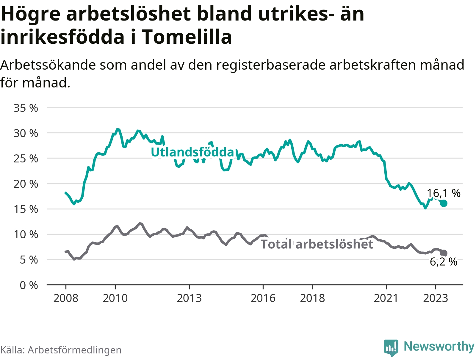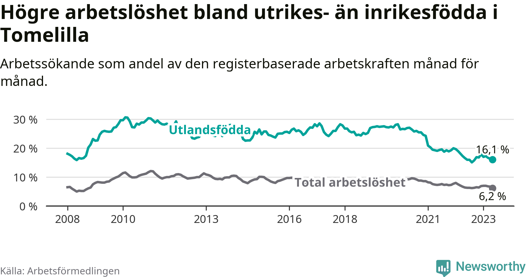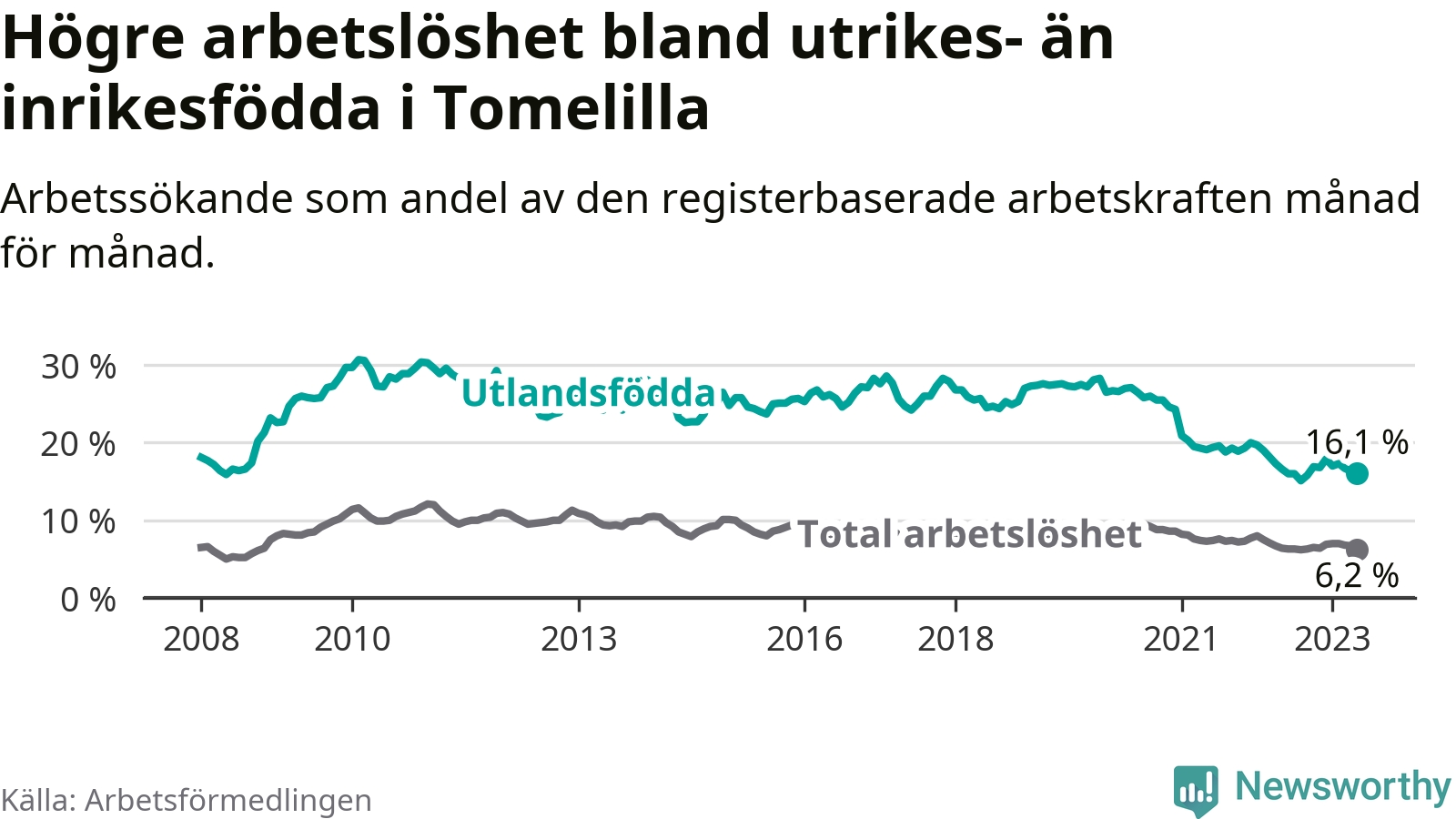 Läs mer om arbetslösheten bland utlandsfödda längre ner i den här texten.