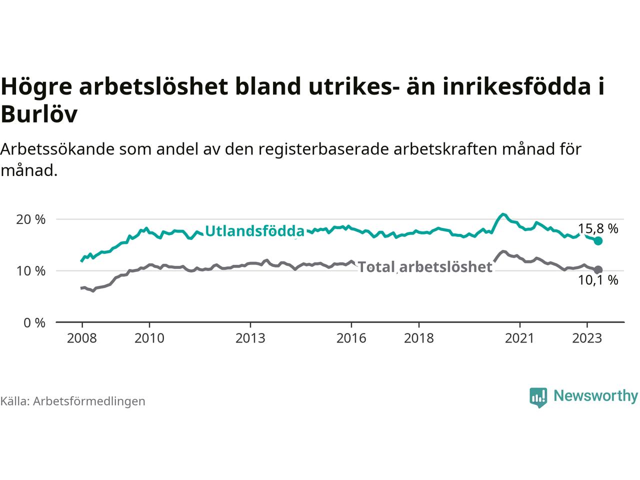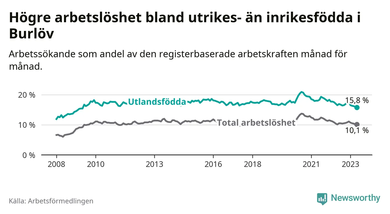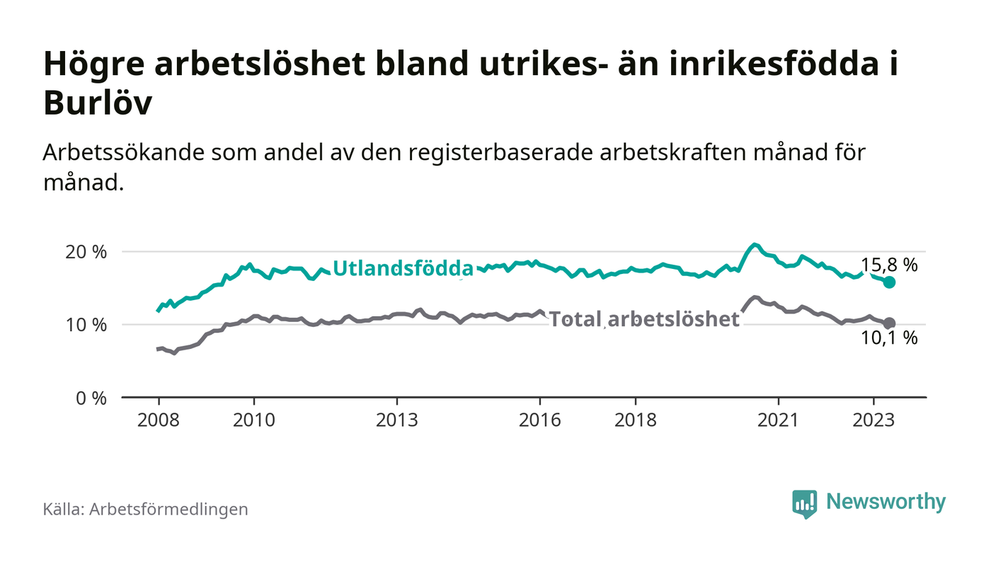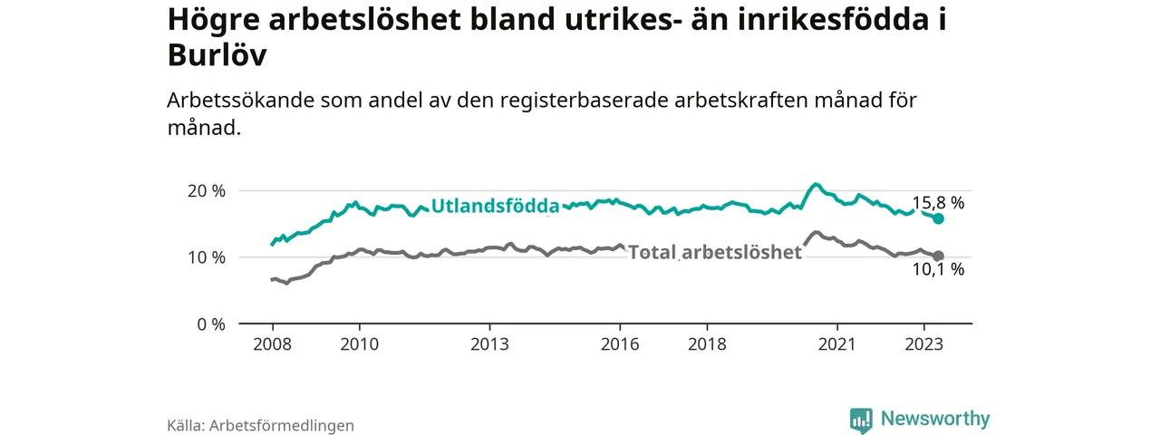 Läs mer om arbetslösheten bland utlandsfödda längre ner i den här texten.