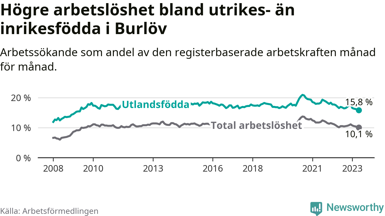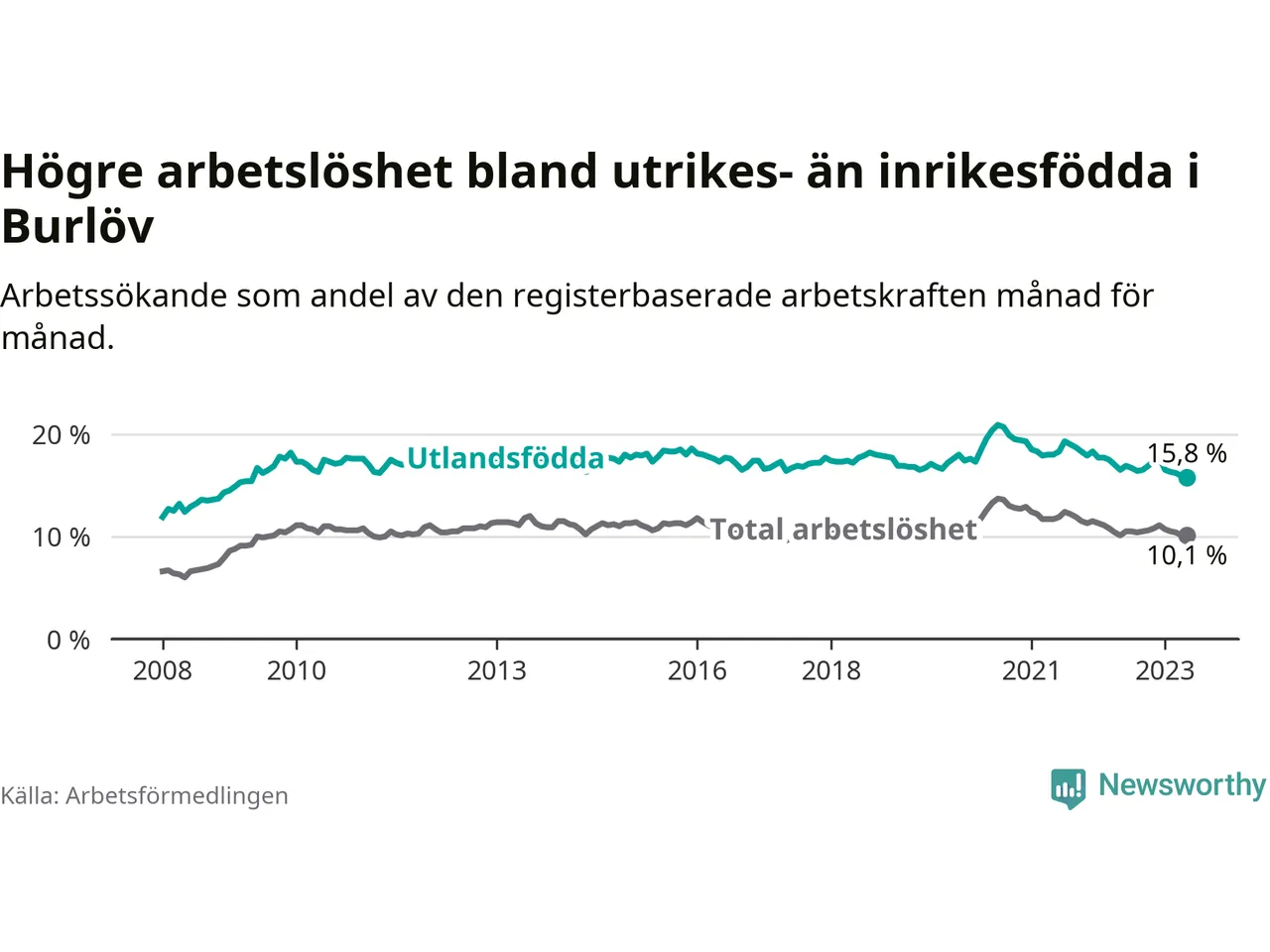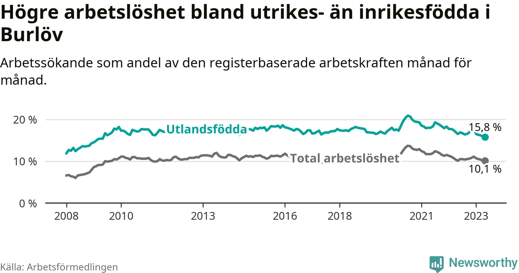 Läs mer om arbetslösheten bland utlandsfödda längre ner i den här texten.