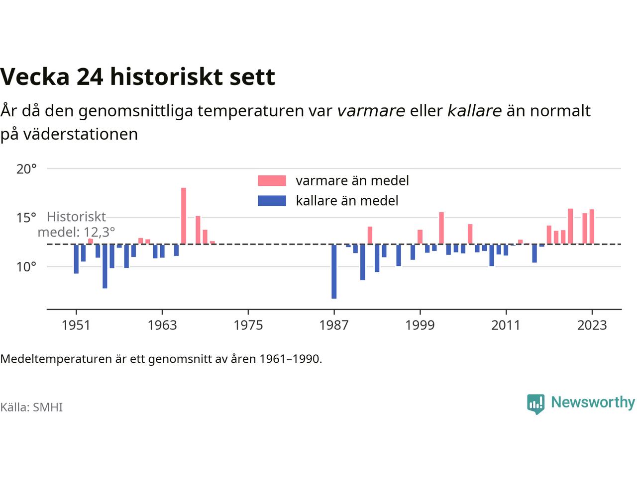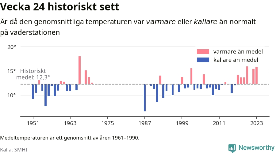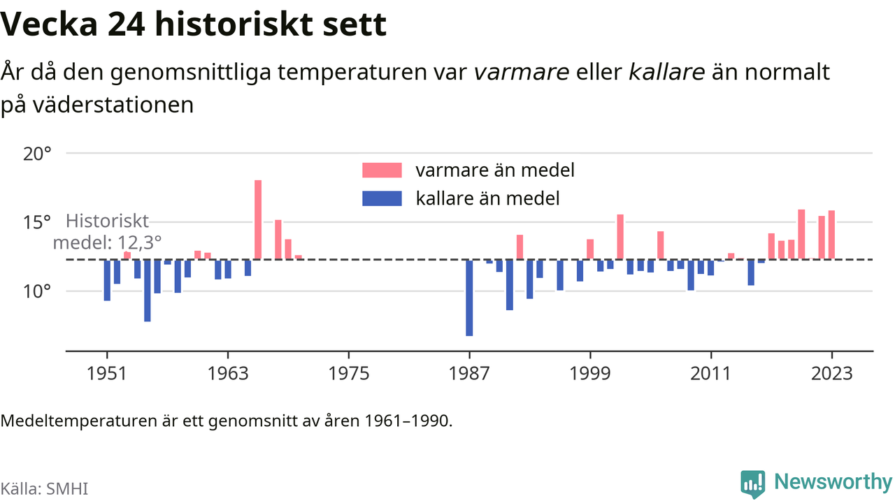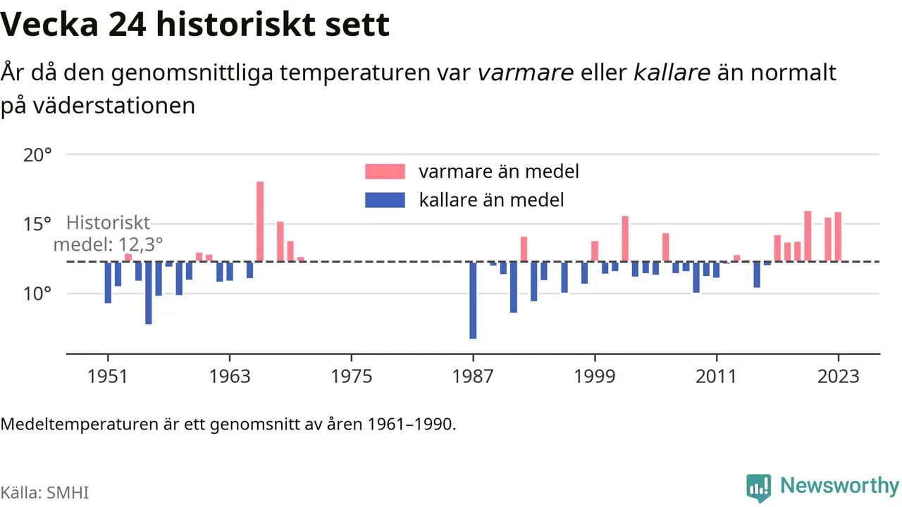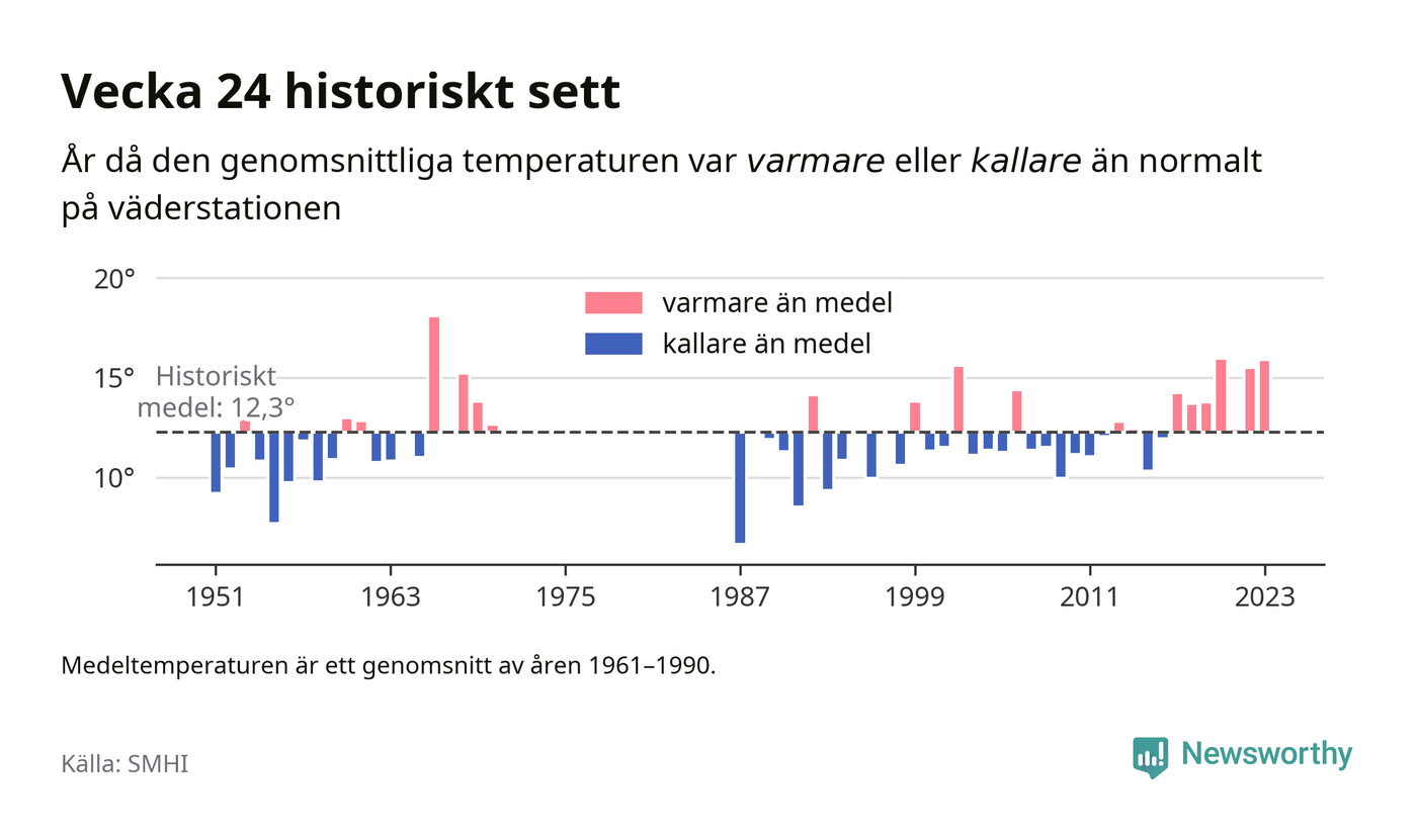Med klimatförändringen kan vi förvänta oss gradvis varmare temperaturer. Under det senaste decenniet har vecka 24 varit varmare än snittet åtta av tio år på Brämön.