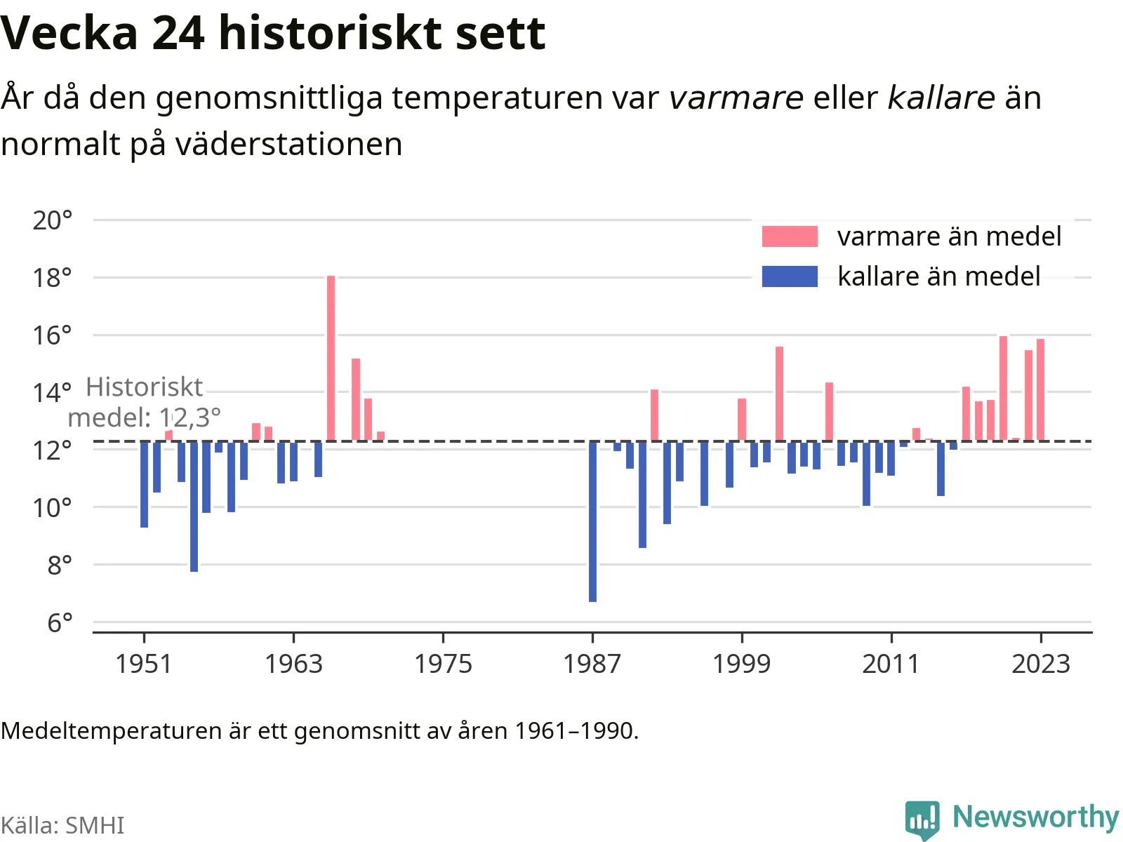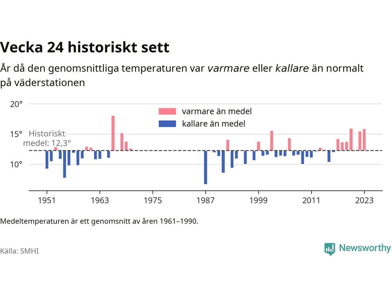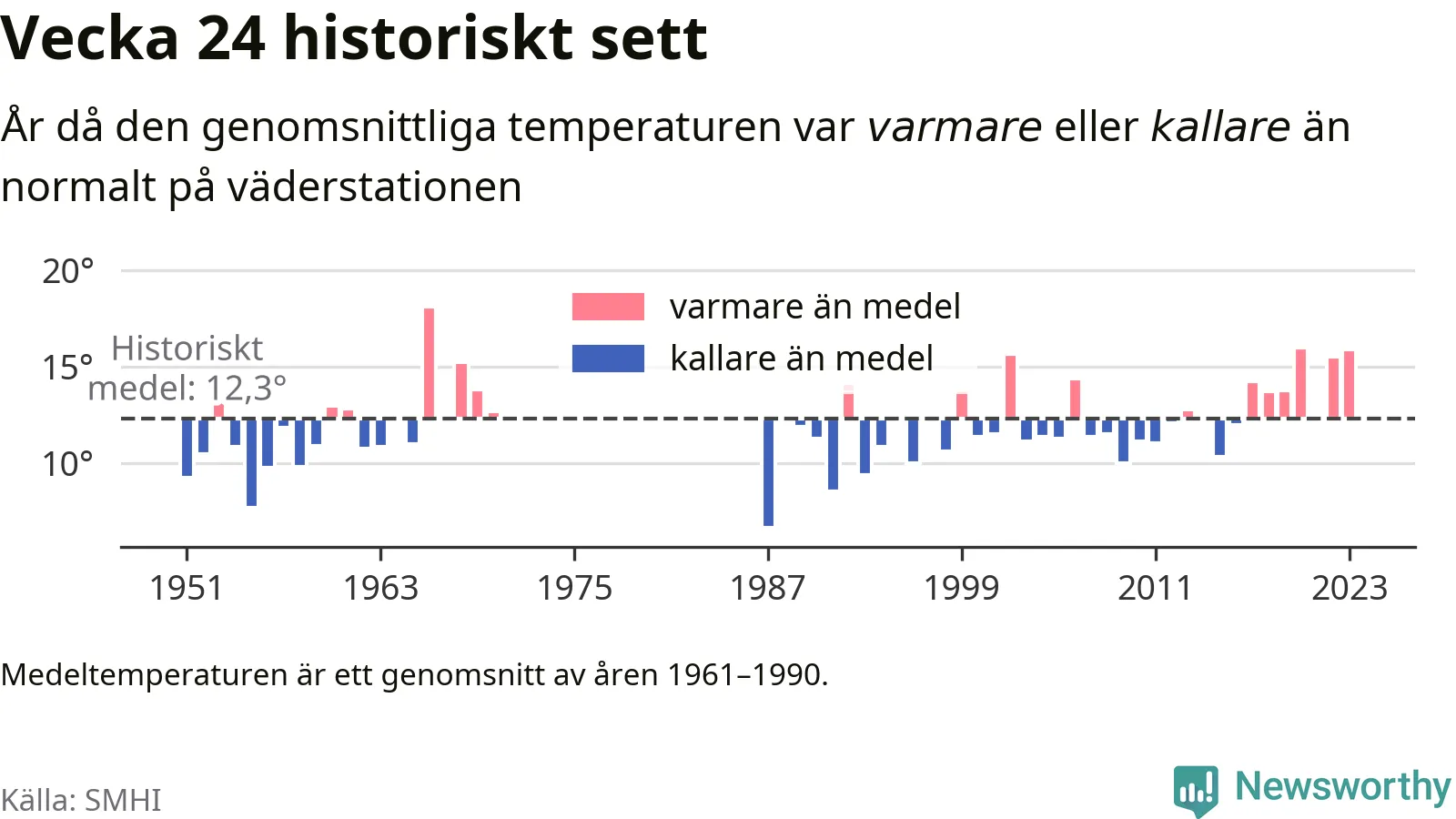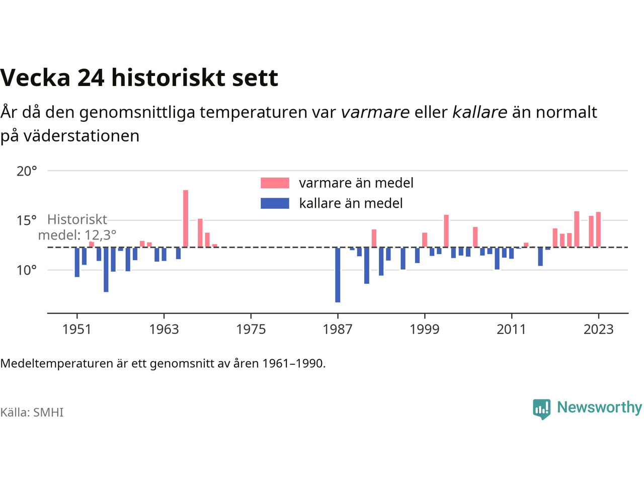 Med klimatförändringen kan vi förvänta oss gradvis varmare temperaturer. Under det senaste decenniet har vecka 24 varit varmare än snittet åtta av tio år på Brämön.