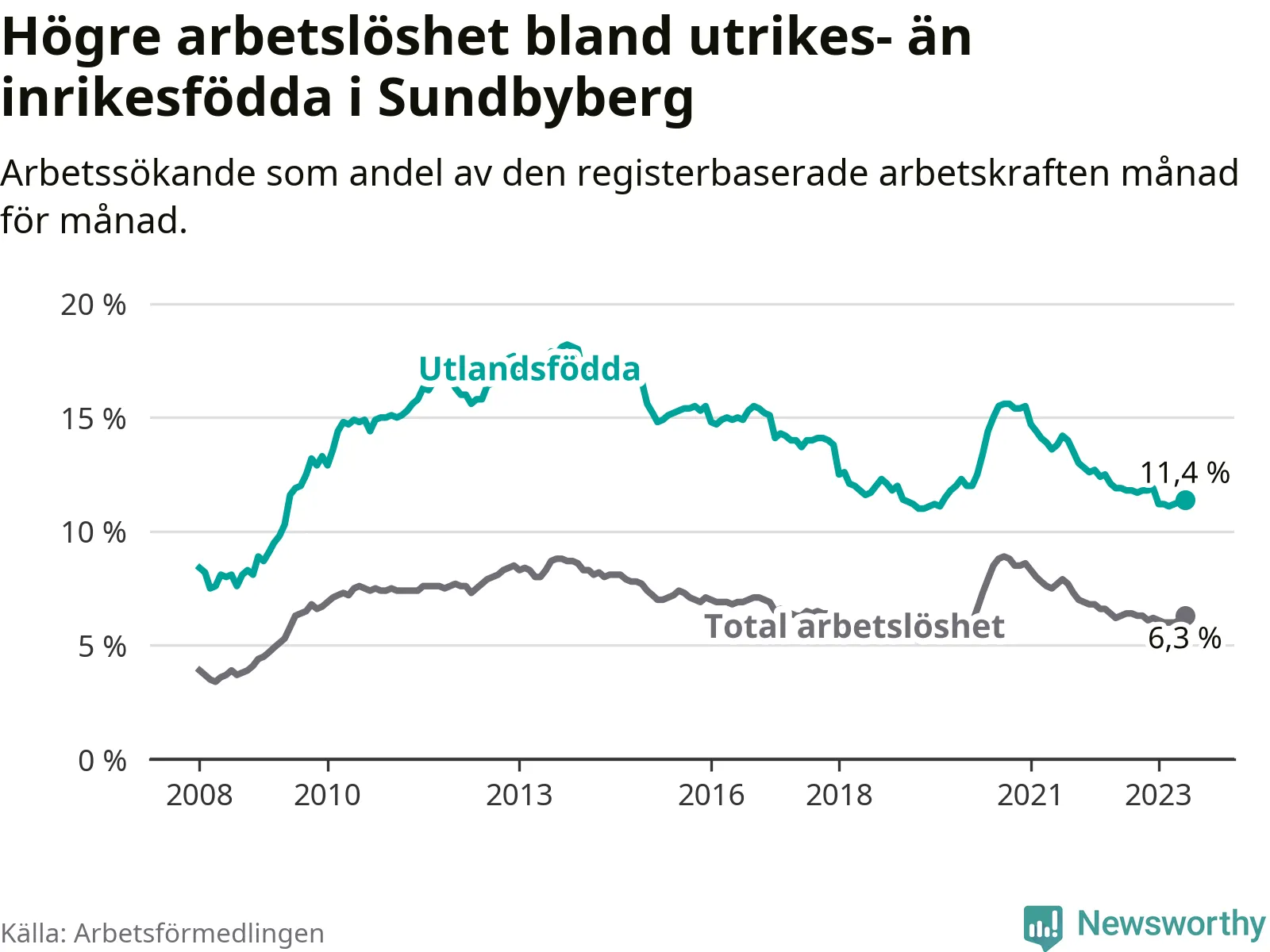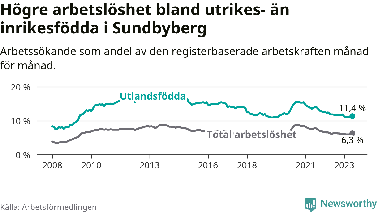Läs mer om arbetslösheten bland utlandsfödda längre ner i den här texten.