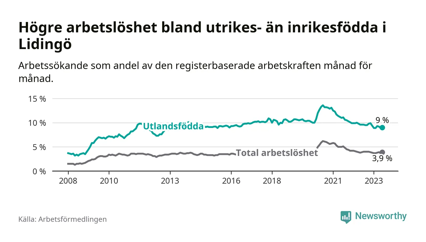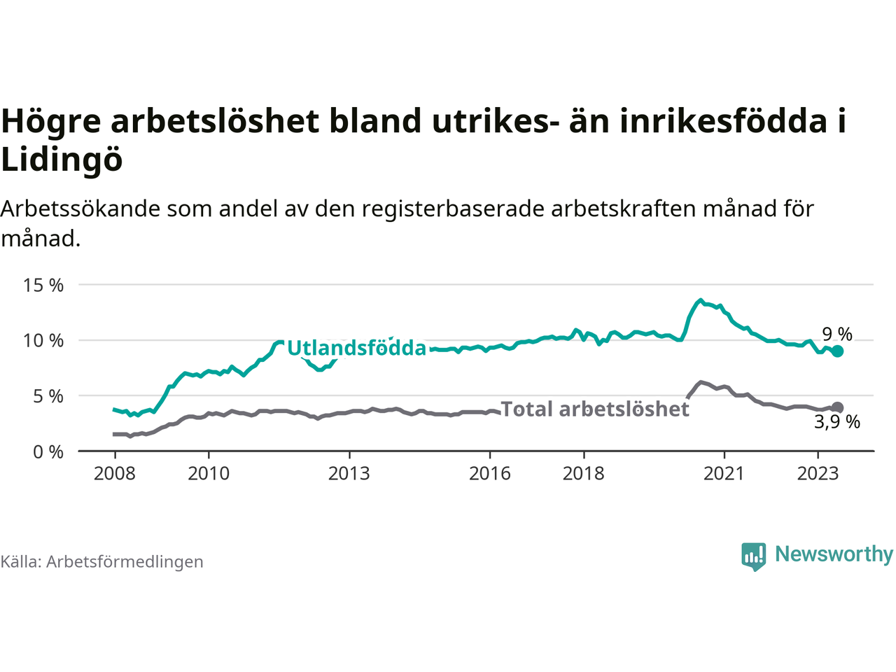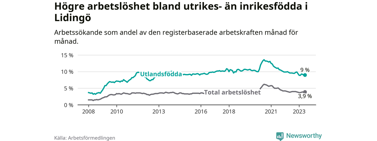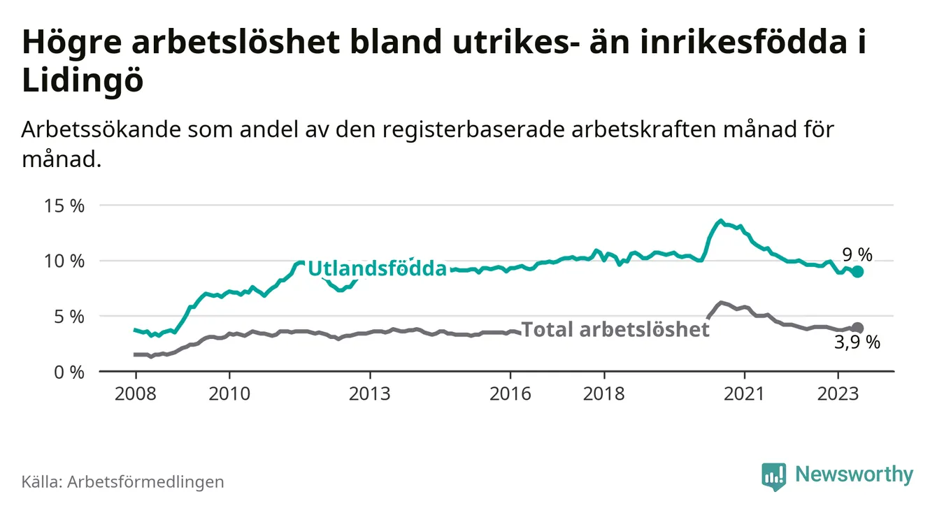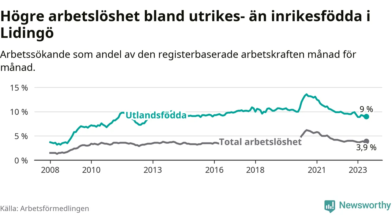 Läs mer om arbetslösheten bland utlandsfödda längre ner i den här texten.