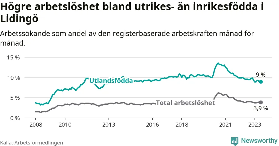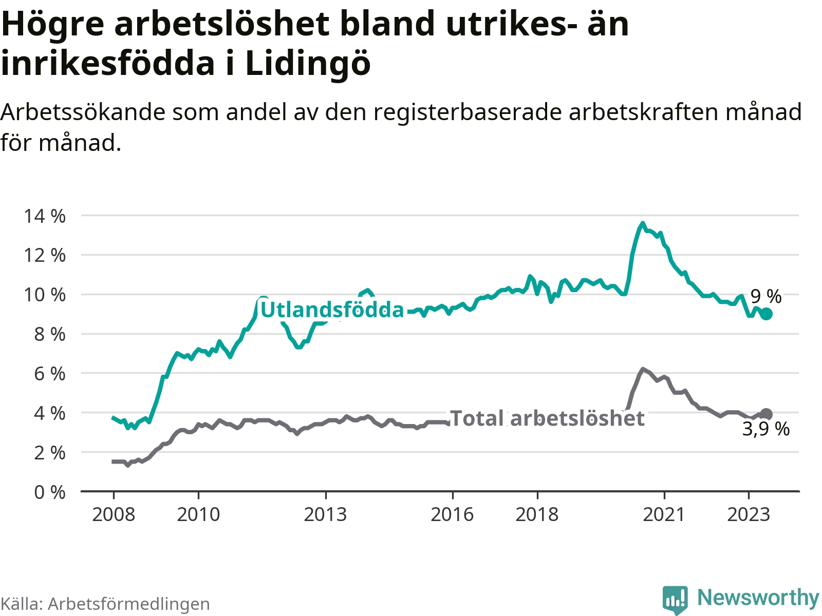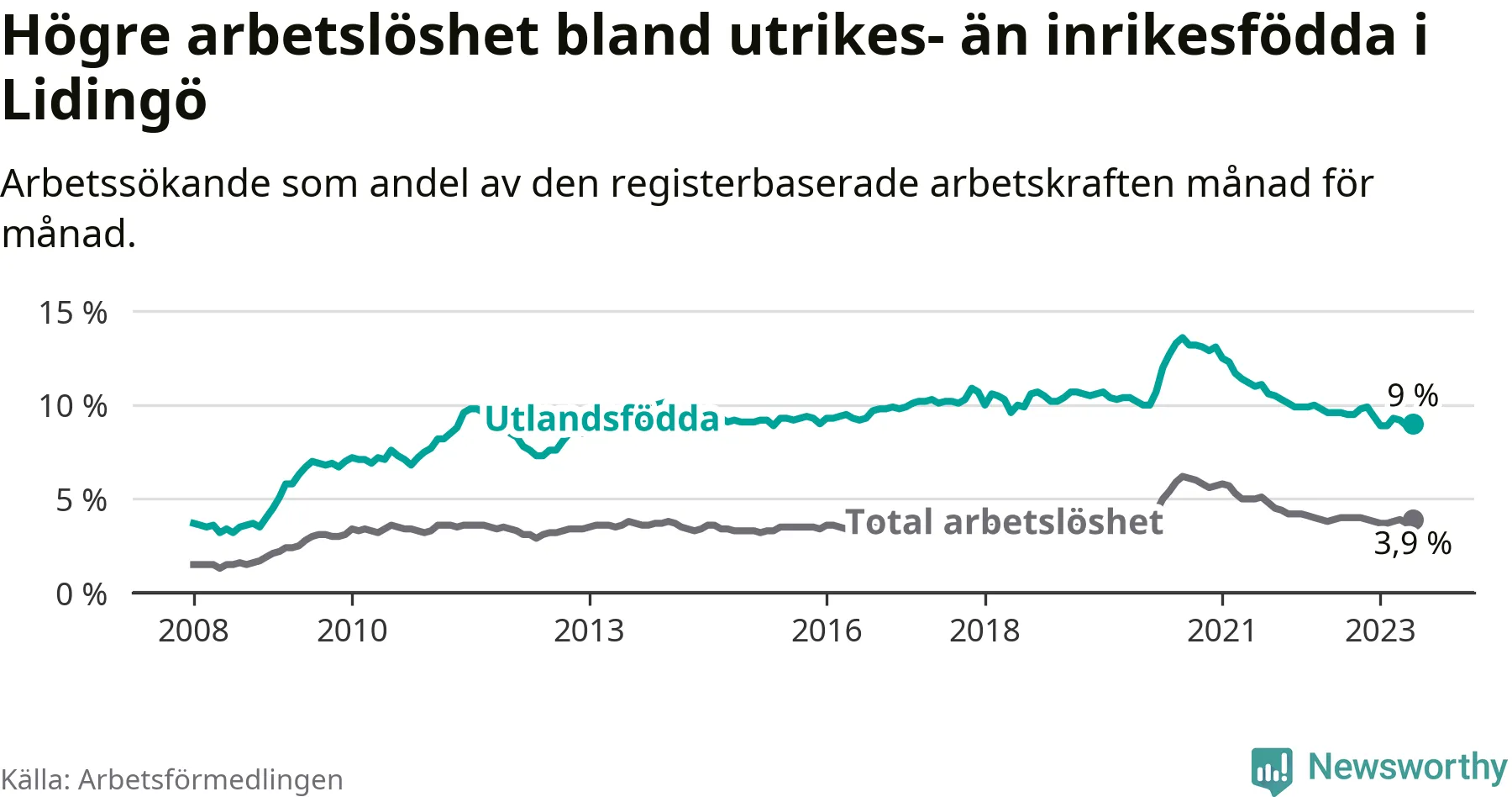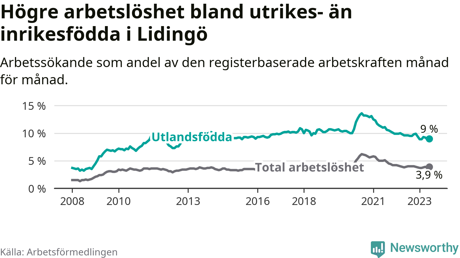 Läs mer om arbetslösheten bland utlandsfödda längre ner i den här texten.