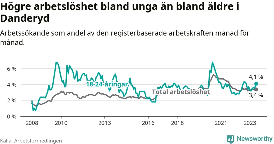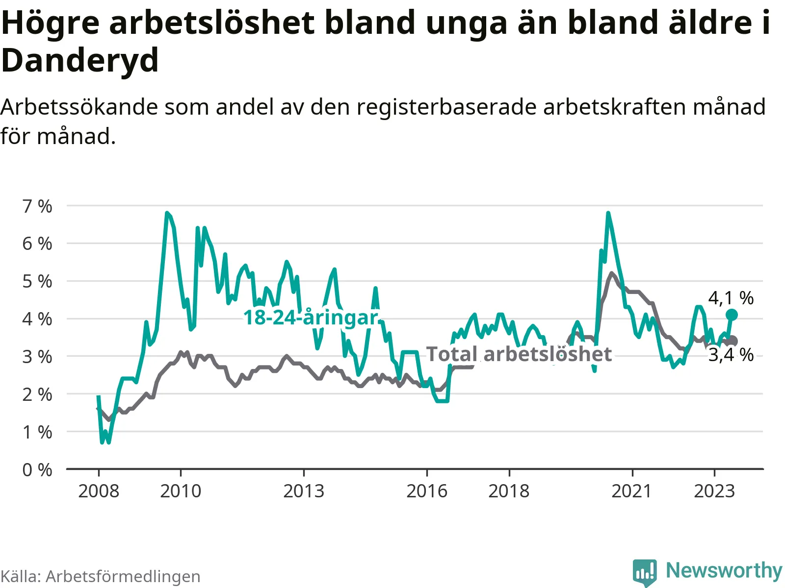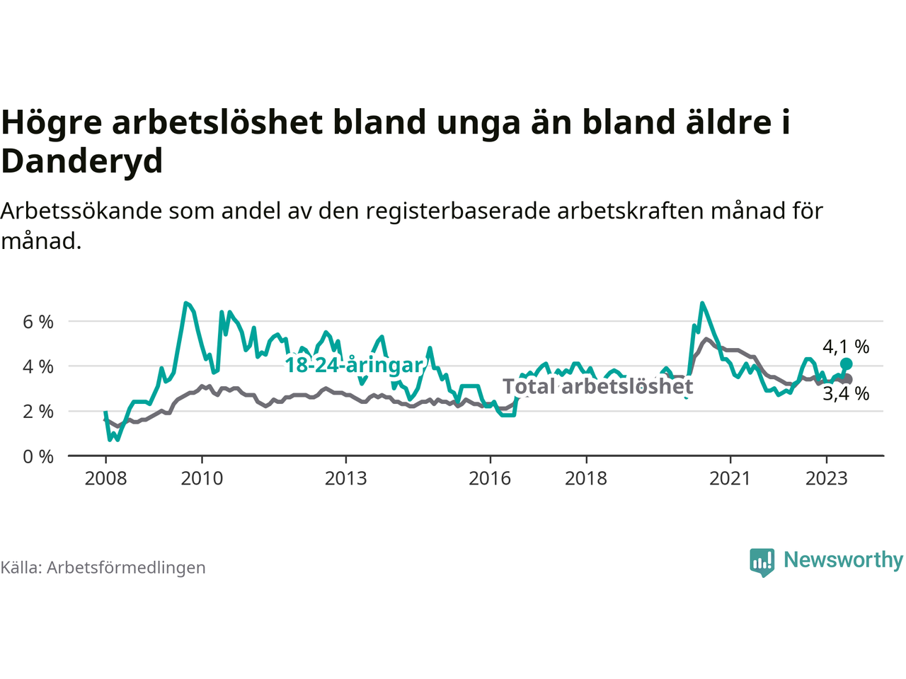 Den senaste månadsstatistiken från Arbetsförmedlingen visar på en uppgång i ungdomsarbetslöshet i Danderyds kommun med 0,8 procentenheter. Arbetslösheten bland personer i åldern 18–24 år låg i juni på 4,1 procent.