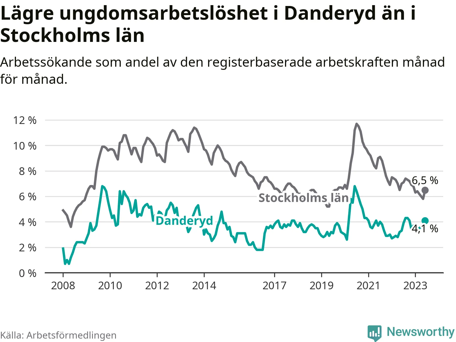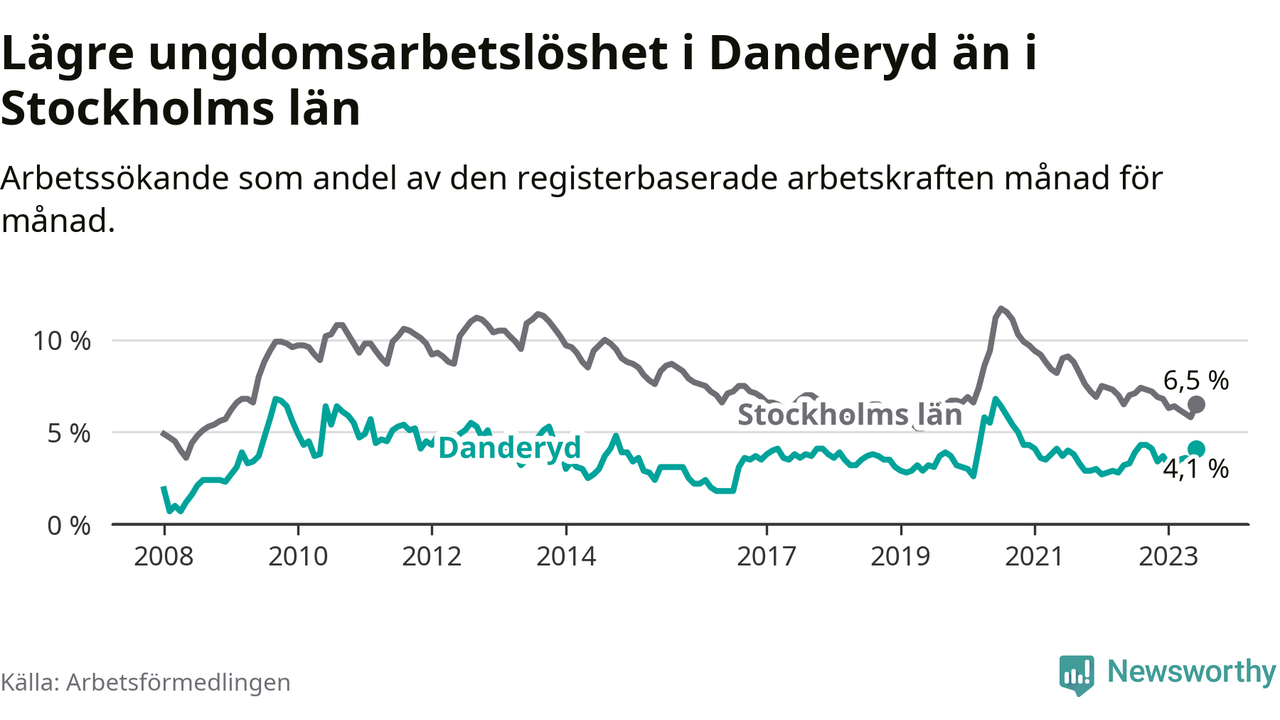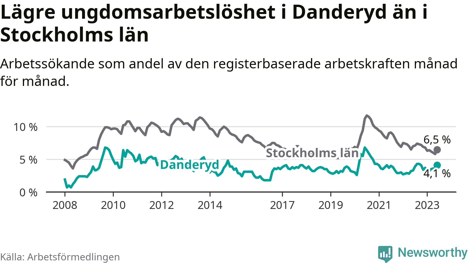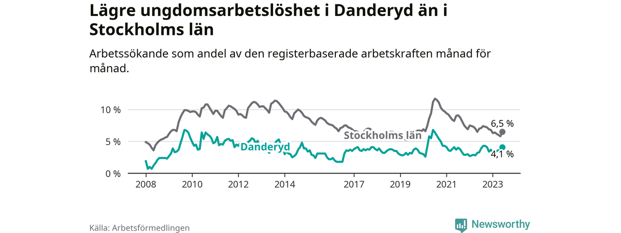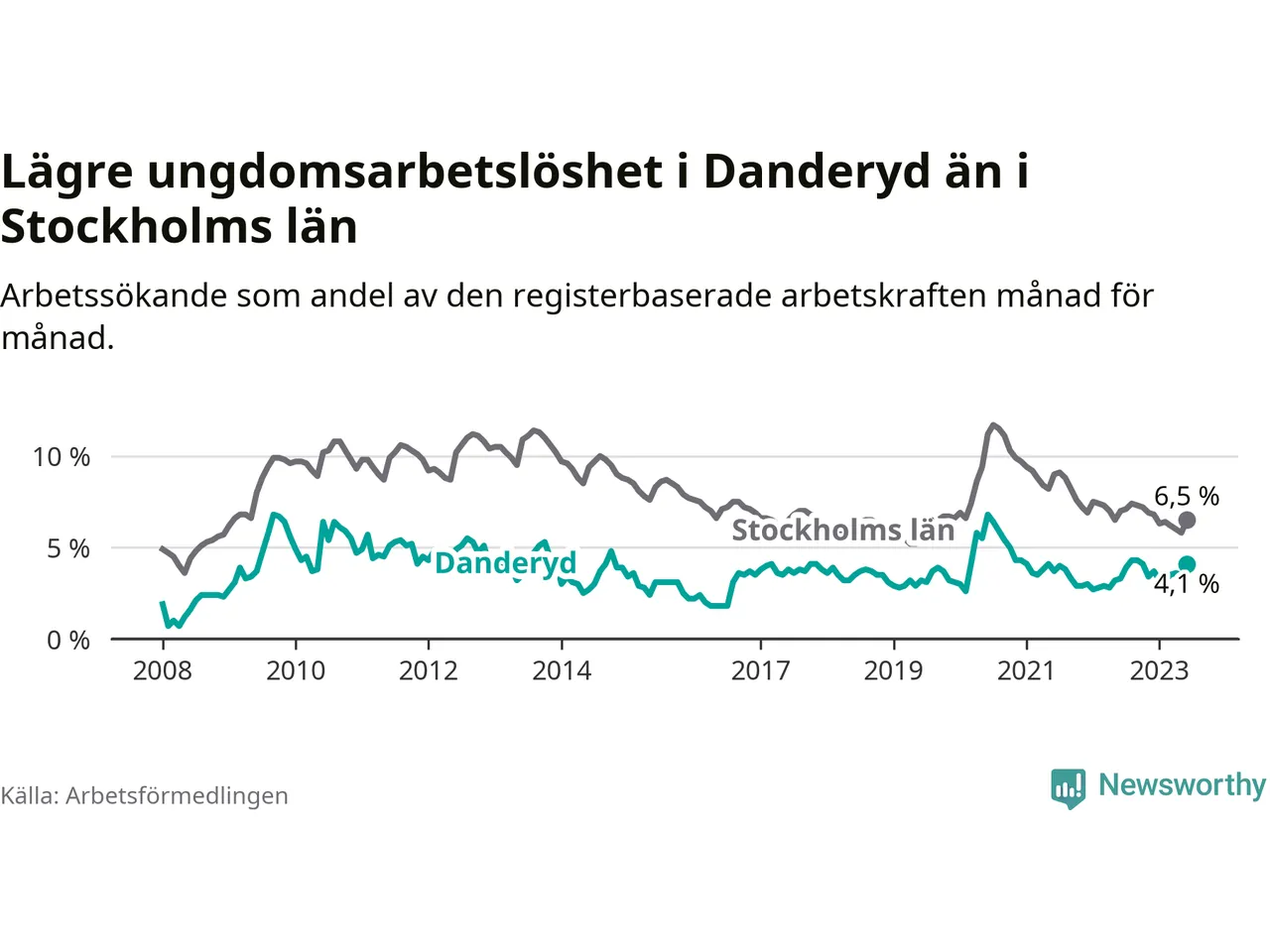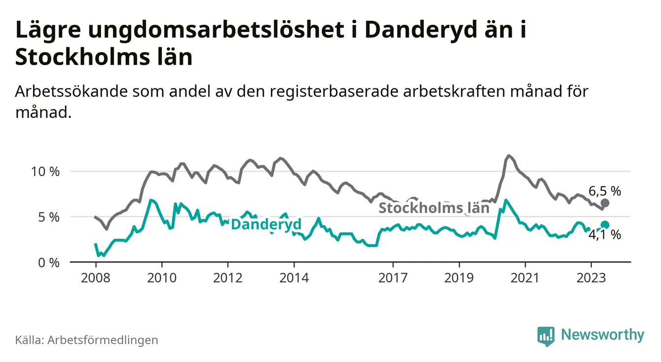 19 av 26 kommuner i Stockholms län såg en minskande ungdomsarbetslöshet i juni. i Danderyd däremot ökar den.