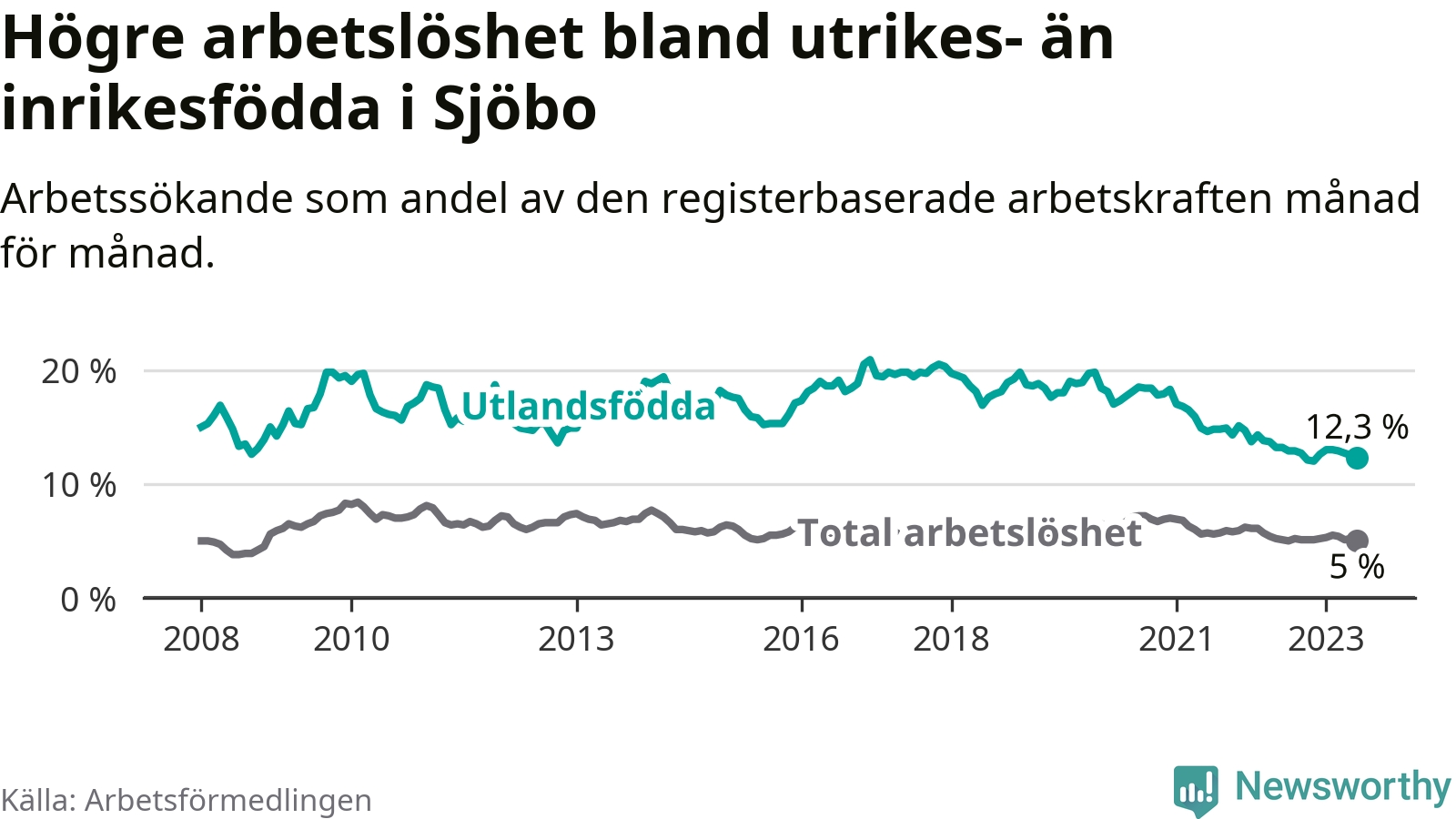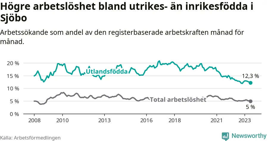Läs mer om arbetslösheten bland utlandsfödda längre ner i den här texten.