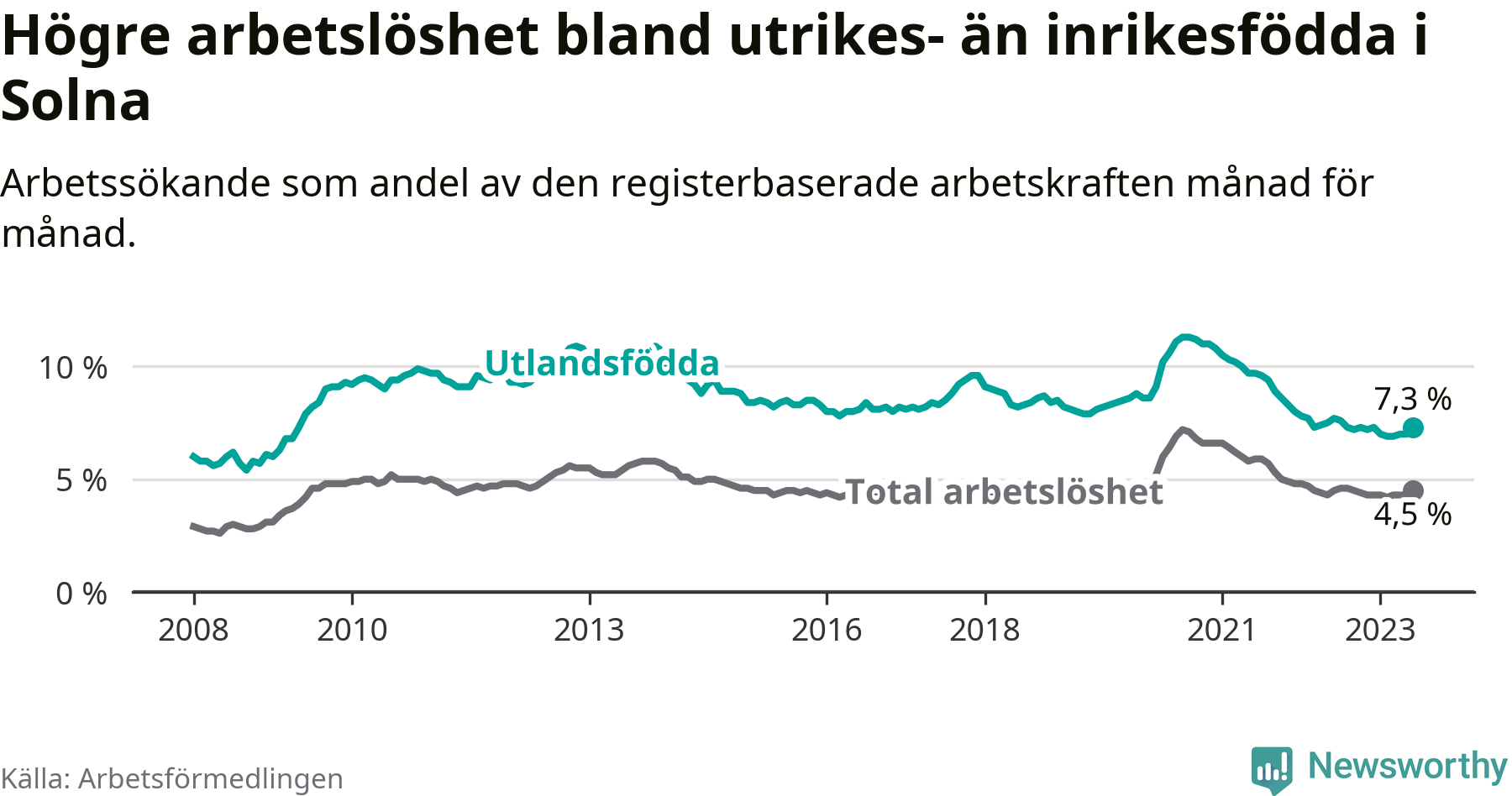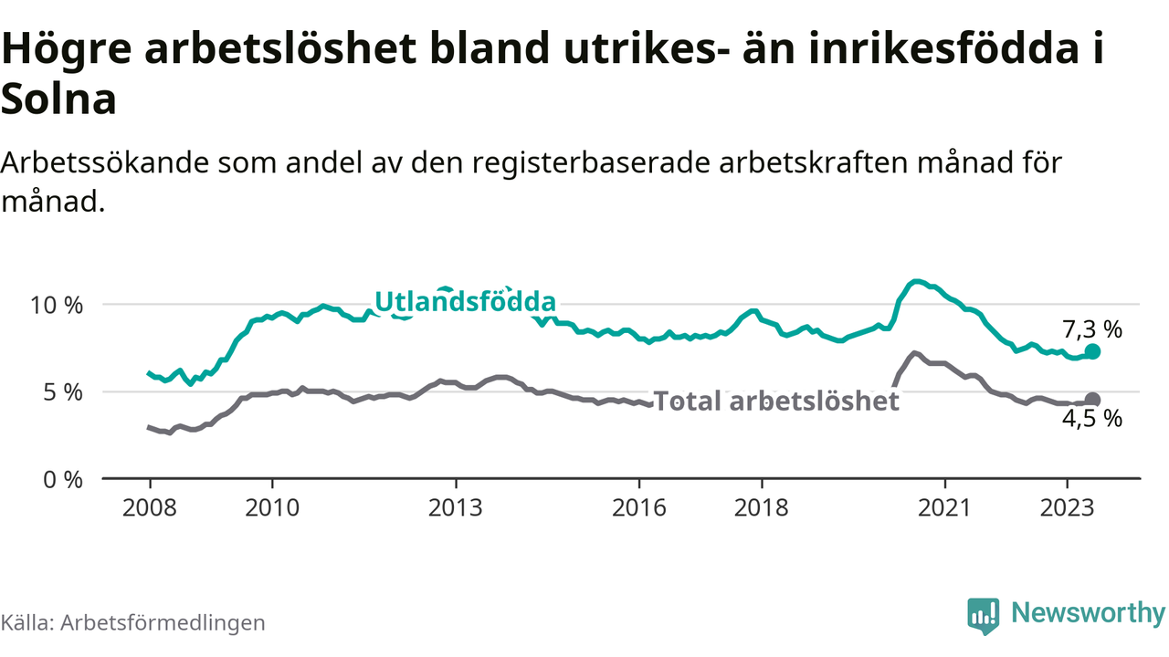 Läs mer om arbetslösheten bland utlandsfödda längre ner i den här texten.