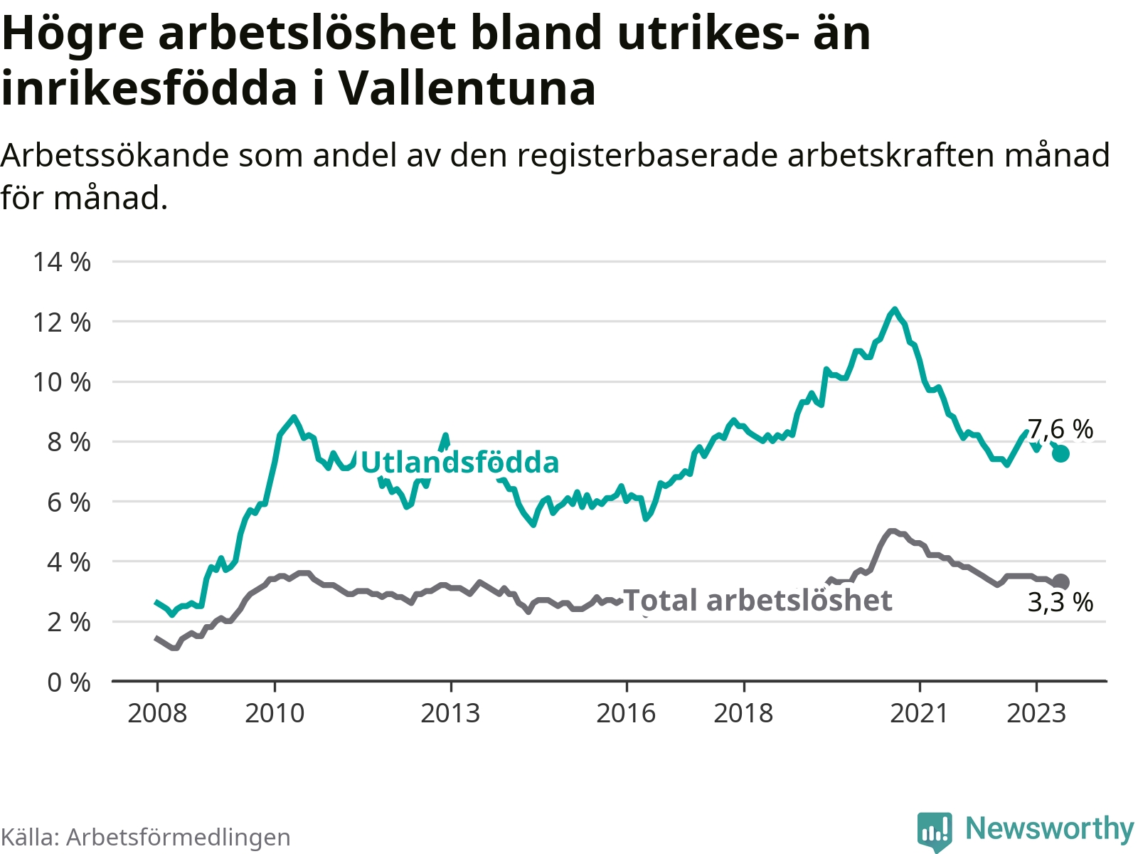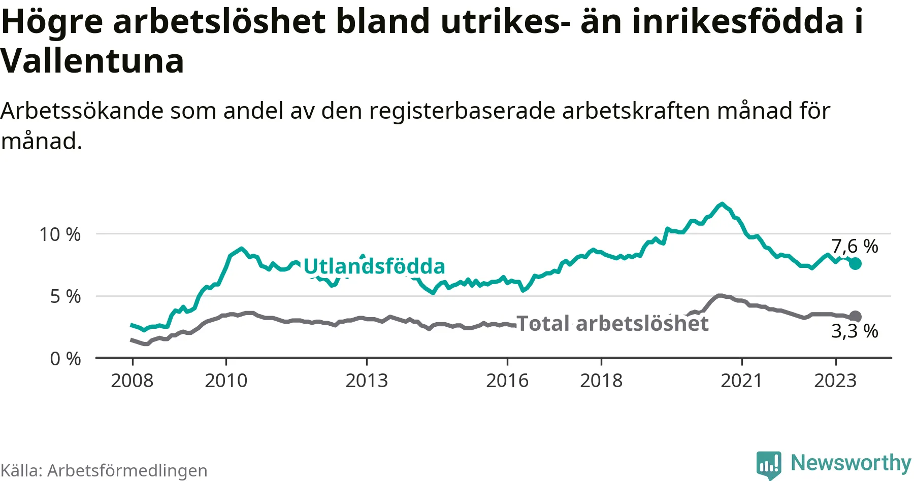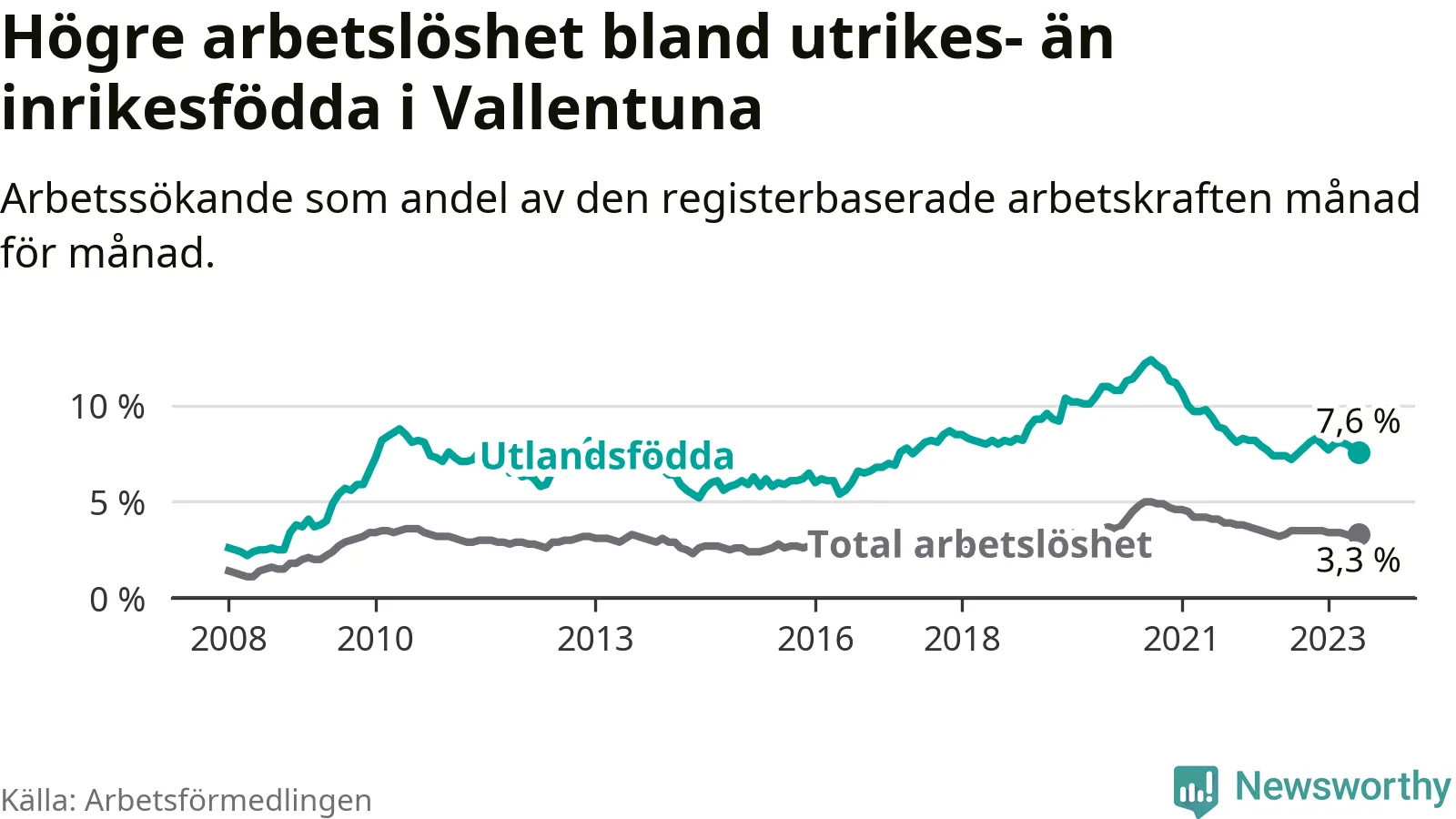 Läs mer om arbetslösheten bland utlandsfödda längre ner i den här texten.