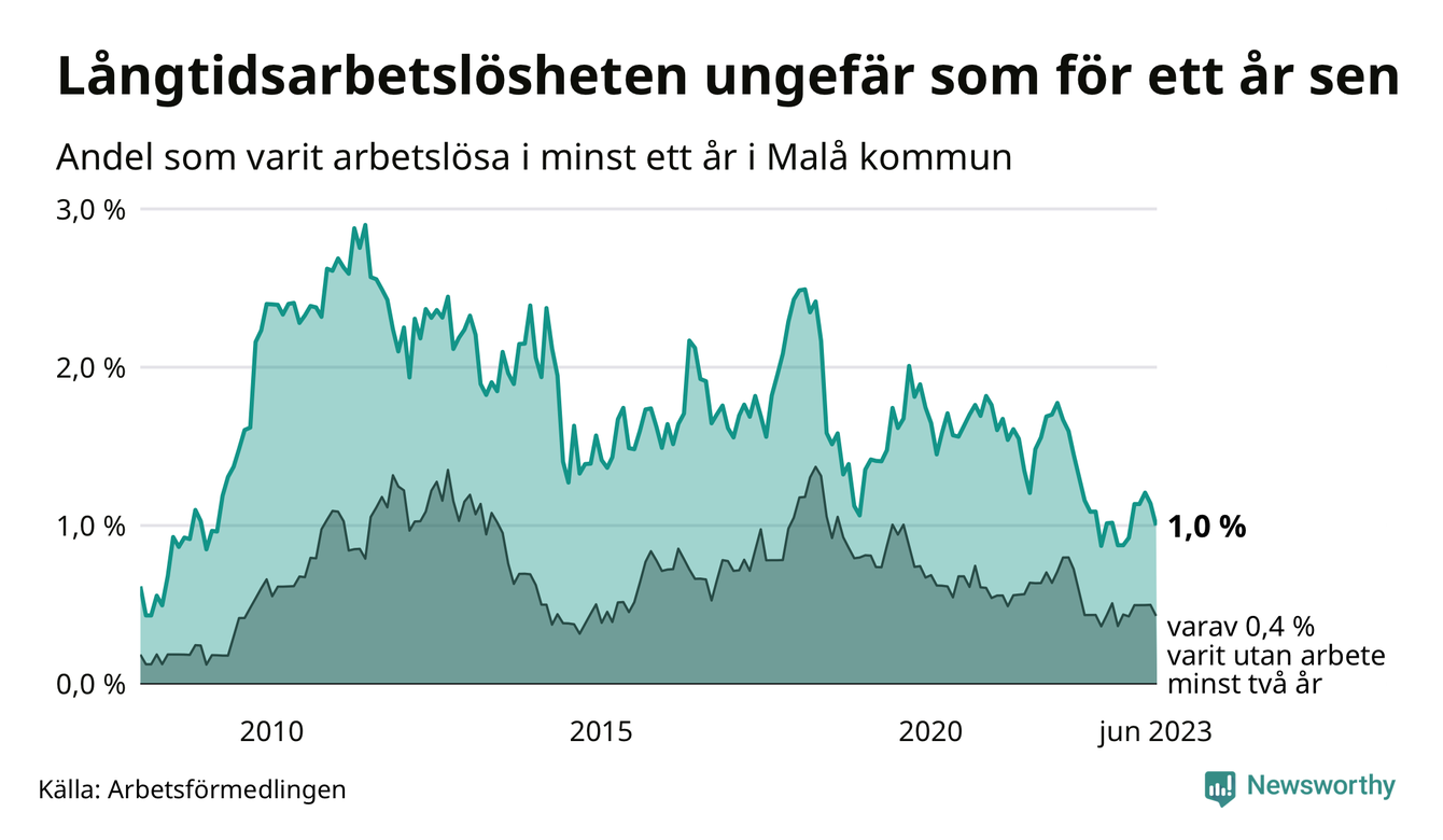 | Andel arbetslösa i minst ett år | 1,0 % | 1,4 % | 2,6 % |