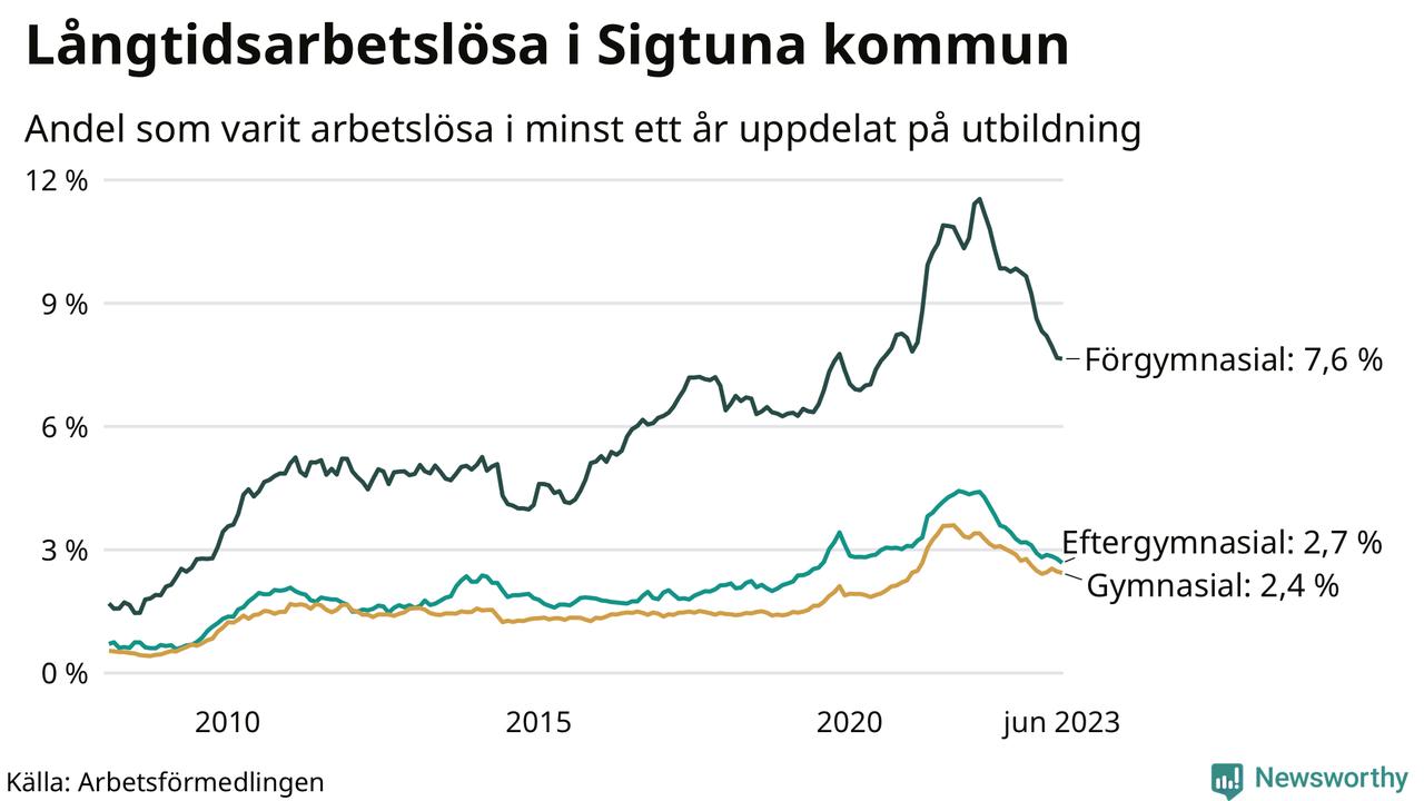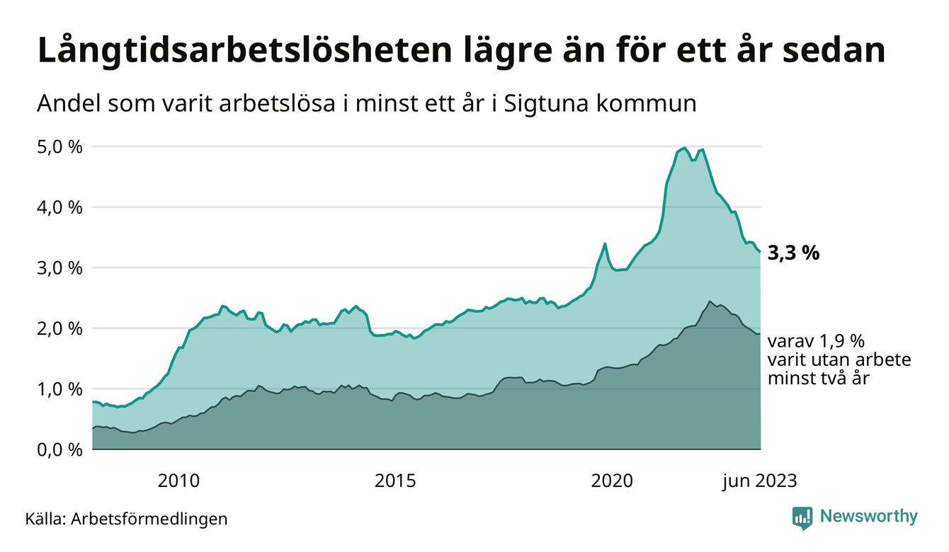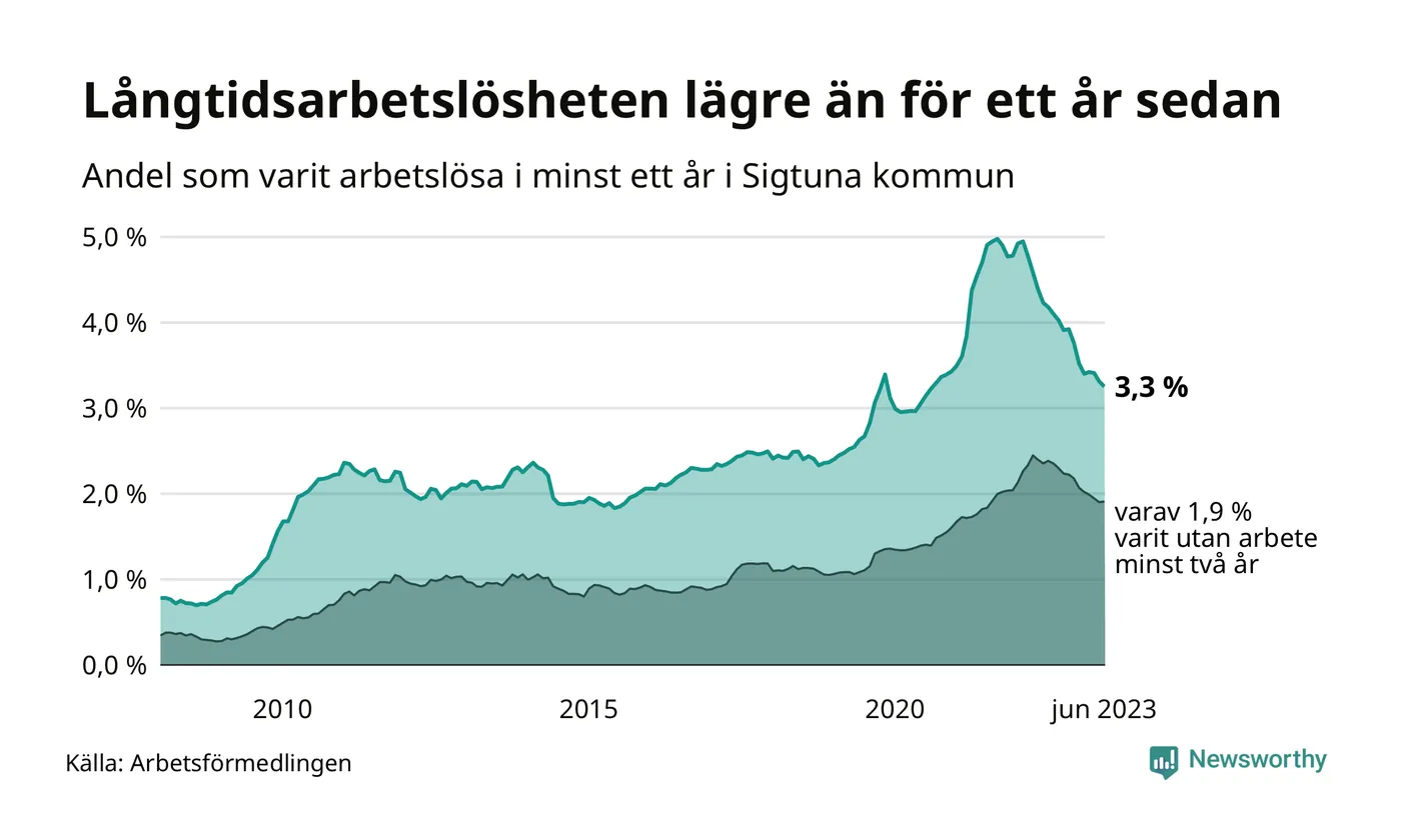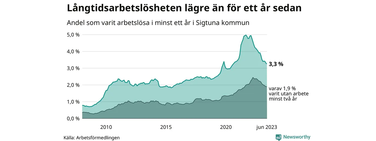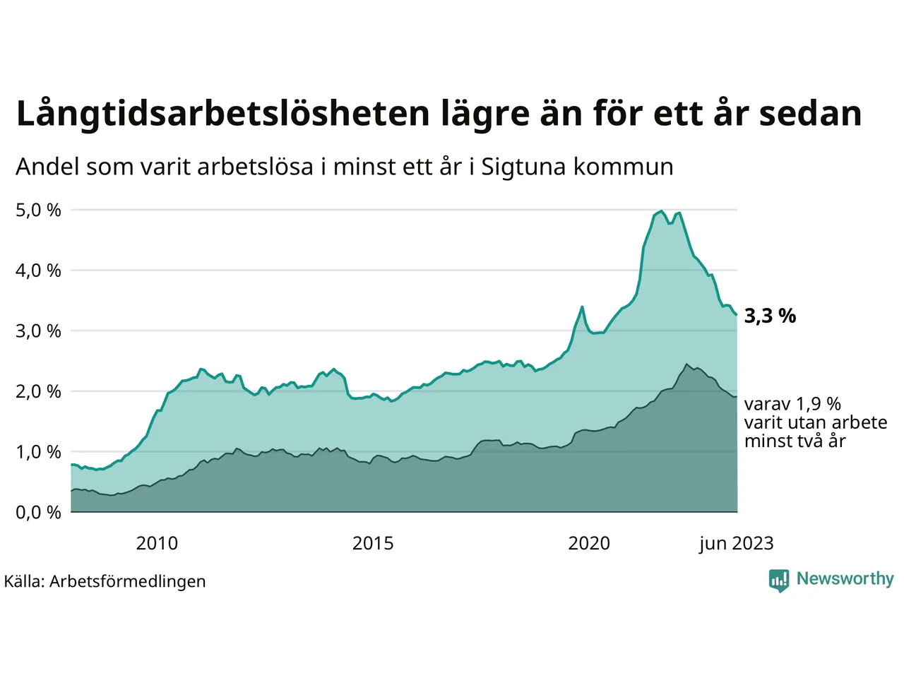 Inte sedan augusti 2020 har andelen långtidsarbetslösa varit så låg i Sigtuna. Det visar Arbetsförmedlingens senaste månadsstatistik.