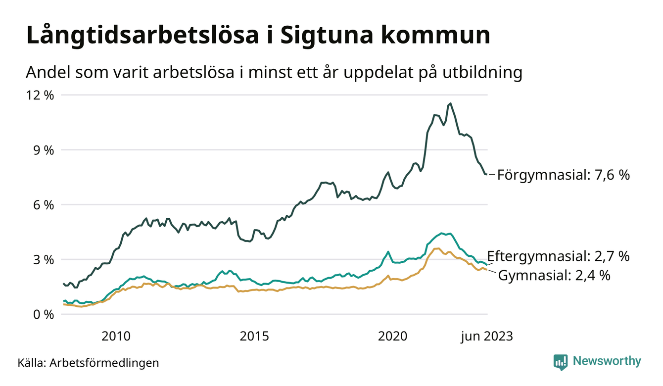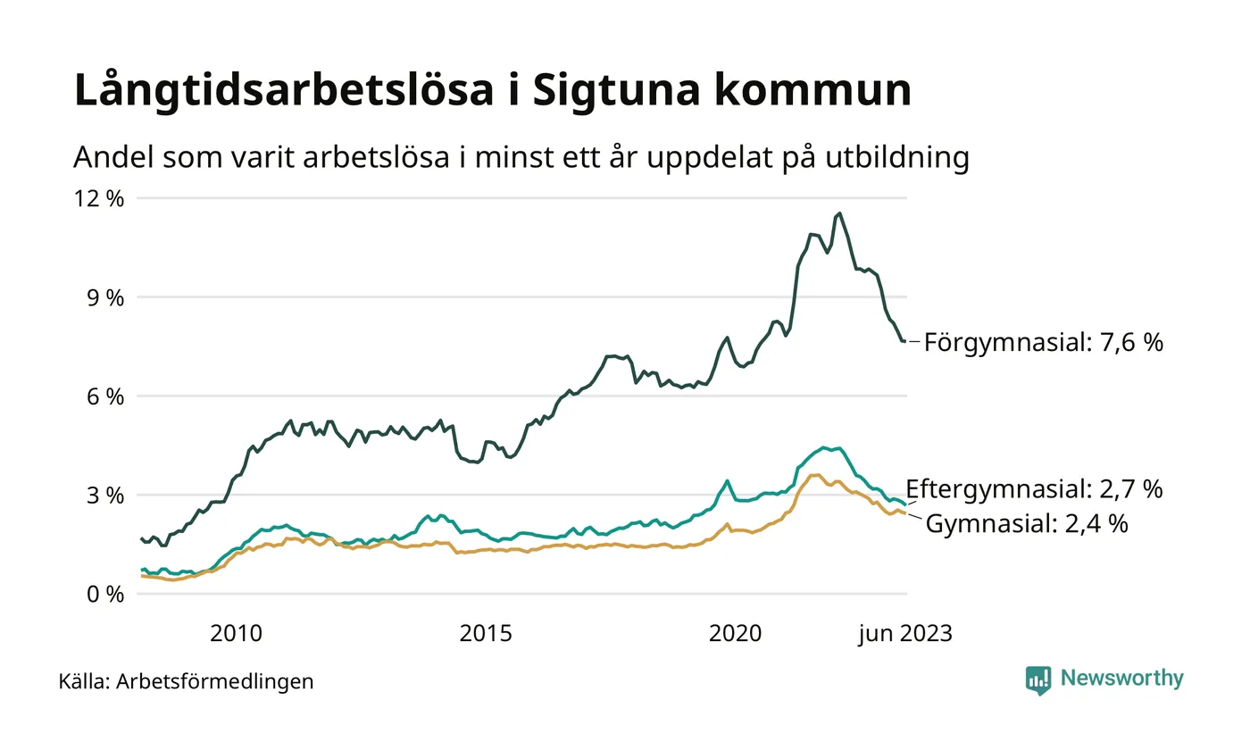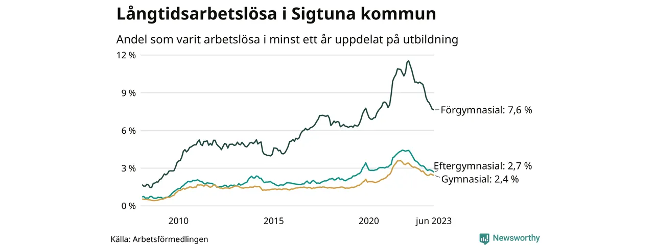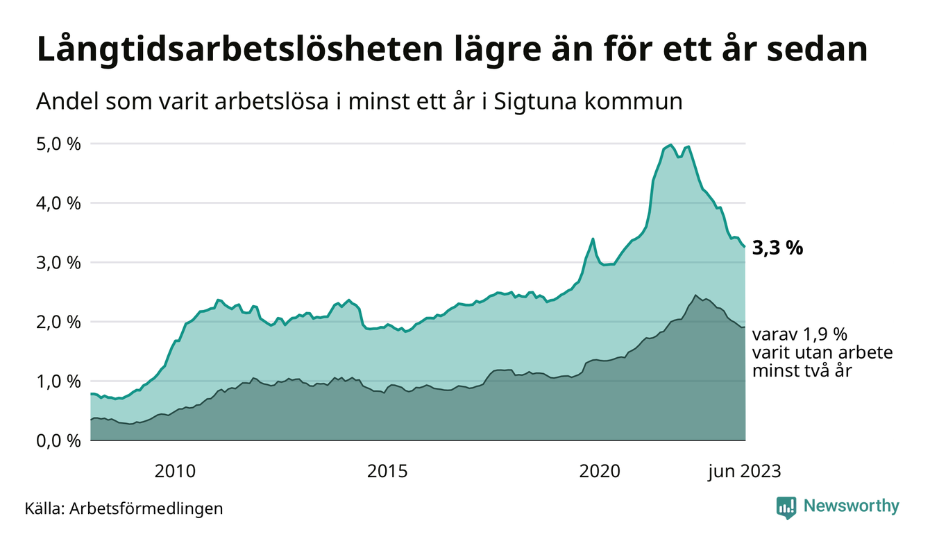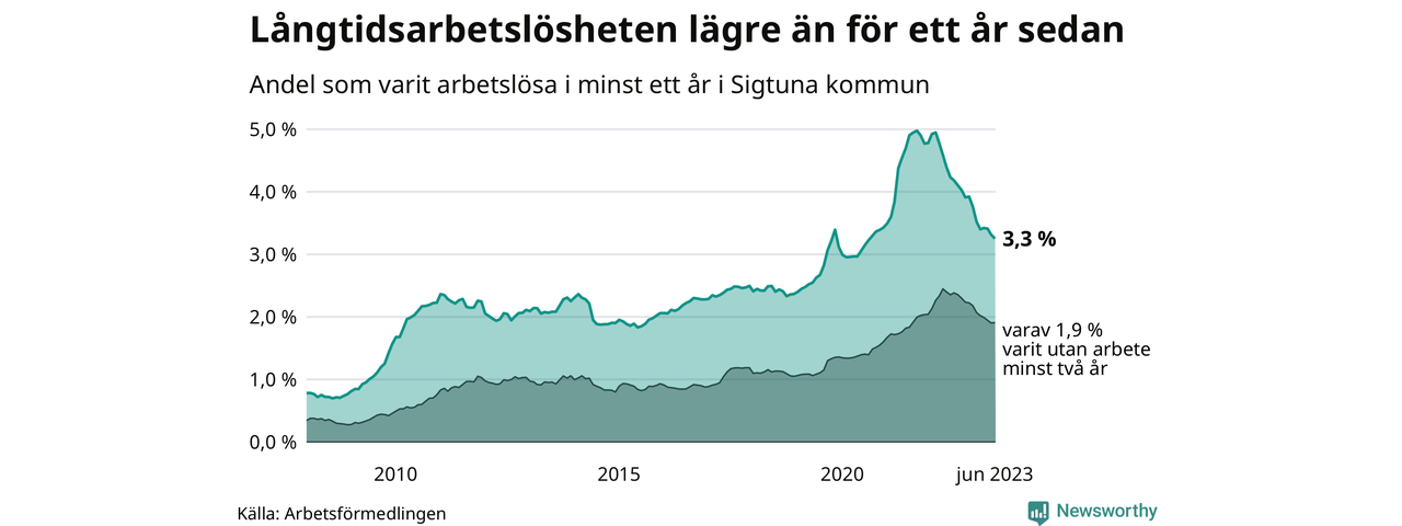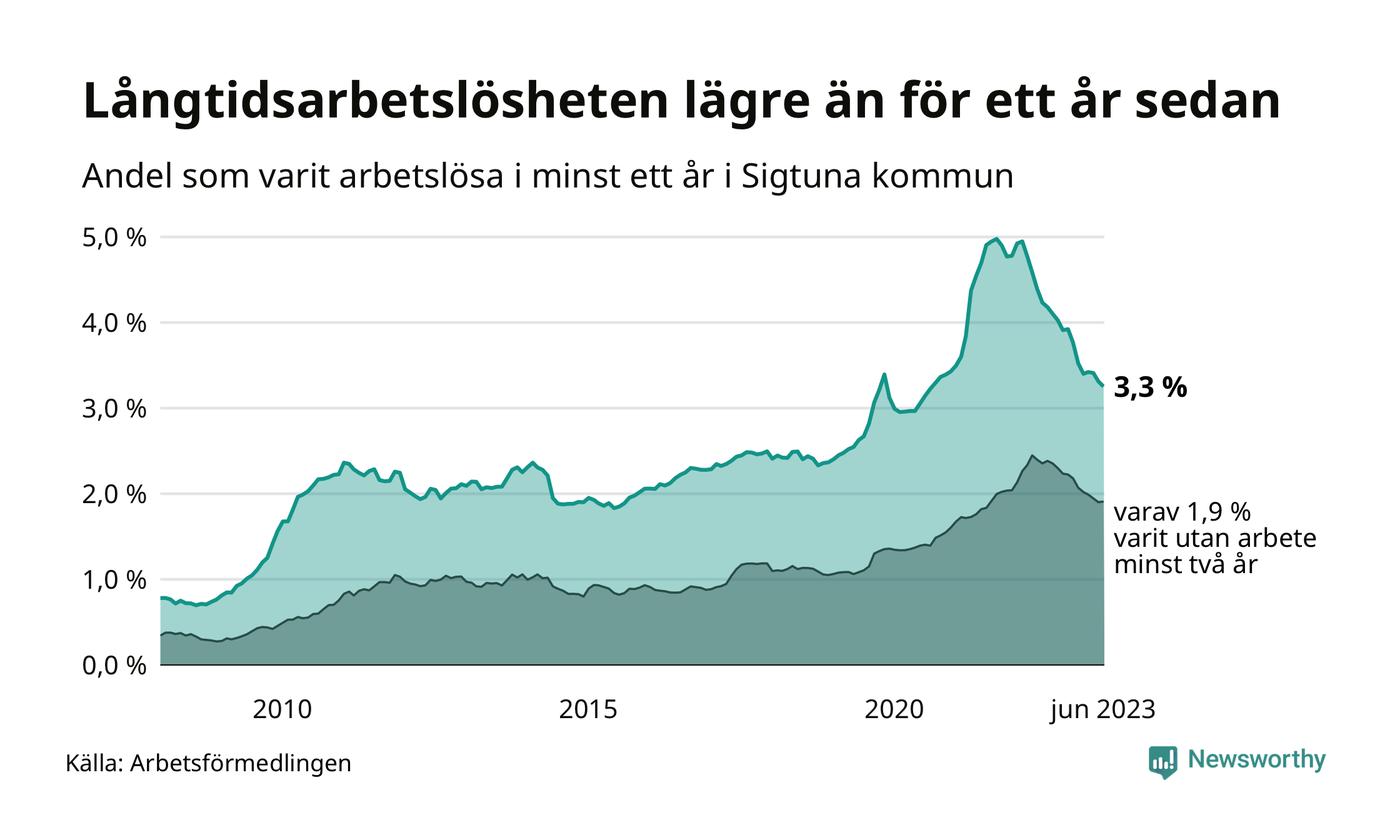 Inte sedan augusti 2020 har andelen långtidsarbetslösa varit så låg i Sigtuna. Det visar Arbetsförmedlingens senaste månadsstatistik.
