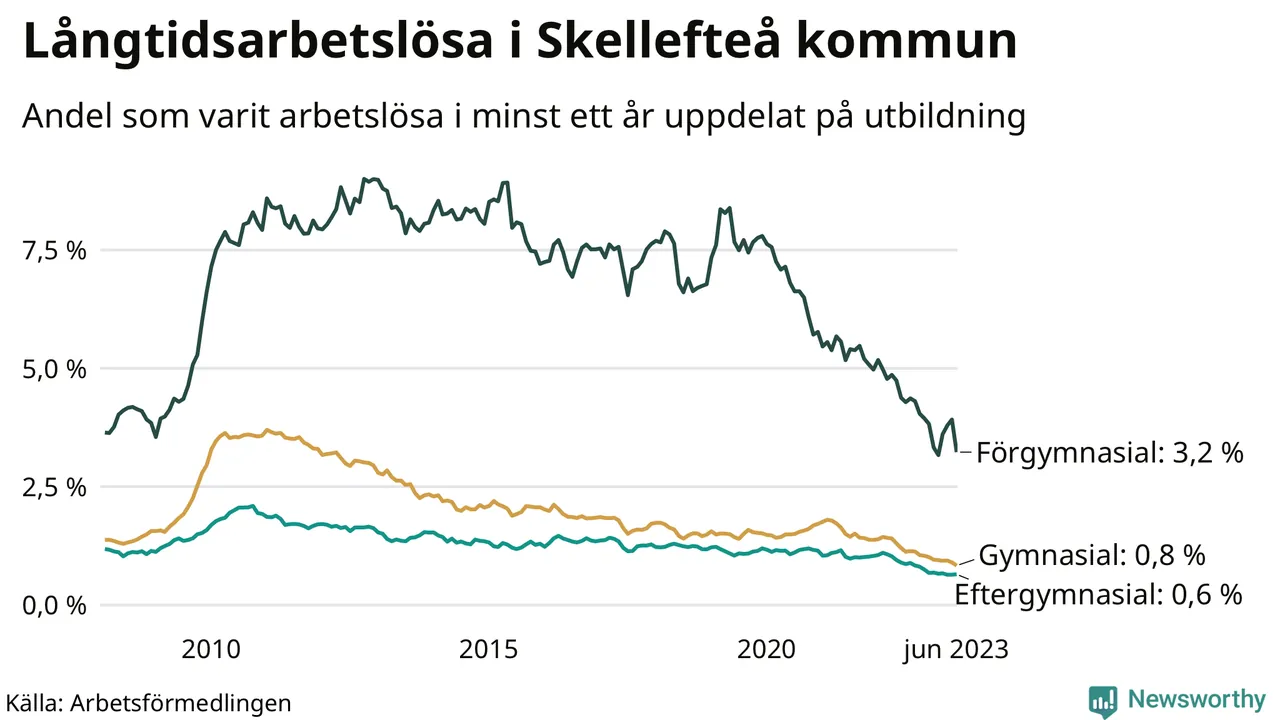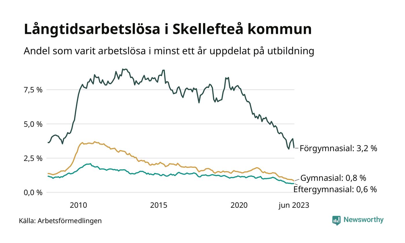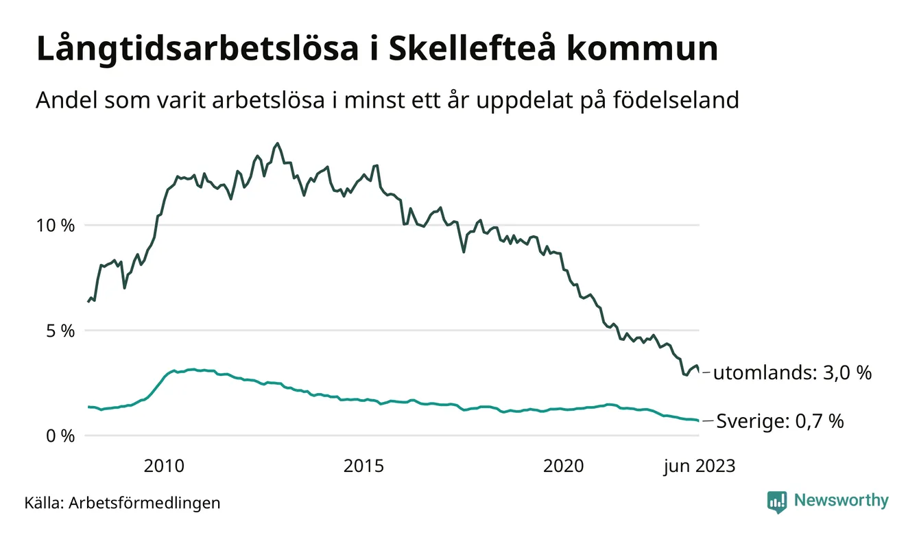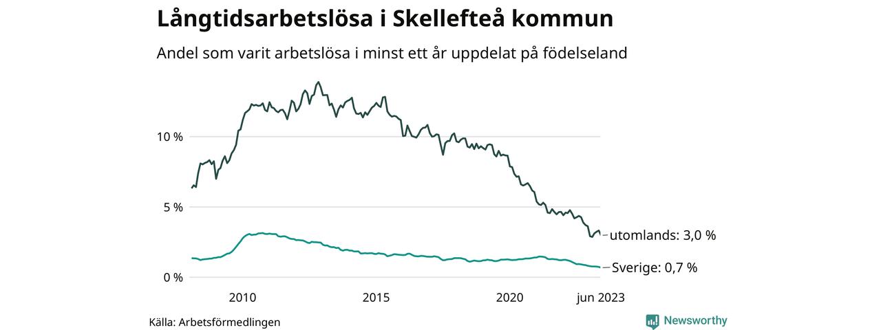 Långtidsarbetslöshet i Skellefteå i juni 2023