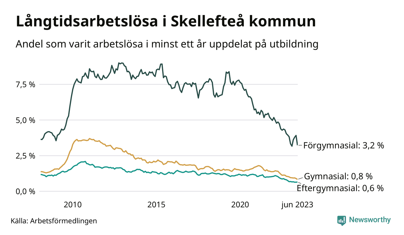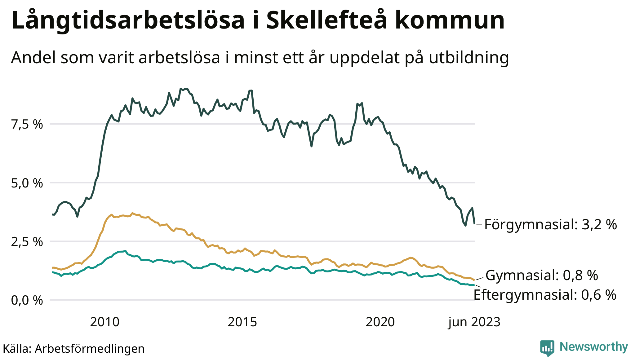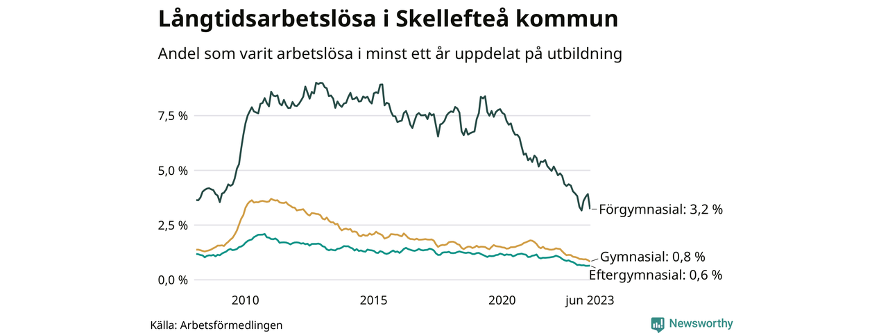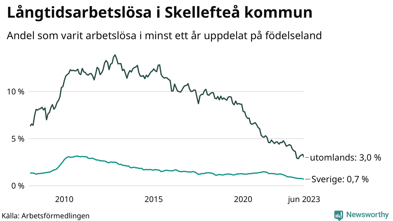 Långtidsarbetslöshet i Skellefteå i juni 2023