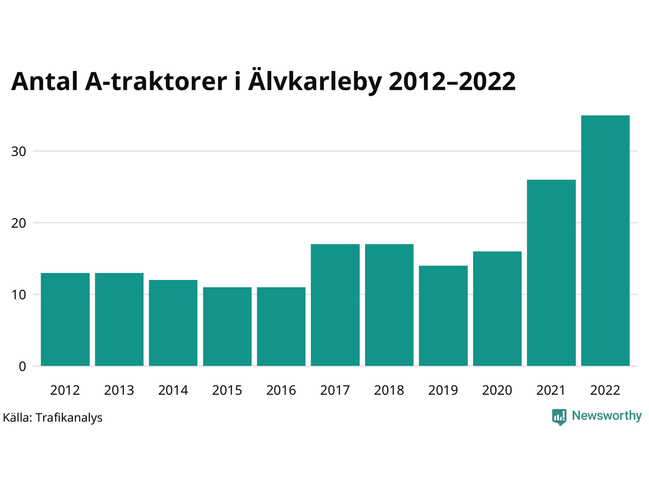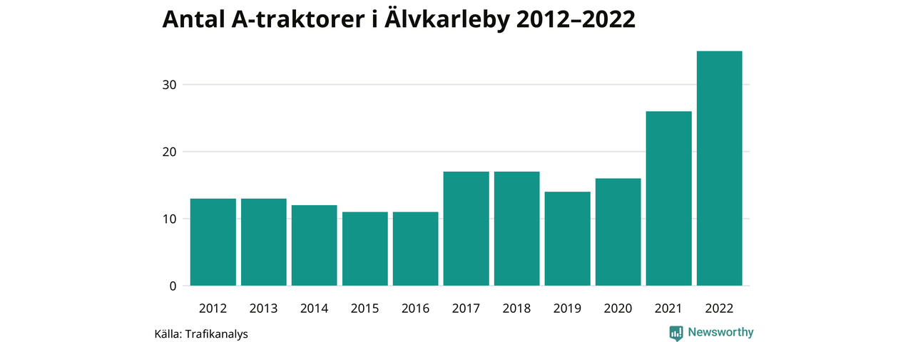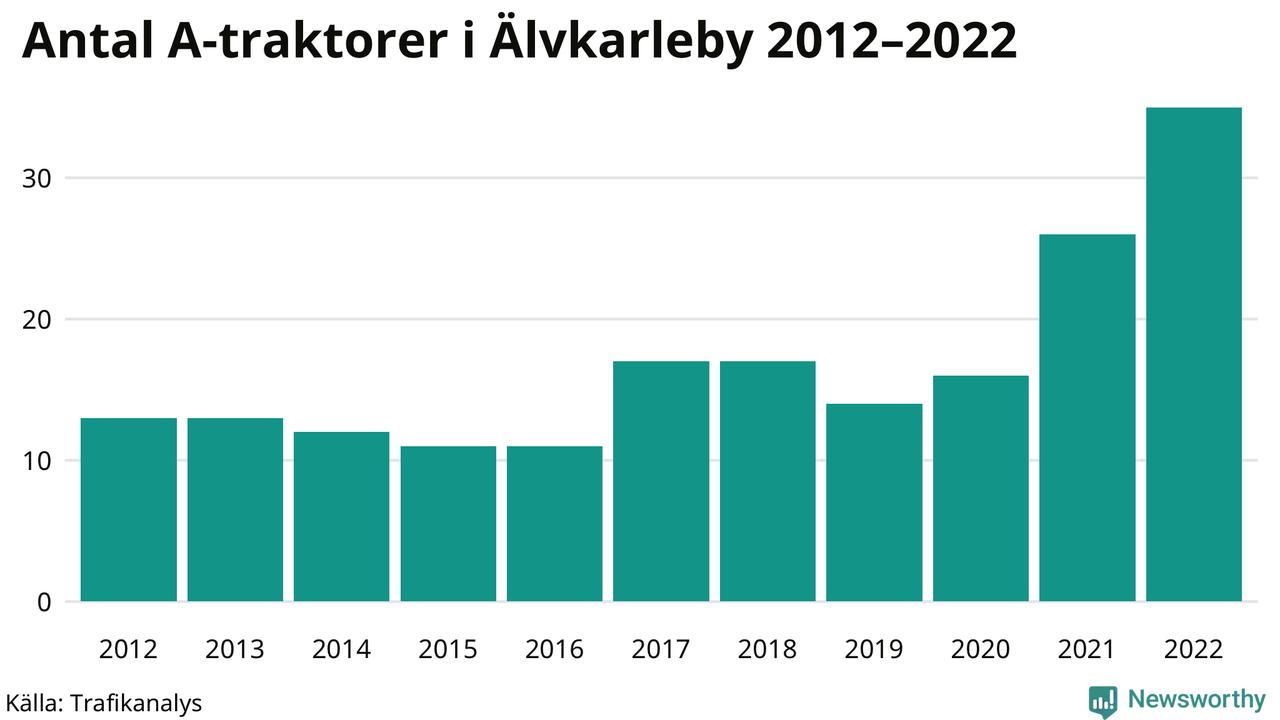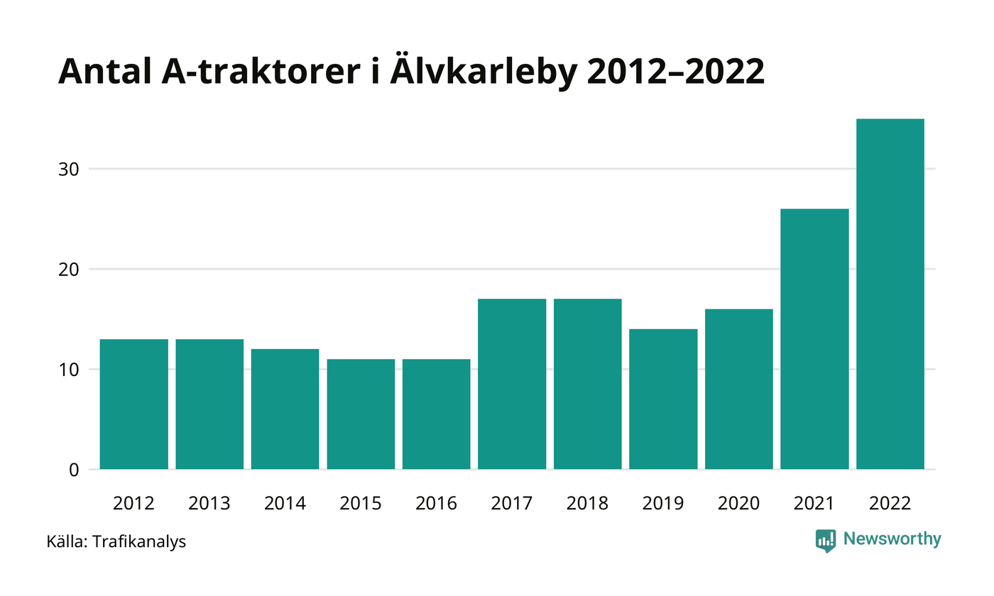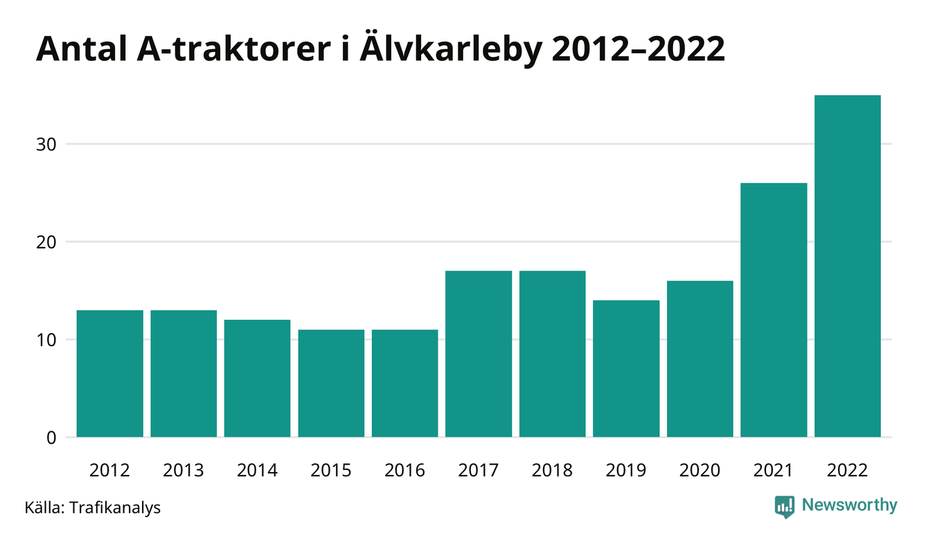 Det har aldrig funnits så många A-traktorer som nu i Älvkarleby kommun. I slutet av 2022 fanns 35 A-traktorer registrerade i kommunen, nästan en tredubbling jämfört med 2012. Därmed följer kommunen trenden i både Uppsala län och i landet som helhet. Under motsvarande period har antalet A-traktorer tredubblats i Uppsala län och mer än tredubblats i riket som helhet.