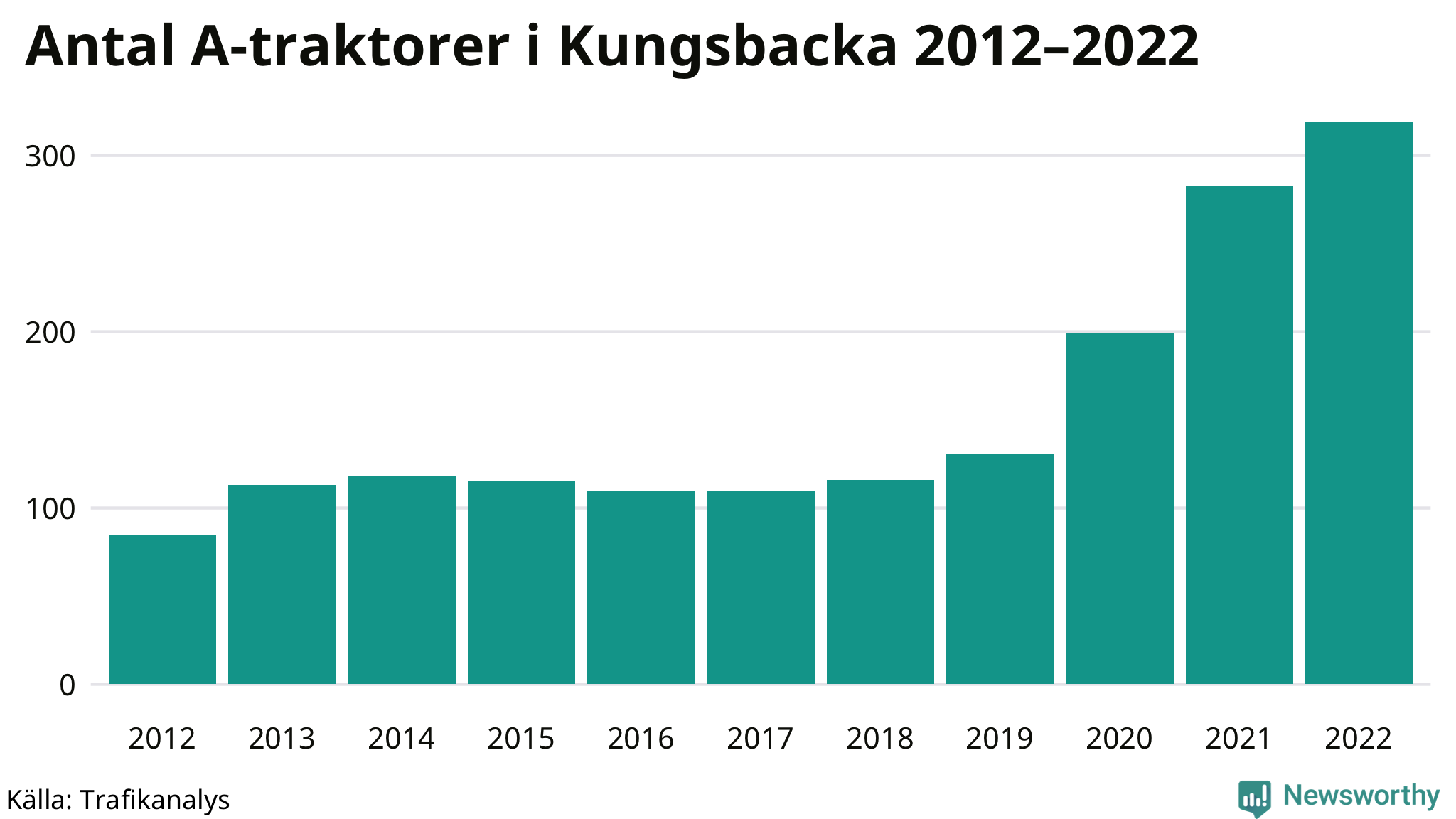 Antal A-traktorer i Kungsbacka 2012-2022