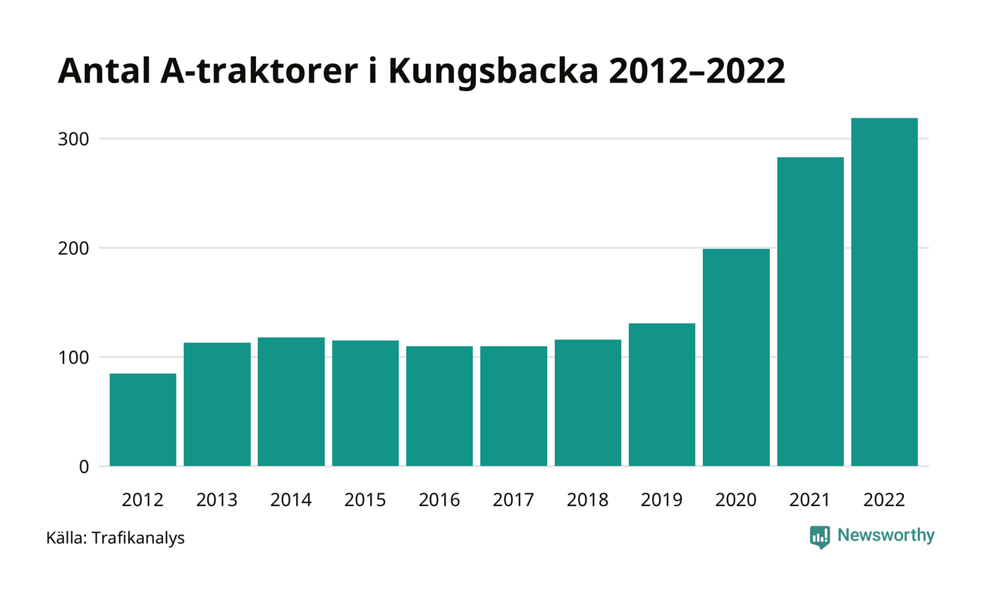 Antalet A-traktorer har tredubblats i Sverige det senaste decenniet. Och ökningen i Kungsbacka kommun är den största i länet.