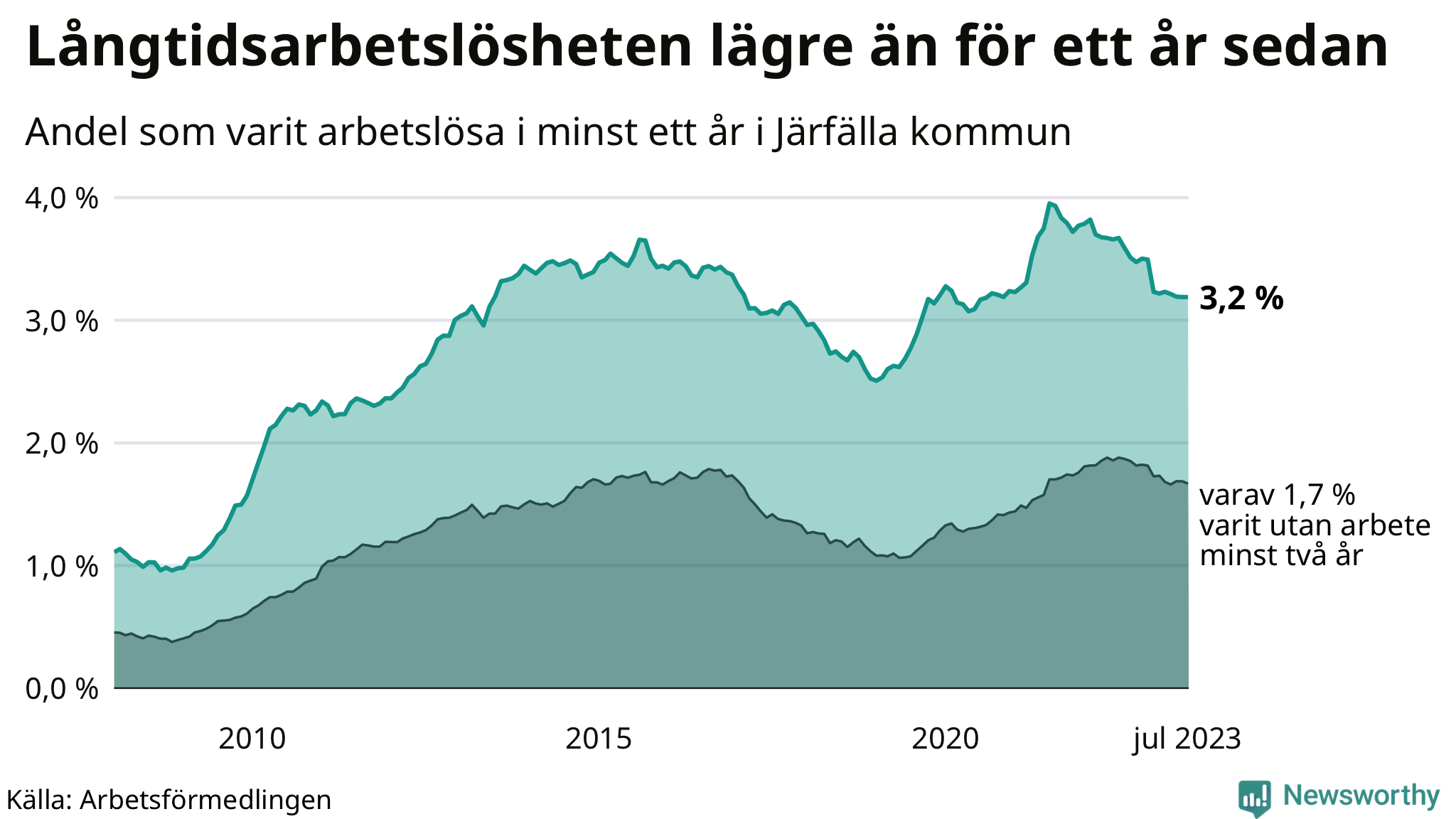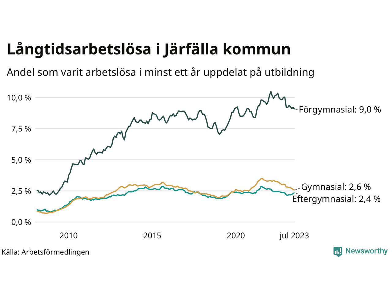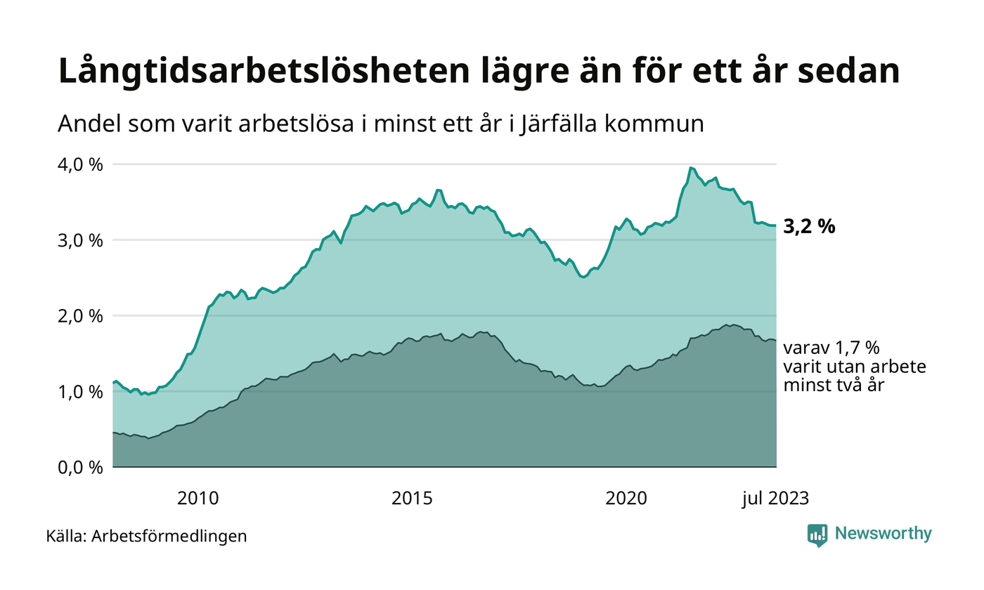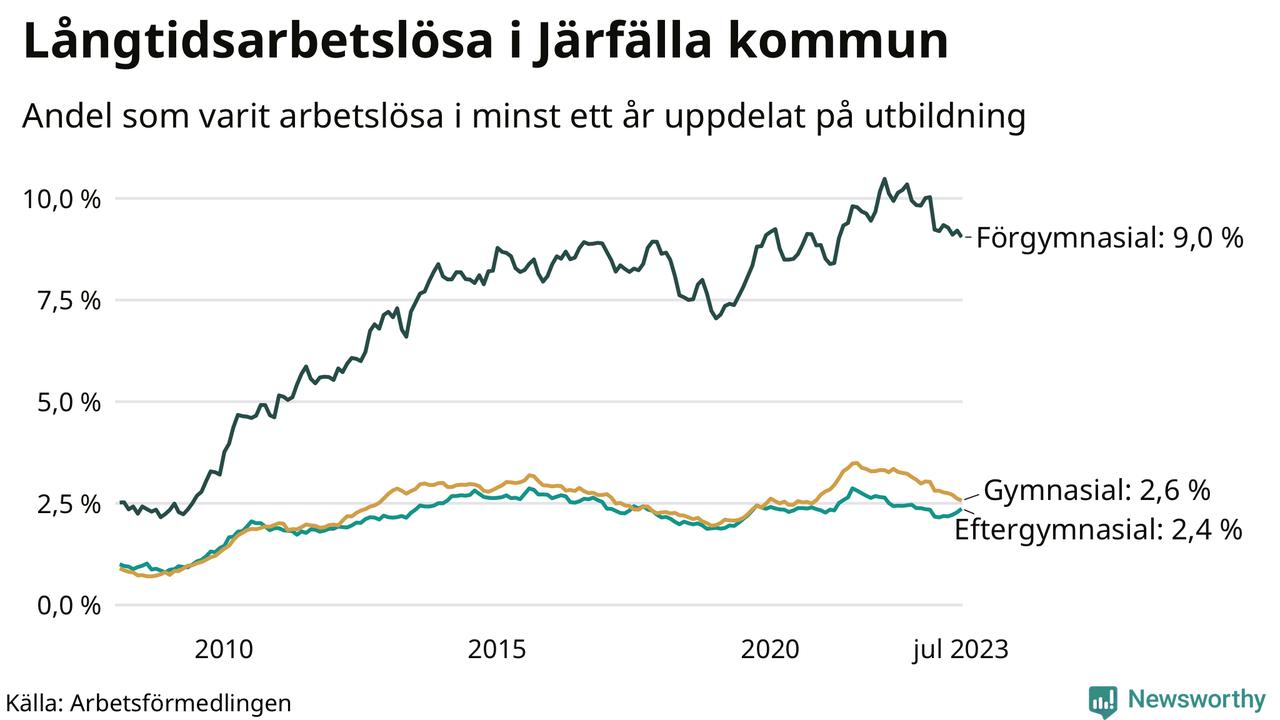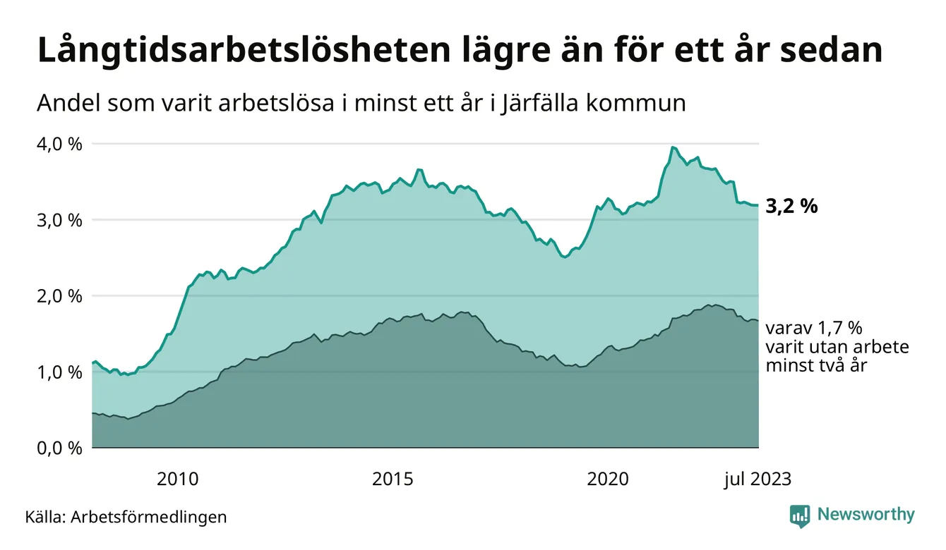 Långtidsarbetslöshet i Järfälla i juli 2023