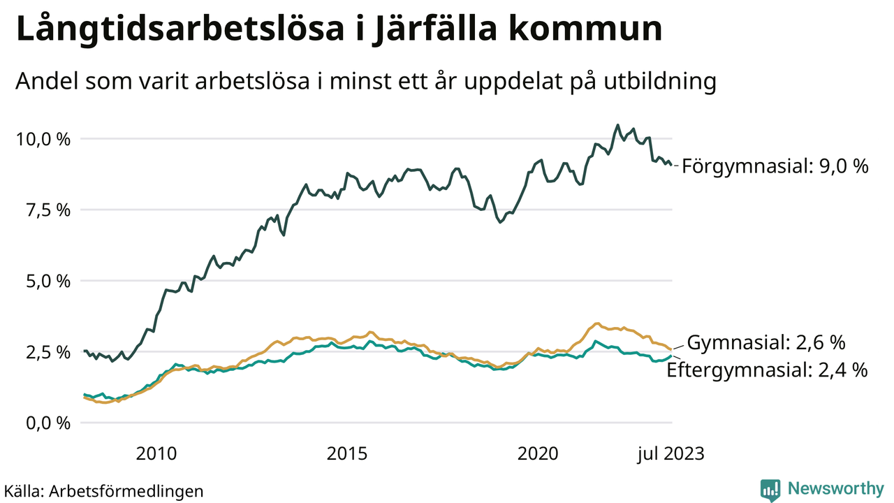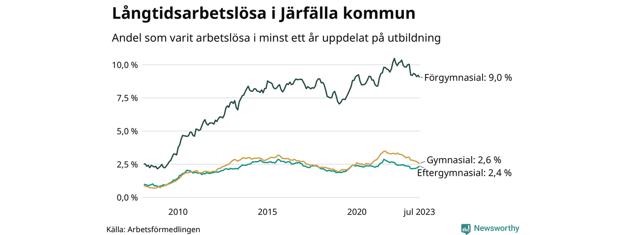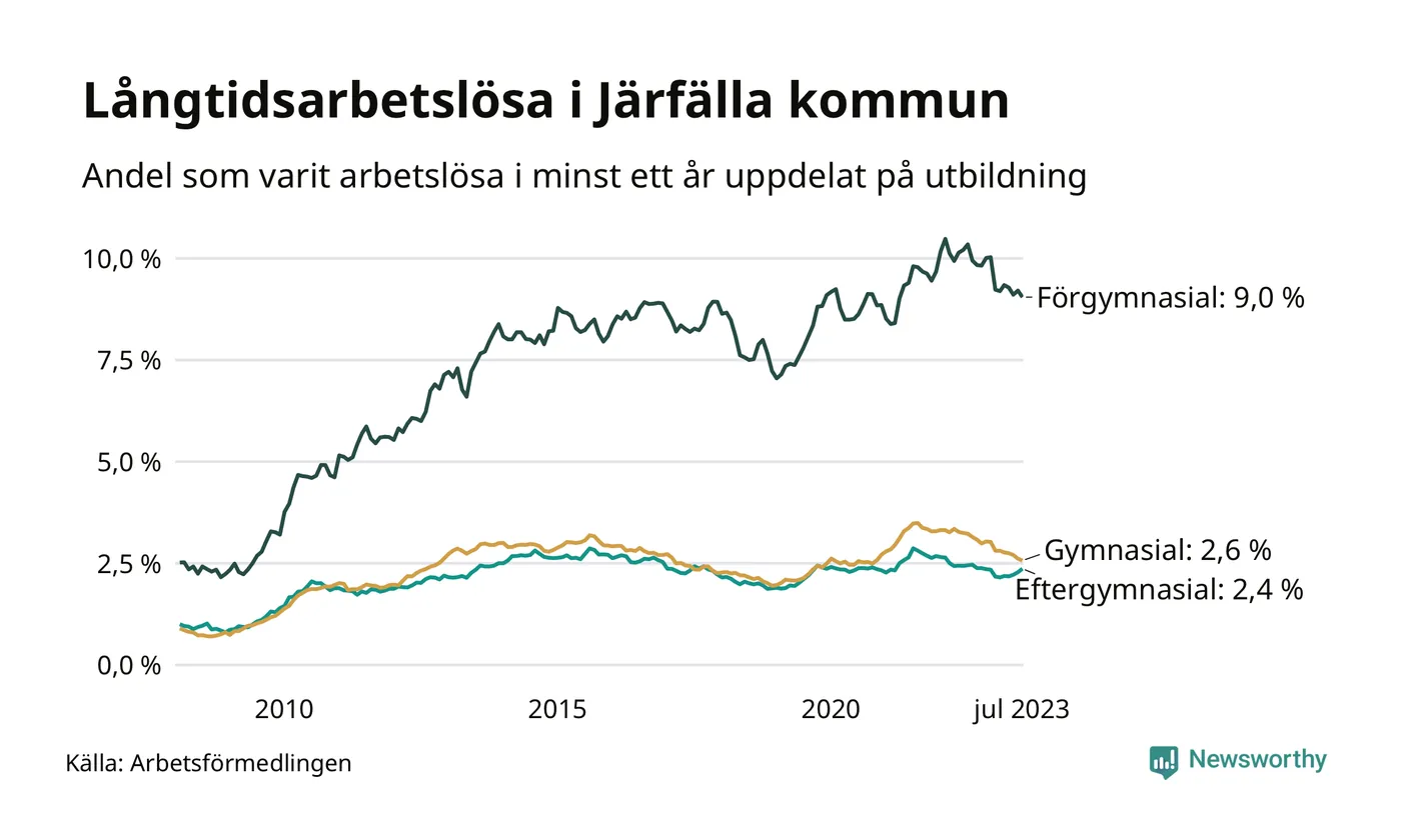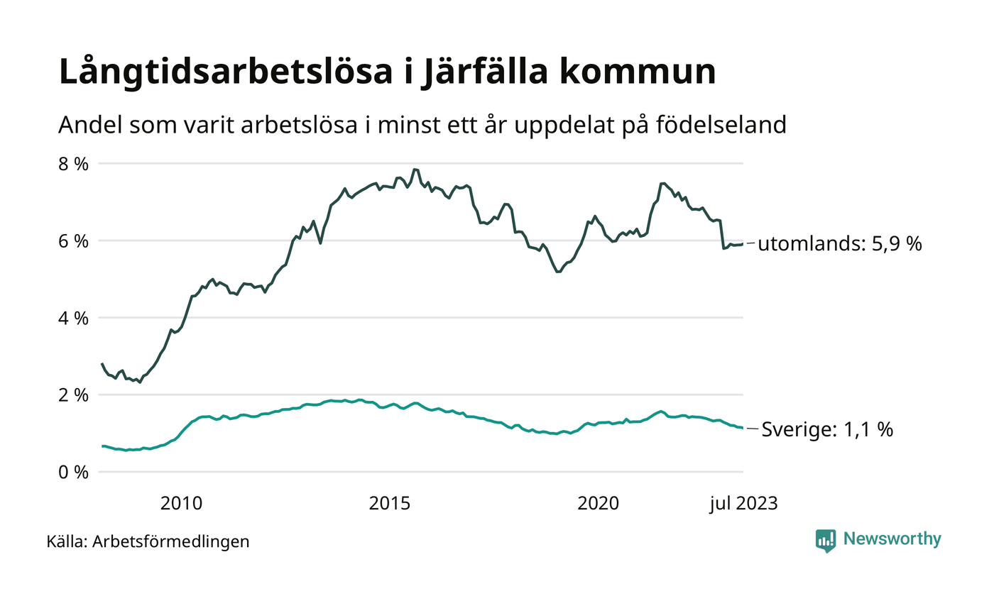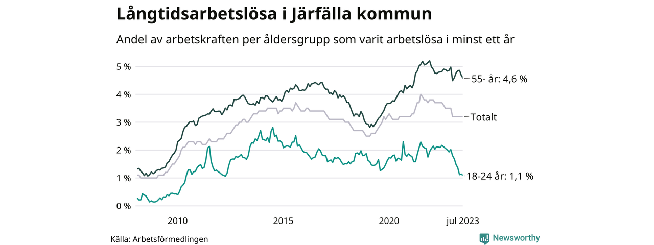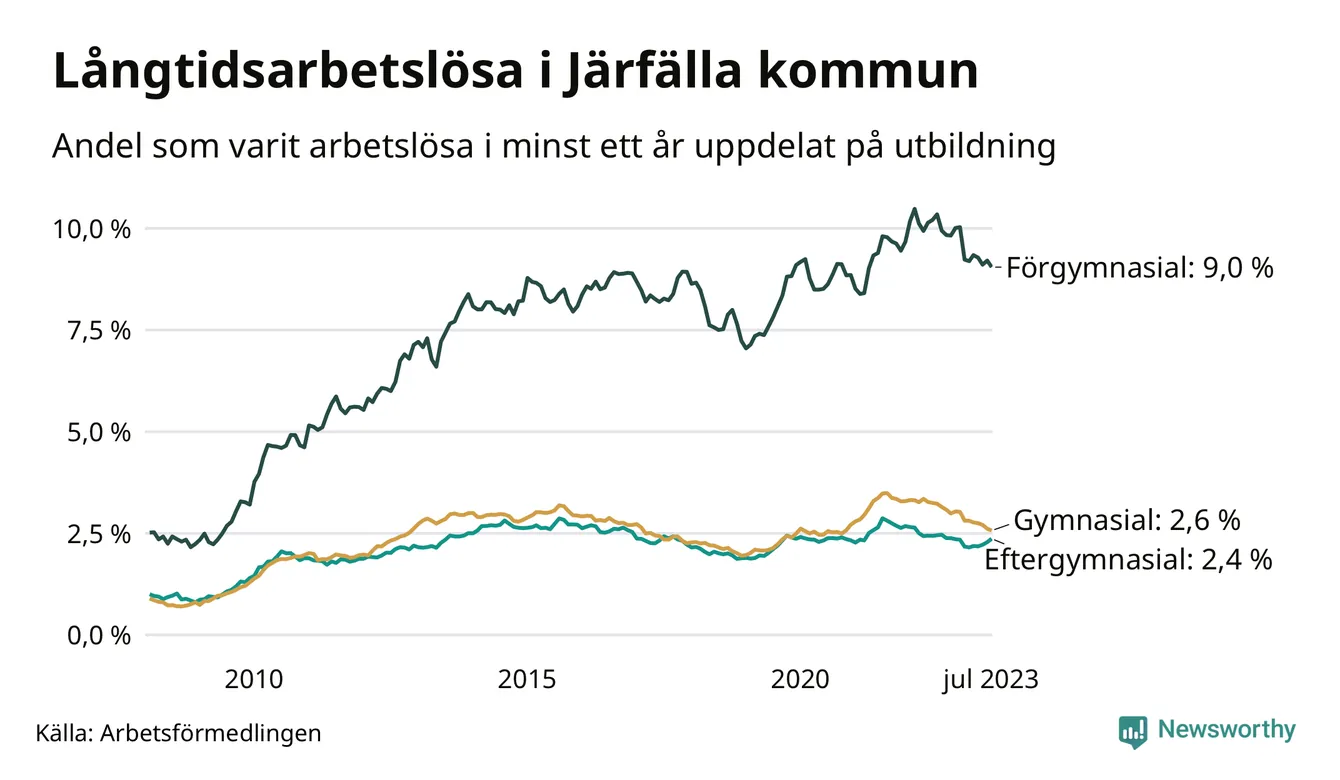 Långtidsarbetslöshet i Järfälla i juli 2023