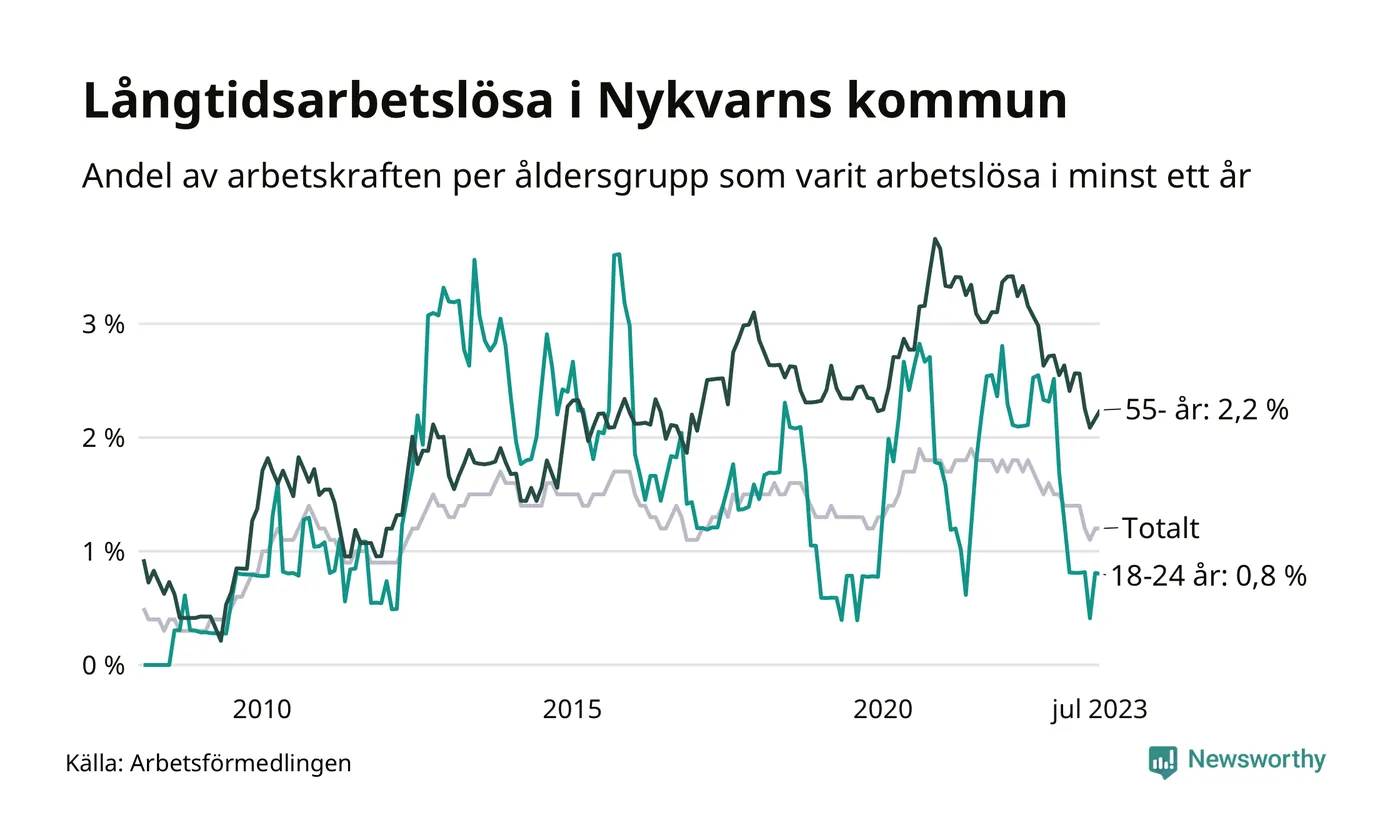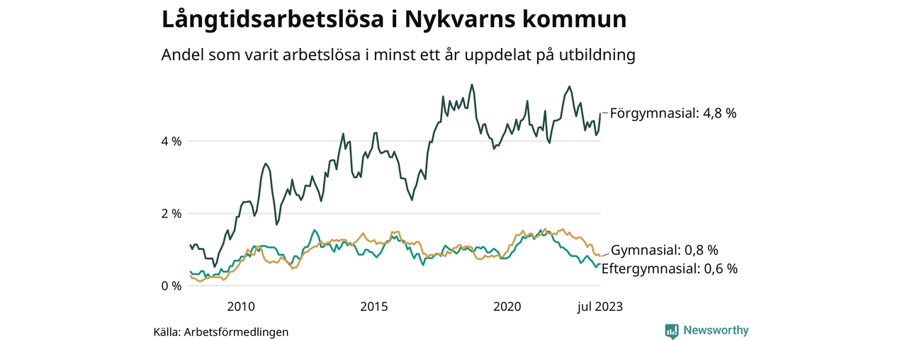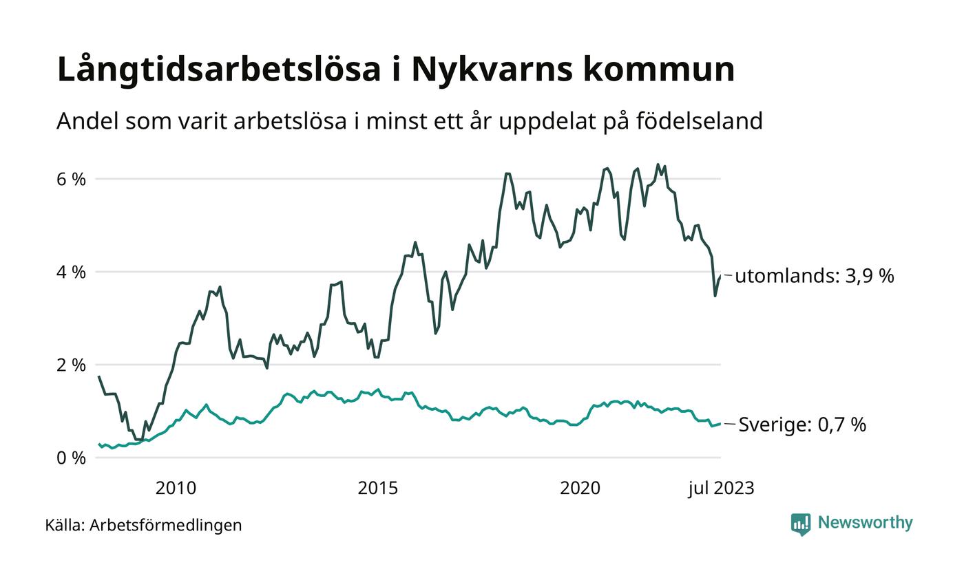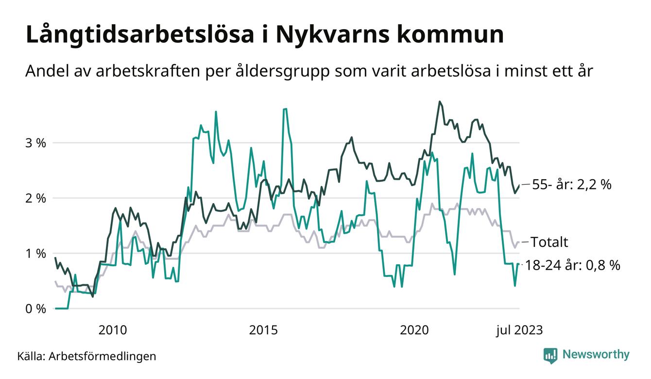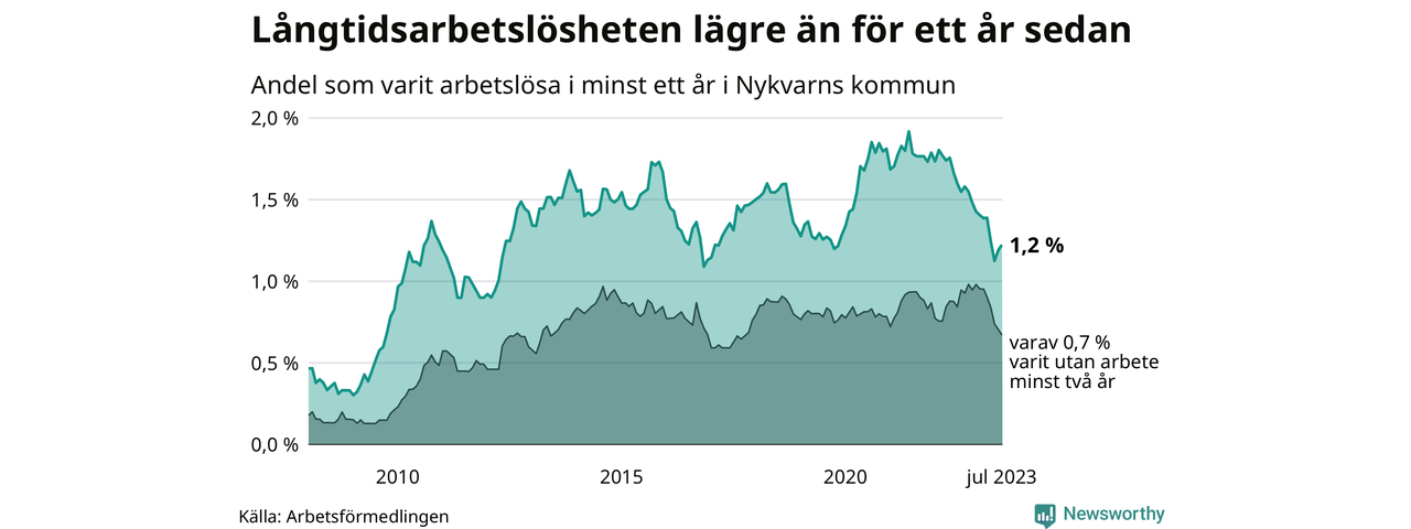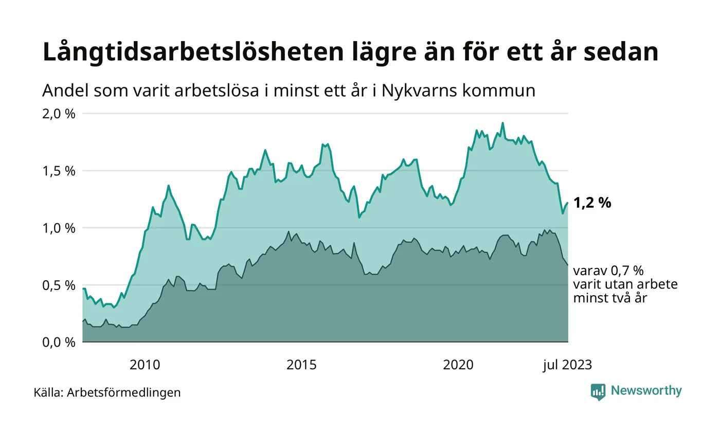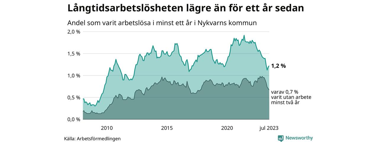 Långtidsarbetslöshet i Nykvarn i juli 2023