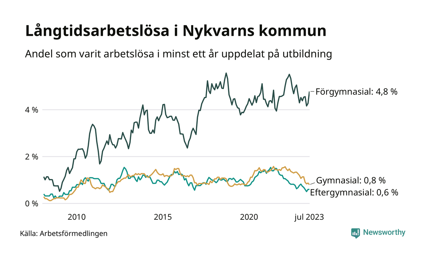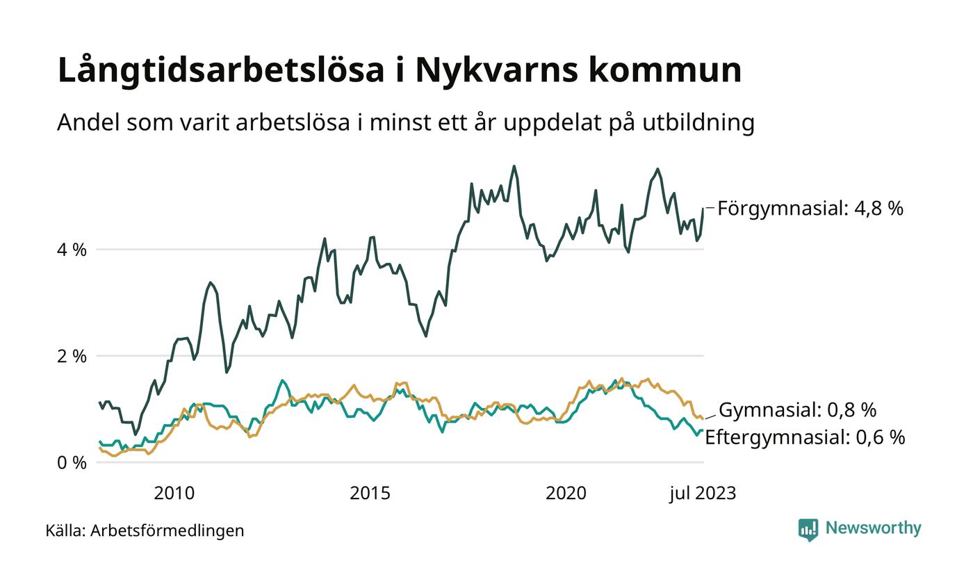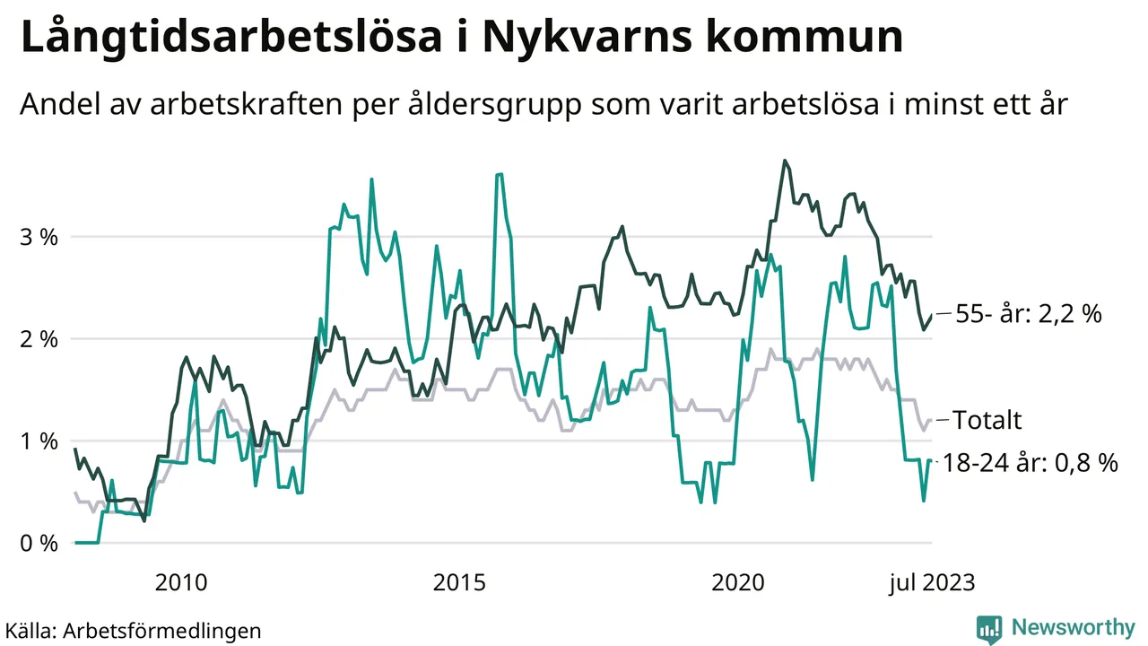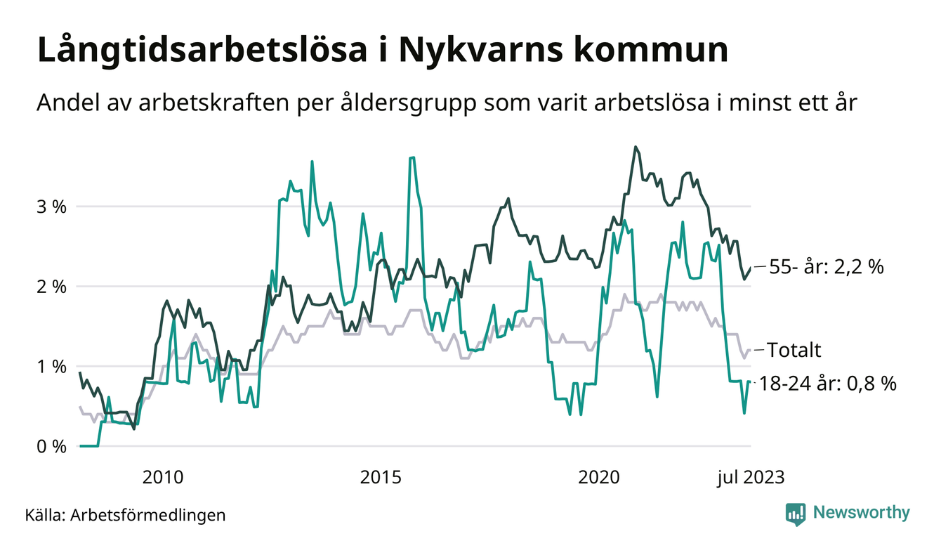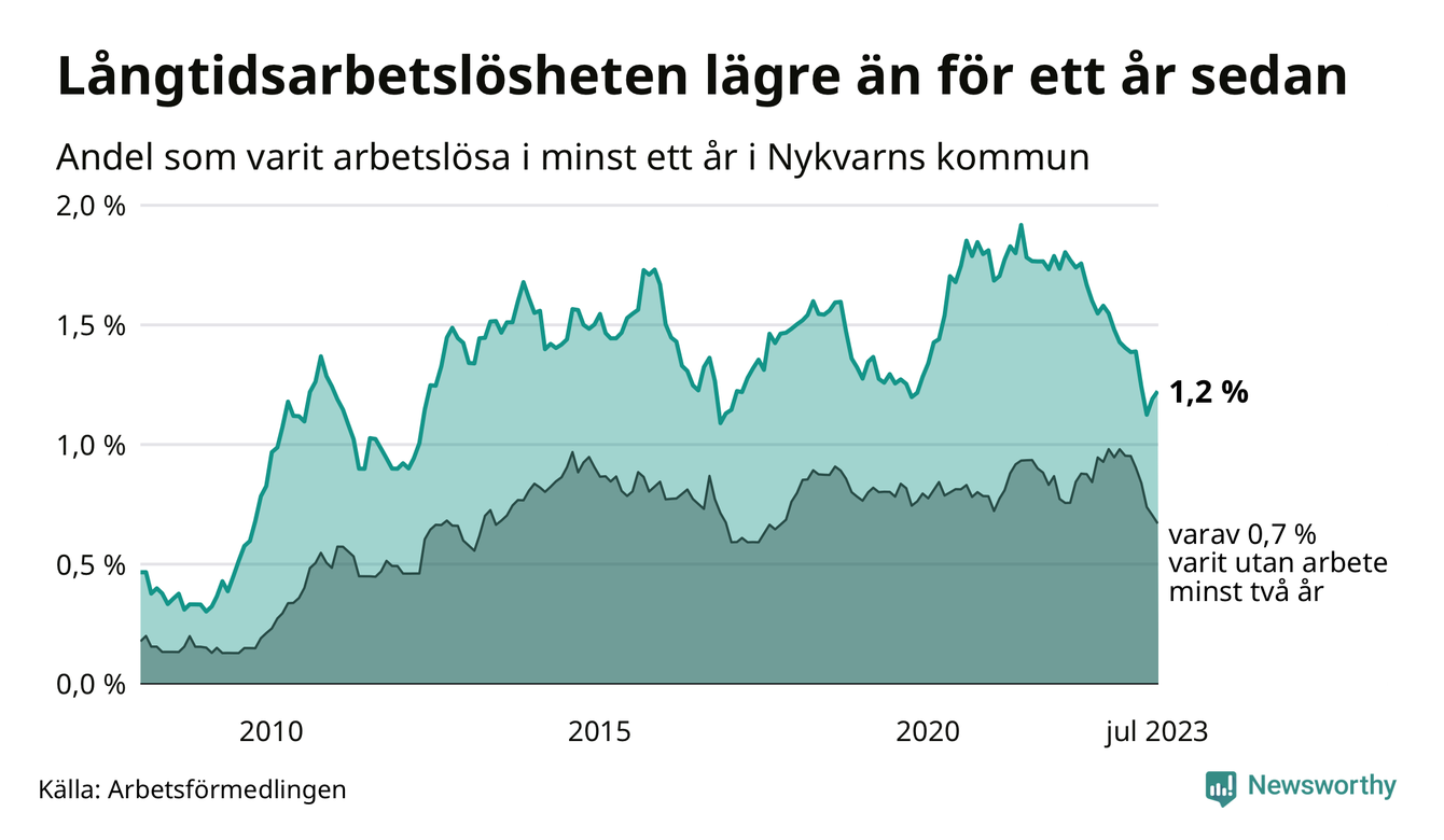 Långtidsarbetslöshet i Nykvarn i juli 2023