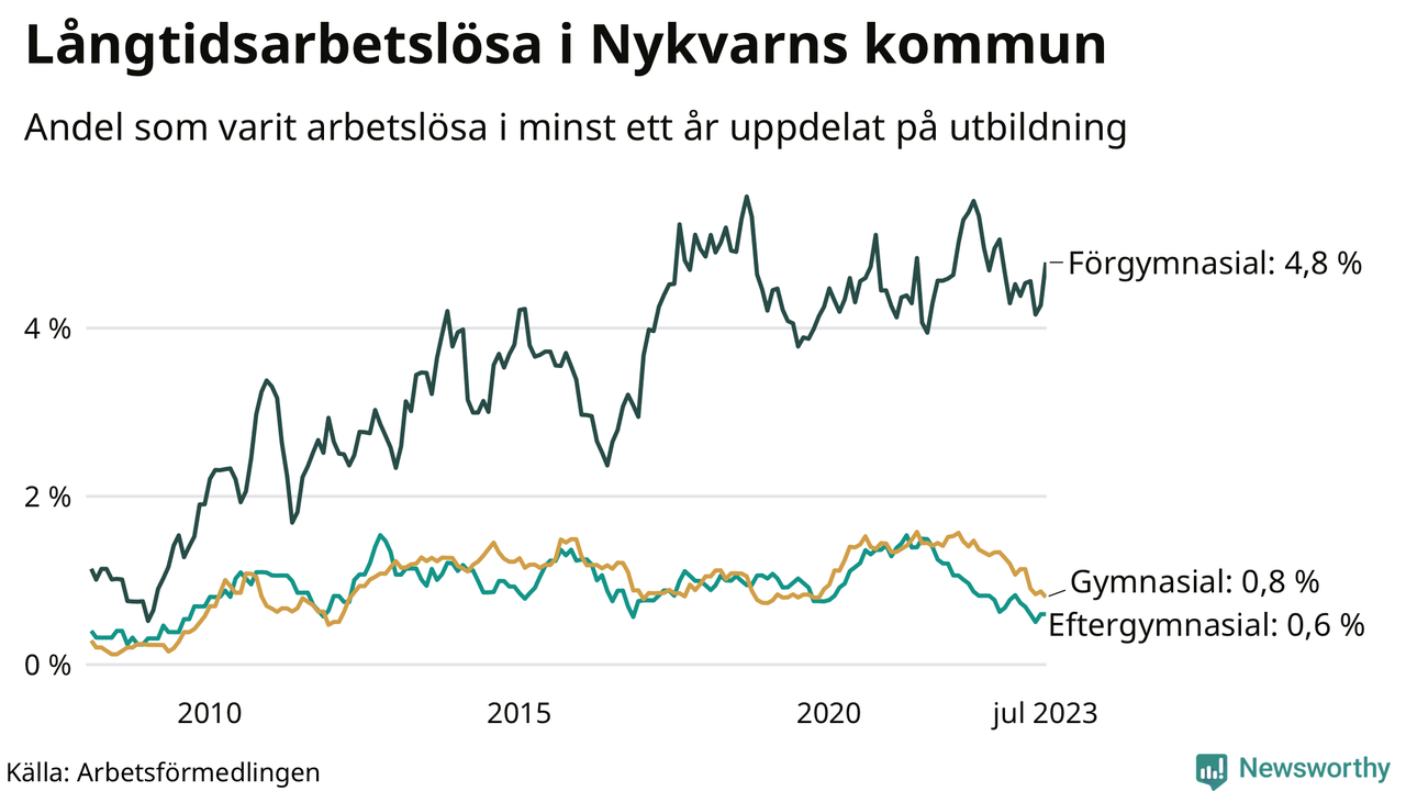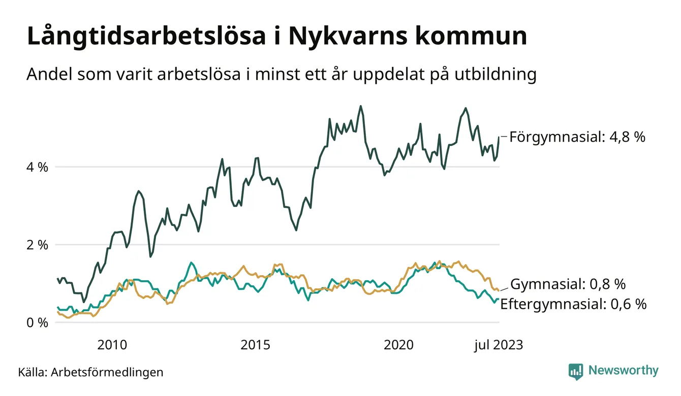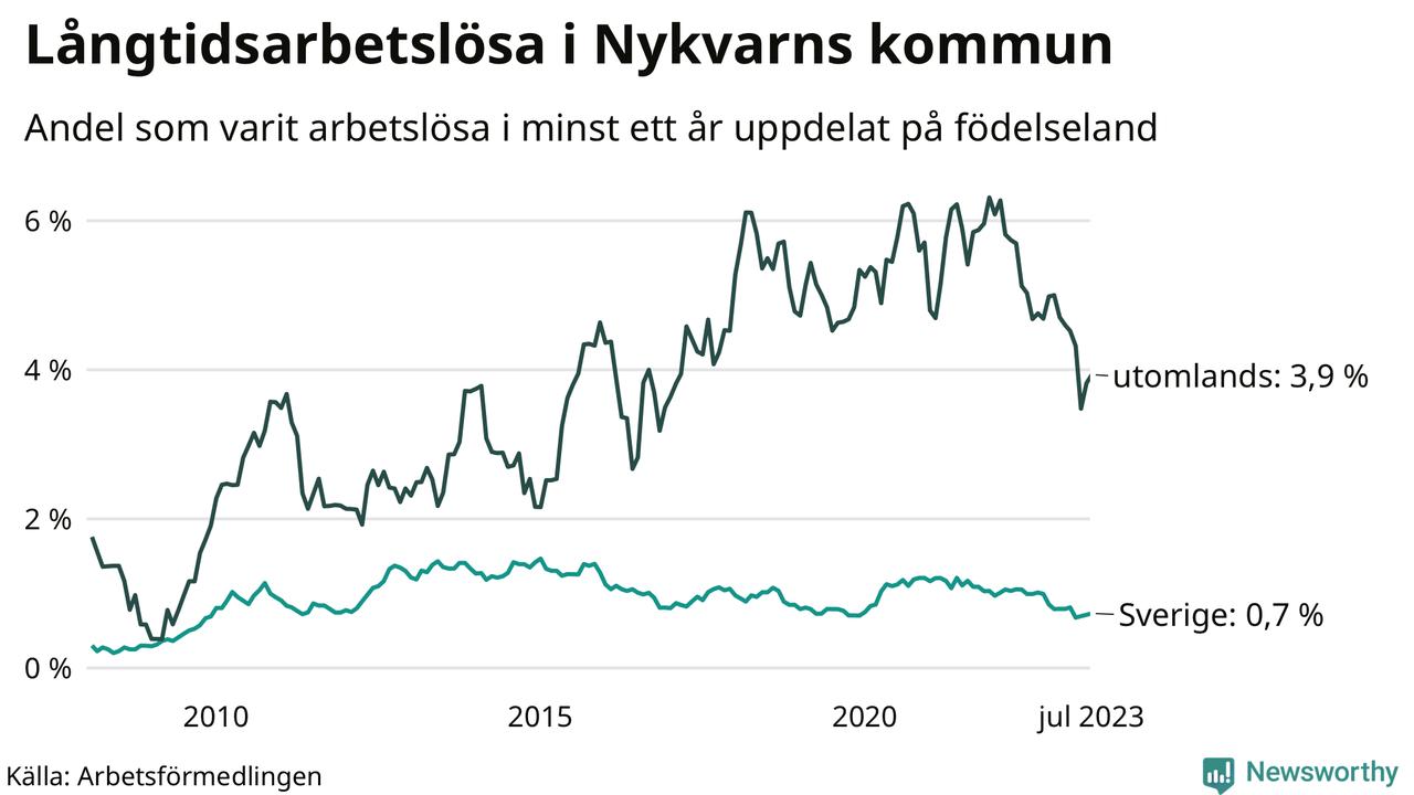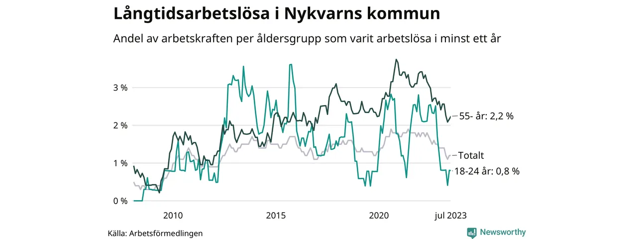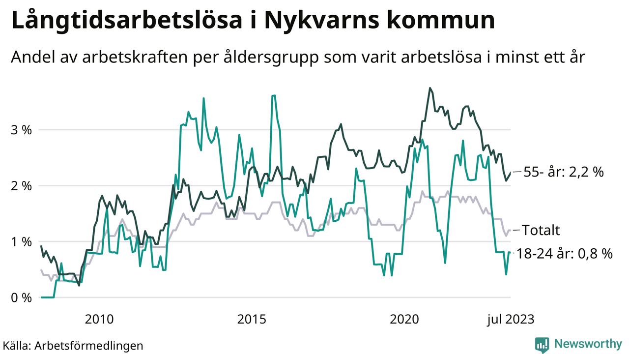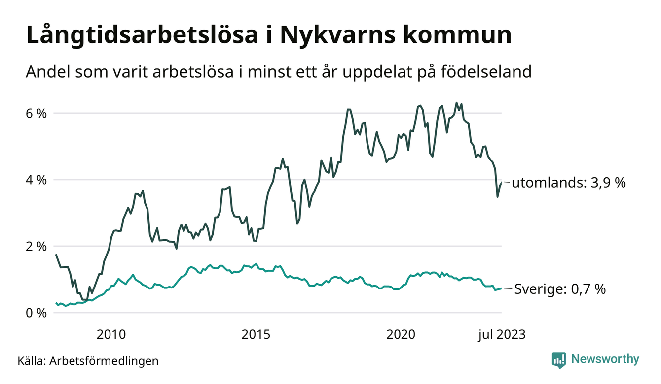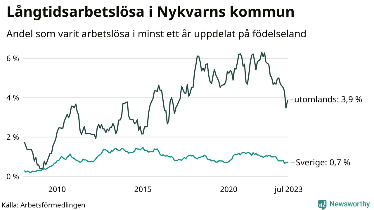 Långtidsarbetslöshet i Nykvarn i juli 2023