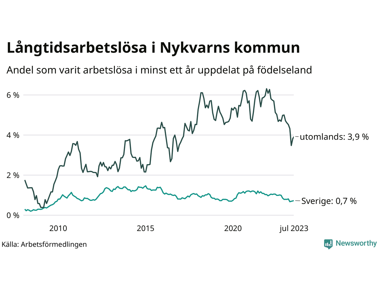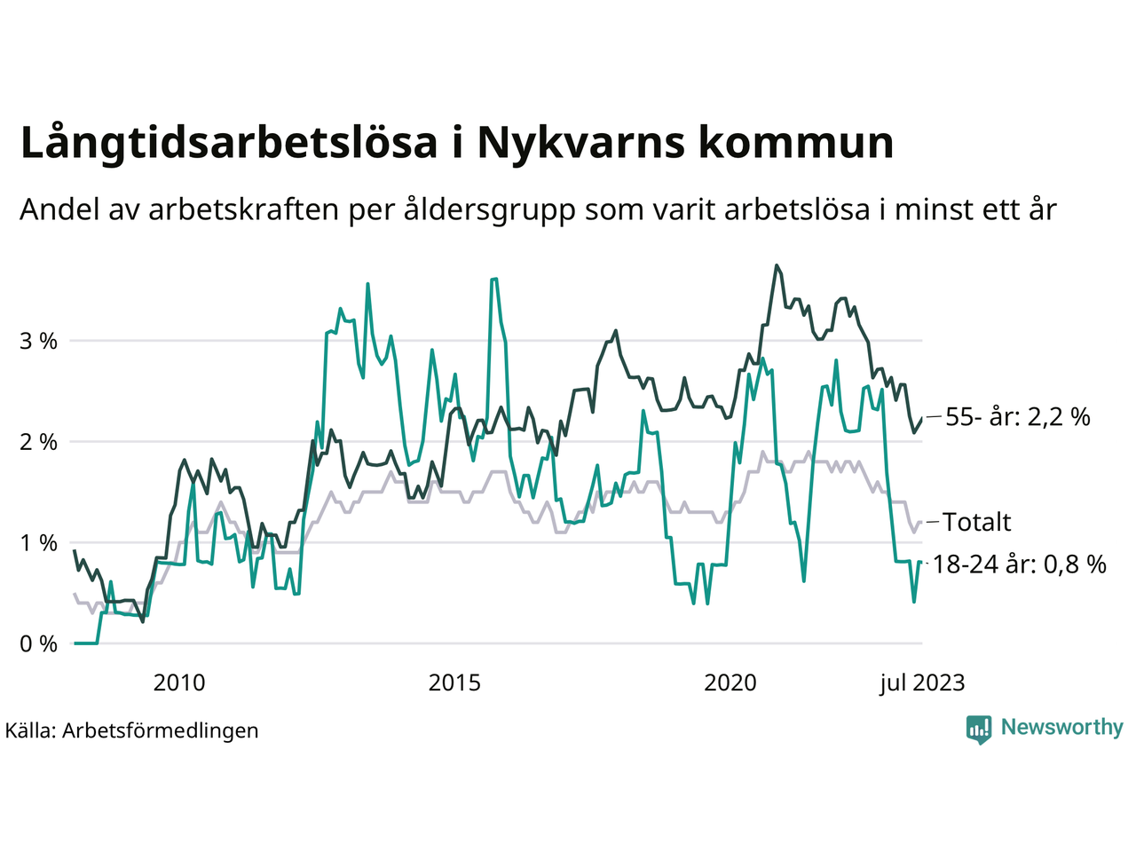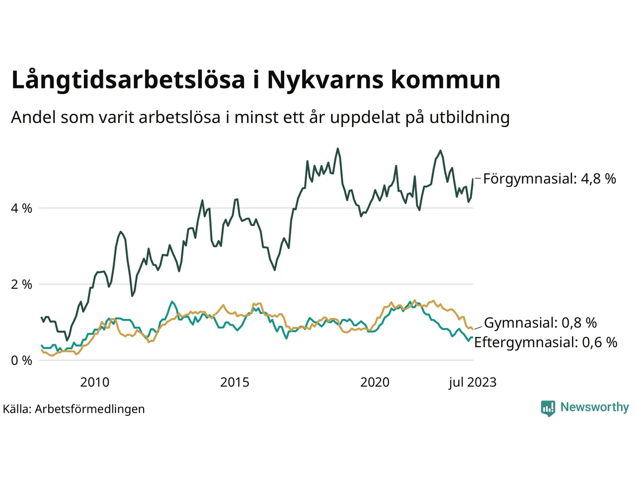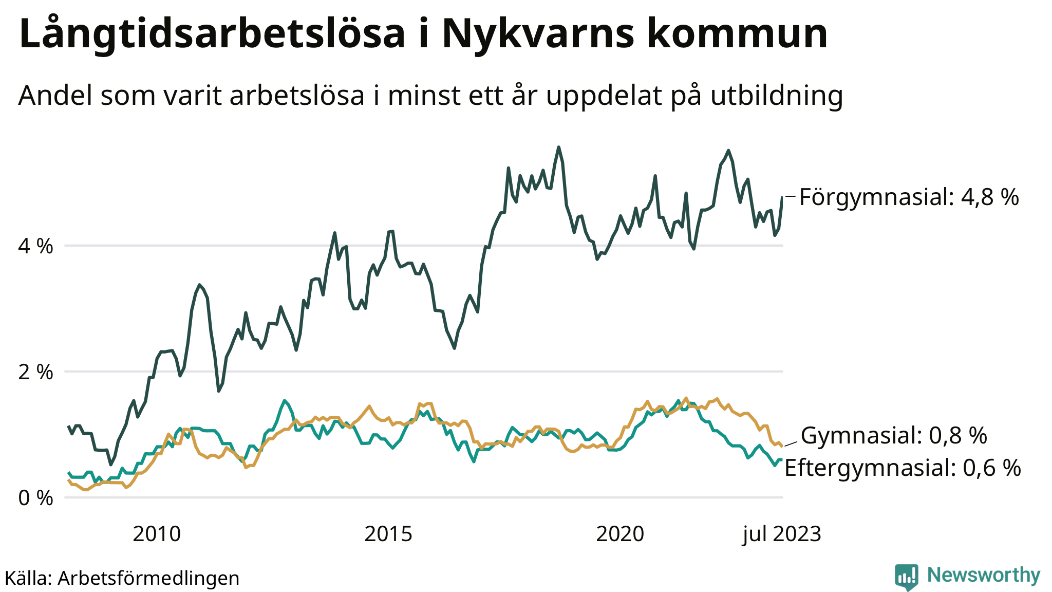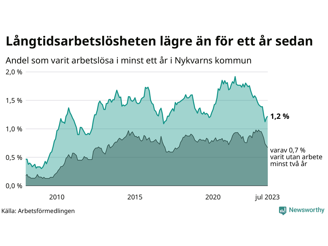 Långtidsarbetslöshet i Nykvarn i juli 2023