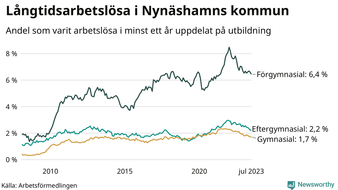 Långtidsarbetslöshet i Nynäshamn i juli 2023