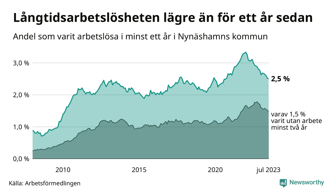 Nynäshamn: Lägsta långtidsarbetslösheten sedan september 2020