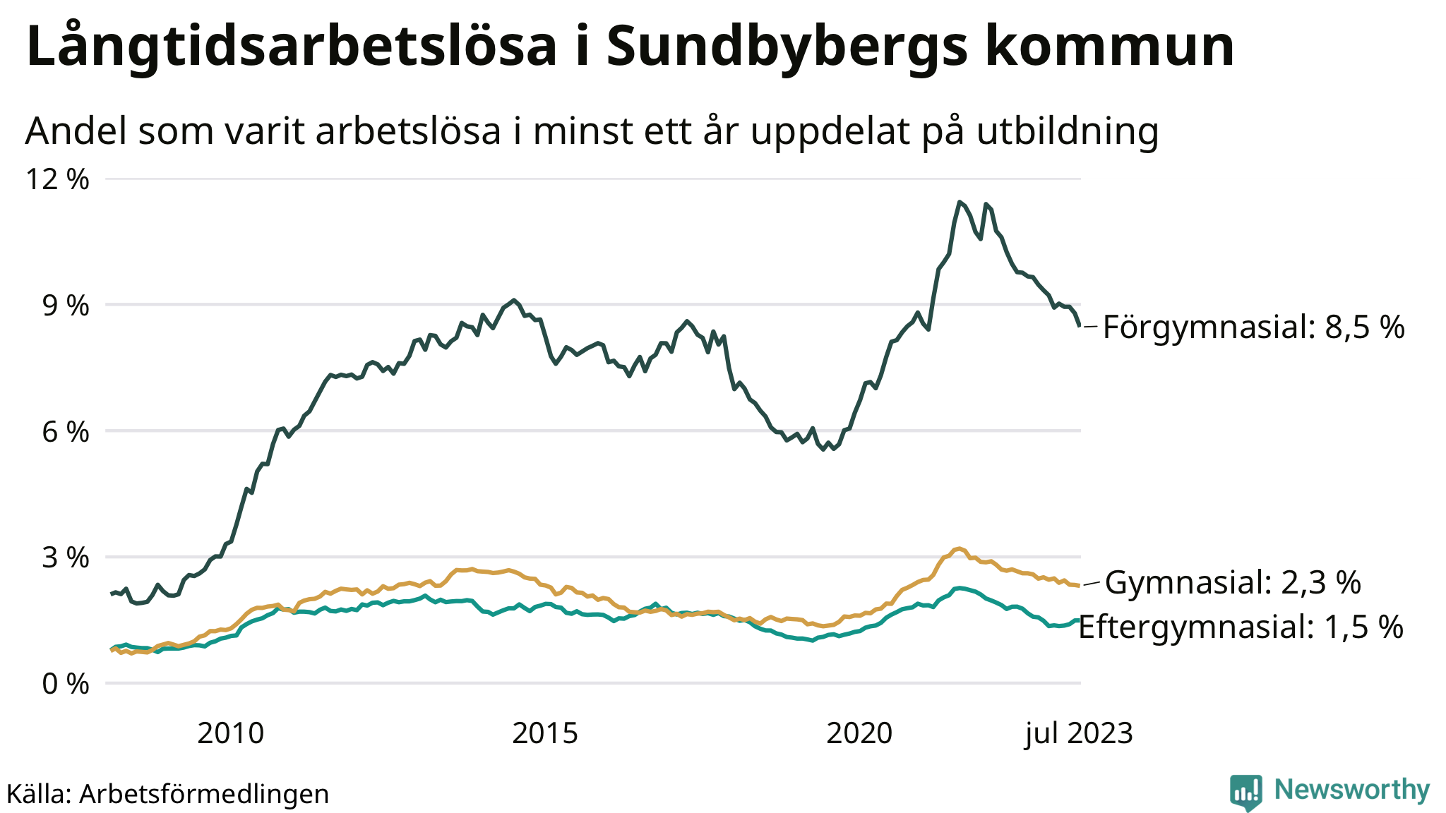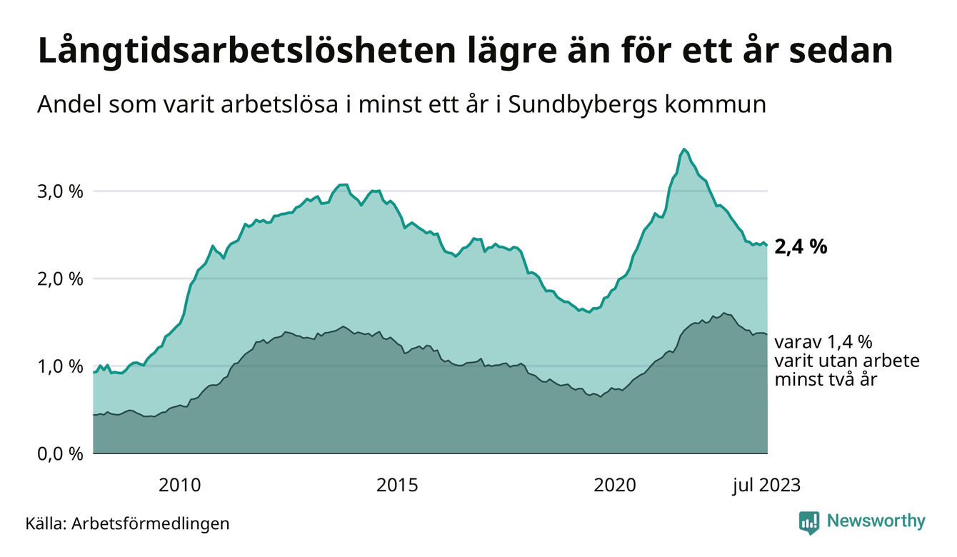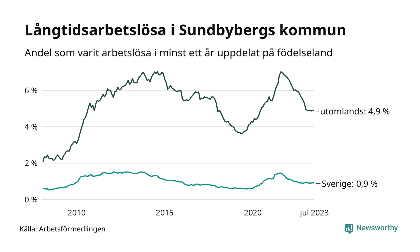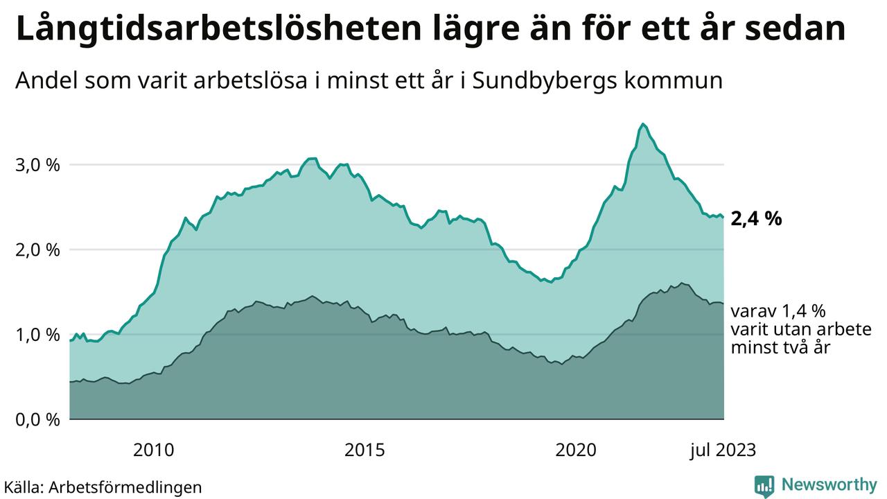 Långtidsarbetslöshet i Sundbyberg i juli 2023