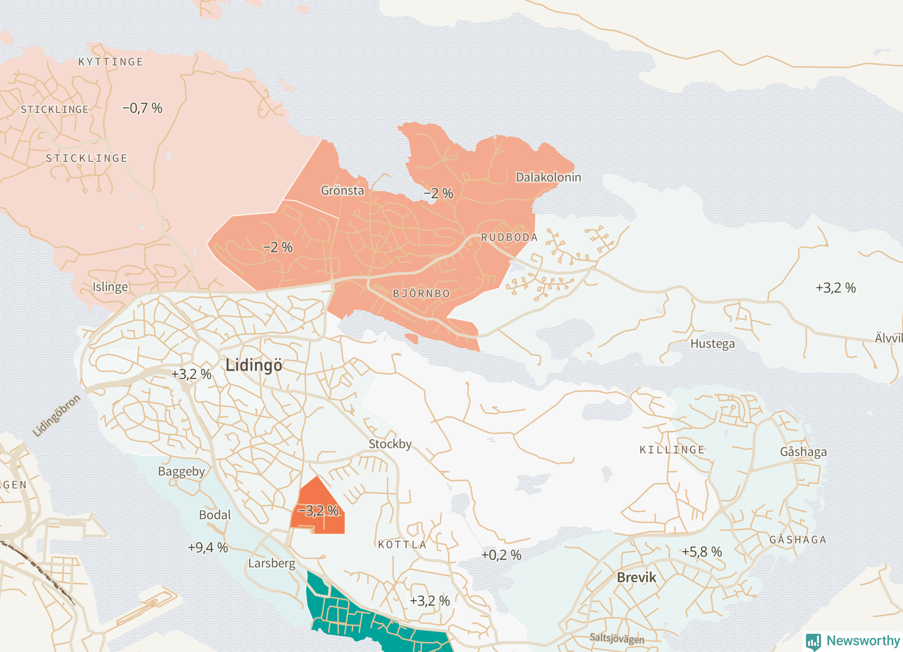 | Brevik-Käppala-Gåshaga | 7 301 | 7 723 | +422 | +6 % ▲ |