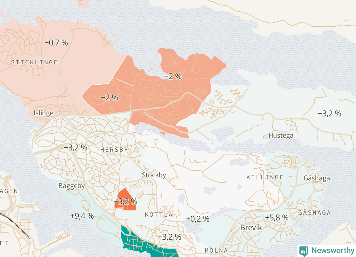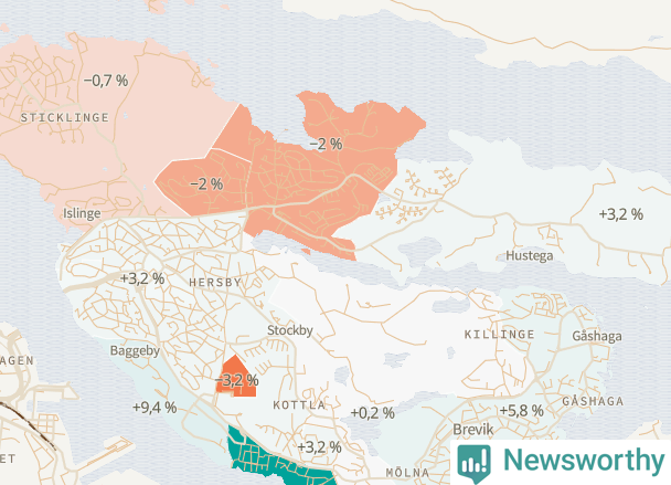 | Hersby-Herserud-Islinge södra | 5 780 | 5 964 | +184 | +3 % ▲ |