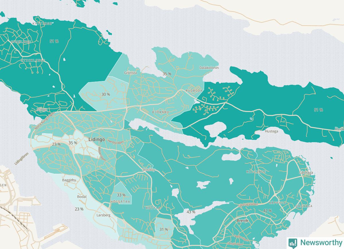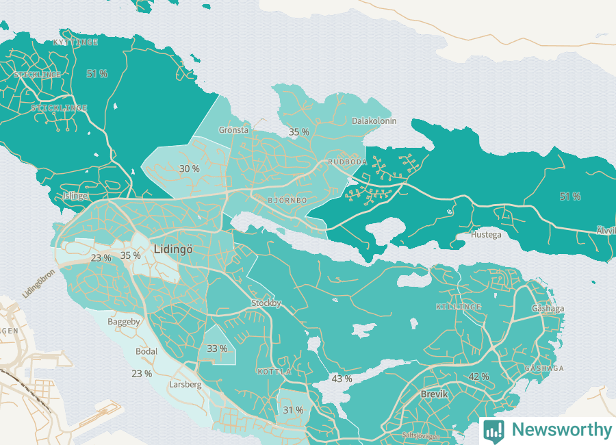 | Lidingö centrum-Torsvik | 207 | 23 % |