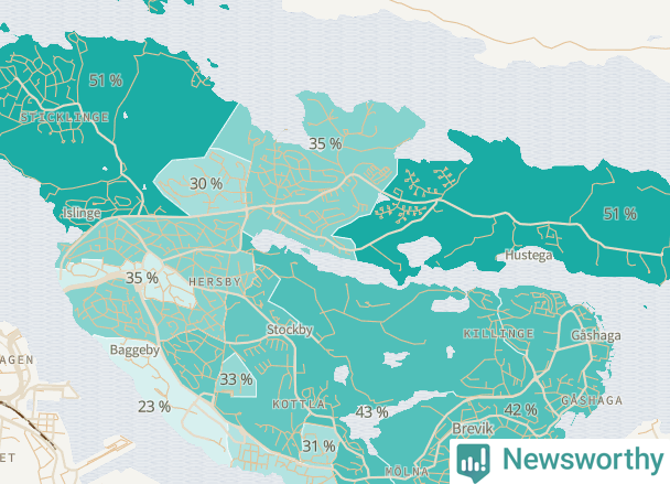 | Hersby-Herserud-Islinge södra | 857 | 35 % |