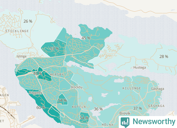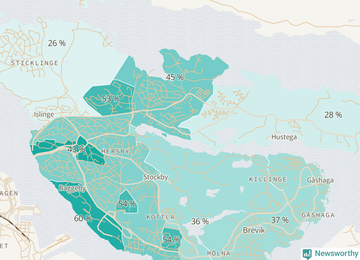 | Brevik-Käppala-Gåshaga | 1 260 | 42 % |