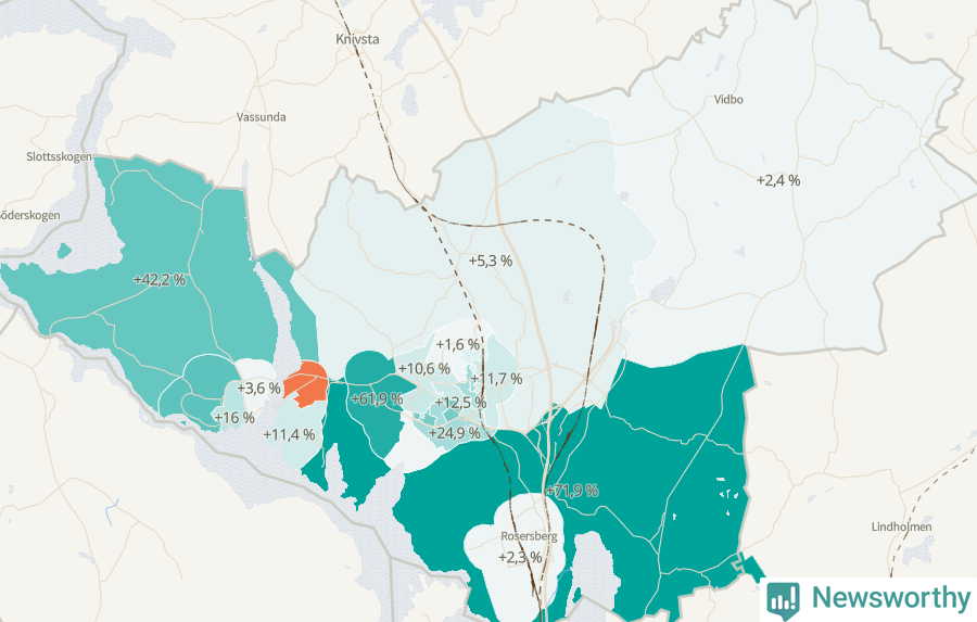 | Steningehöjden-Ölsta by | 2 255 | 3 650 | +1 395 | +62 % ▲ |