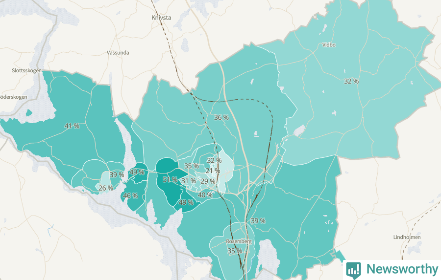 | Sigtuna norra | 1 351 | 1 921 | +570 | +42 % ▲ |